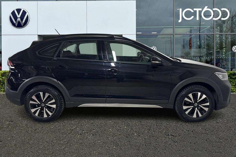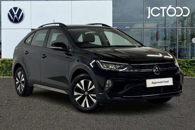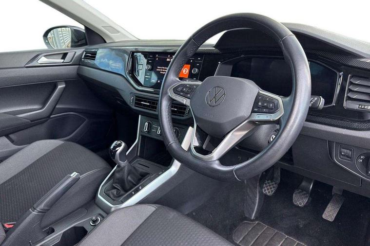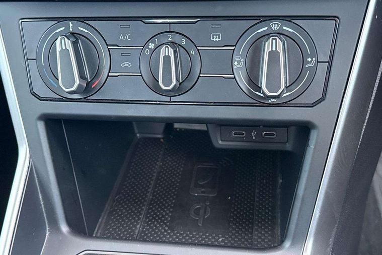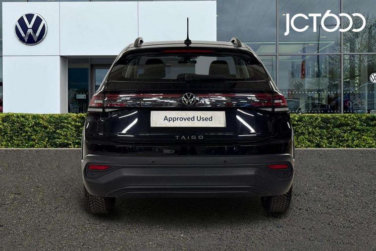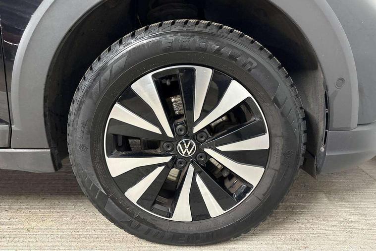 App-Connect including App-Connect Wireless, Driver alert system, e-Call (emergency call), Power Steering, Travel assist including emergency assist, Washer fluid level indicator, Wireless Charging including Bluetooth, Start-stop system with battery regeneration (recuperation - energy recovery during braking), Digital radio reception (DAB+), Diversity antenna for FM reception, WeConnect plus, Ambient lighting with logo projection, Aspherical driver's exterior mirror, Auto headlights, Body coloured bumpers, Body coloured exterior mirror housings and door handles, Electric windows, External USB type C socket and charging sockets, Front fog lamps with cornering function, Headlight range control, Heat insulating glass windscreen, LED headlamps, LED rear combination lamp, LED third brake light, Left convex exterior mirror, Power folding adjustable/heated exterior mirrors and front passenger exterior mirror lowering function, Rear fog light on one side, reversing light on both sides, Rear side wing doors, Rear wash/wipe with intermittent wipe setting, 'Slash/ Austin' Cloth upholstery, 12V socket in centre console, 2 front reading lights, 3 rear head restraints, 3 seat bench in 2nd row, Black carpets, Child seat anchor for child seat system i-Size, 2x top tether and child seat anchor in front on front passenger side, Door and side trim panels in titan black, Driver and front passenger seat height adjustment, Front centre armrest, Handbrake lever handle in leather, Height and reach adjustable steering wheel, Leather trimmed gear knob, Leather wrapped multifunction steering wheel, Luggage compartment floor, Luggage compartment light, Lumbar support for driver's and front passengers seat, Seat covers in titanium black, Single front passenger seat, Split folding backrest with centre armrest and unsplit rear seat bench, Storage compartment under front seats, Sun visors with illuminated vanity mirrors, Chrome Package - Taigo, Drivers assistance pack - Taigo, Light and Sight pack including High beam assist - Taigo, 2 x 3-point seatbelts/outer rear seats with ECE label, 3-point seat belts in front with pretensioner and height adjustment, 3-point seatbelt for centre rear seat, Driver and front passenger airbags with front passenger airbag de-activation, front side and curtain airbags, Driver and front passenger safety-optimised head restraints, Electronic stability control, Extended and predictive pedestrian/ cyclist protection, Front and rear disc brakes, Front curtain and side airbags with center airbag, Hill start assist, Manual rear child locks, Single tone horn, Tyre pressure loss indicator, Anti-theft alarm system with interior monitoring, backup horn, and towing protection, Anti-theft wheel bolts, Lava stone black gloss/matt decorative inserts in dash and front door panels, Low rolling resistance tyres,