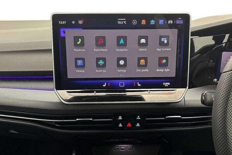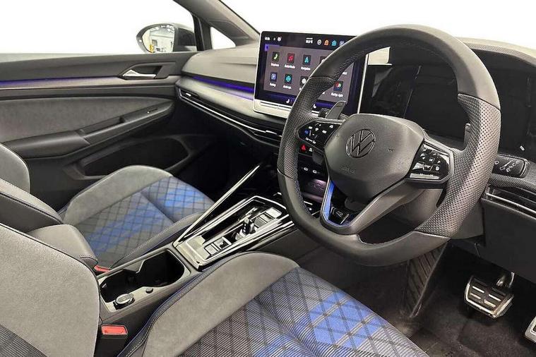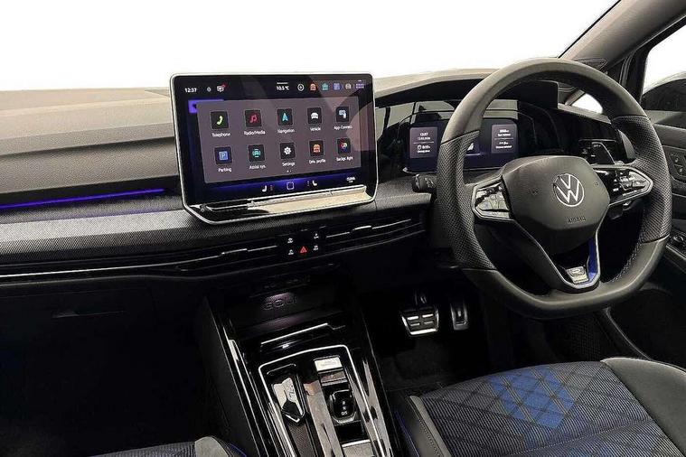 Activated carbon canister, Adaptive cruise control (ACC), Advanced driver attention and drowsiness monitor, Dynamic road sign display, E-Sim card for online connectivity, eCall emergency call system, Electronic maximum speed limit increased to 270 km/h, includes driving Modes 'drift' and 'special', larger roof spolier and GPS laptimer + G-Meter, Multi-color Digital cockpit pro, selection of different info profile possible, Multifunction front facing camera for distance control, Navigation system, Oncoming vehicle braking when turning including swerve support, Progressive steering, Side assist blind spot lane change system, rear traffic alert and exit warning system, Speed limiter, Speedo, rev counter, electronic odometer, trip, service interval display, exterior temperature and fuel gauge, Traffic jam assist, Voice enhancer and voice control, Warning signal and warning light for front and rear seatbelts not fastened, We connect plus preparation, We connect preparation, Wireless app connect, All wheel drive - 4Motion, Petrol Particulate Filter, Start-stop system with battery regeneration (recuperation - energy recovery during braking), XDS electronic differential lock for improved traction and handling, 2 USB C ports in front, 2 USB charging sockets on the centre console in the rear charging capacity upto 45W, Digital radio reception (DAB), Diversity antenna for FM reception, Gaming platform via car app, Infotainment system with 12.9" display, Mobile phone interface with inductive charging feature, 3rd brake light, Auto dimming rear view mirror, Automatic headlamp activation with Coming home and Leaving home feature, Black badge on B-pillar, Black mirror caps, Black strips on radiator grille and headlights, Body colour door handles, Darkened headlights, Darkened R Logos and VW logos in front, rear and on fender, Exterior mirrors convex on the left and aspherical on the right, Front and rear electric windows, Front fog lamps and cornering light, Heat insulating windshield made of laminated glass, Illuminated lighting animation with wake up/goodbye scenario, LED matrix headlights with ambient light V2, advanced high beam, dynamic range contol with cornering, LED rear lamp with indicator, poor weather, LED separate daytime running light, Light assist with High beam control, R name plate, Rain sensor, Rear fog light on one side and reversing lights on both sides, Rear side wing doors, Rear tinted glass 65% light absorbing from B pillar backwards, Rear windscreen washer and wiper with interval delay, Remote electrically foldable door mirrors, puddle lights and reverse activated passenger's door mirror, Welcome light with surround lighting, 12V socket in front centre console, 12V socket in luggage compartment, 3 rear head restraints, 3 seat bench in 2nd row, 30 colour ambient lighting, illuminated center console storage compartment in front, Air care climatronic 3 Zone automatic climate control with rear air conditioning control panel, Aluminium gearshift handle, Brushed stainless steel pedals, Chrome plated radiator grille inserts, air vent surrounds and light switch surrounds, Entry lights, Front + rear black carpet mats, Front centre armrest, Integrated front head restraints, ISOFIX anchors for child seats on outer rear bench seats and on front passanger seat compatible for i-Size, Luggage compartment lighting, Rear cupholder and loadthough, Single front passenger seat, Soul black instrument panel, Soul black roof lining, Split folding backrest with centre armrest and unsplit rear seat bench, Sun visors with illuminated vanity mirrors, Driver assistance pack - Golf Estate/Hatchback Auto, R styling pack - Golf, Technology park and comfort pro package - Golf Hatchback, 3 point height adj front seatbelts + pretensioners, 3 rear three point seatbelts, ABS, Autonomous emergency braking front assist with pedestrian and cyclist monitoring, Child locks on rear doors, Driver and front passenger airbag with front passenger airbag deactivation, Electronic parking brake with auto hold, ESC (Electronic Stability Control), Extended pedestrian protection measures, Front and rear black brake calipers with darkened R-logo, Hill start assist, Rear disc brakes, Two tone horn, Tyre pressure loss indicator, Volkswagen roadside assistance, Anti theft wheel bolts, Preparation for alcohol interlock, Sporty vehicle dynamics, Tool kit for tyre mobility set, Tyre mobility kit Includes 12V compressor and tyre sealant, Wheel hub cover with darkened R-logo,