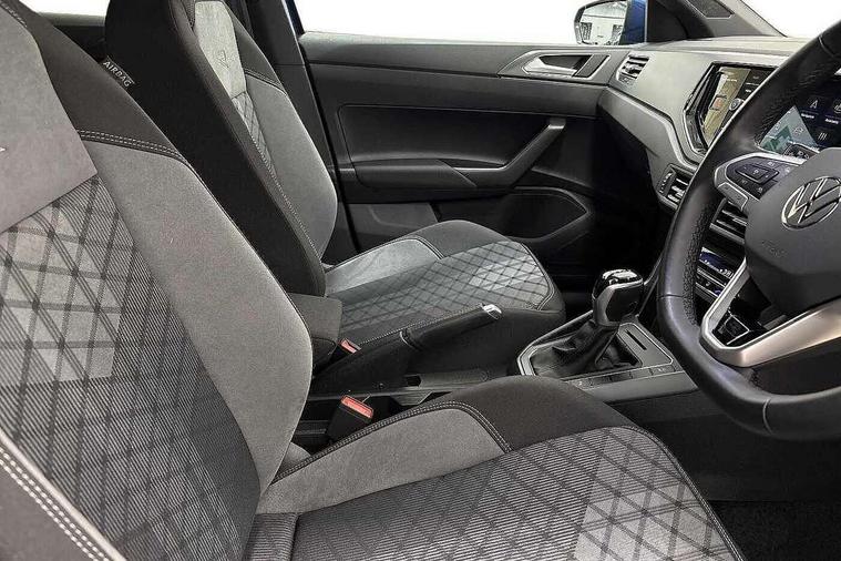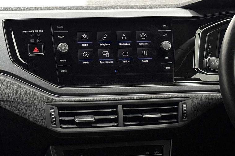 Adaptive cruise control with follow-to-stop and speed limiter, Advanced driver attention and drowsiness monitor, Bluetooth mobile phone interface, Digital Cockpit Pro with 10.25" Display, Dynamic road sign display, Emergency call service, Multifunction camera, Power assisted speed sensitive steering, Preparation for We connect and We connect plus, Speedo and rev counter, electronic odometer, trip, service interval display and fuel gauge, Standard rear axle, Travel Assist - Lane keeping system and traffic jam assist, Travel assist including emergency assist, Trip computer, Warning signal and warning light for front and rear seatbelts not fastened, Washer fluid level indicator, Wireless app connect, Front wheel drive, Rear shock absorpion, Start-stop system with battery regeneration (recuperation - energy recovery during braking), DAB Digital radio, Diversity antenna for FM reception, Front and rear 6 speakers, Body colour bumpers, Body colour door handles, Electric front windows, Front scuff plates with R-Line logo, Heat insulating glass windscreen, Power folding adjustable/heated exterior mirrors and front passenger exterior mirror lowering function, Rear electric windows, Rear fog light, Rear side wing doors, Rear windscreen washer and wiper with interval delay, Third brake light, 12V power socket in centre console, 2 USB-C ports in the front, 2 USB-C charging sockets on the center console in the rear, 3 rear head restraints, 60/40 split folding rear seat and rear seat bench not split, Air care climatronic air conditoning system with active combination filter and 2-zone temperature control, Black roof lining, Carpet mats, front and rear, Chrome plated radiator grille inserts, air vent surrounds and light switch surrounds, Door and side trim panel, Driver and front passenger seat height adjustment, Driver/passenger sunvisors with illuminated vanity mirrors, Front centre armrest, Front footwell illumination, Front seat backrest storage pockets, Front sports comfort seats, Handbrake lever handle in leather, Headliner in recycled material, Isofix child seat preparation easy-fit (for two outer rear seats, and front passenger seat) compatible with I-size, Karoso artvelours cloth upholstery, Leather trimmed gear knob, LED interior light with switch off delay and dimmer, 2 reading lights front and rear, Luggage compartment cover, Luggage compartment floor, Luggage compartment lighting, Lumbar adjustment for front seats, Single front passenger seat, Stainless steel pedals, Standard pedal cluster, Three spoke leather wrapped multifunction steering wheel with shifting paddles, Light and sight pack - Polo R-Line/Black Edition, 3 point height adj front seatbelts + pretensioners, 3x3 point rear seatbelts, ABS, Driver and front passenger airbag with front passenger airbag deactivation, Drivers and front passengers safety optimised head restraints, ESC (Electronic stability control) + EDL (Electronic Differntial lock) and ASR (Traction control), Extended and predictive pedestrian/ cyclist protection, Front curtain and side airbags with center airbag, Front/rear disc brakes, Hill hold control, Manual child lock in rear doors, Single tone horn, Tyre pressure loss indicator, Alarm with interior protection, Anti-theft alarm system with interior monitoring, backup horn, and towing protection, Anti-theft wheel bolts, Electronic engine immobiliser, Chrome applications on rotary light, mirror adjustment, window regulator switches, outlet with frame in black, Dark grey anodised matt decorative inserts in dash and front door panels, 16" Coventry alloy wheels, Low rolling resistance tyres,