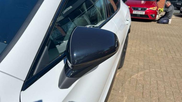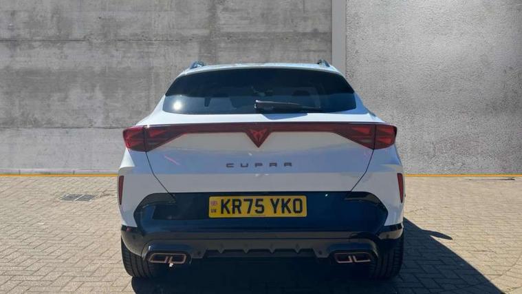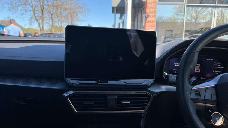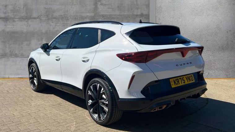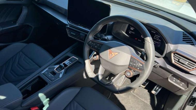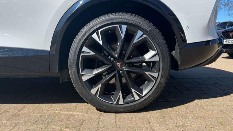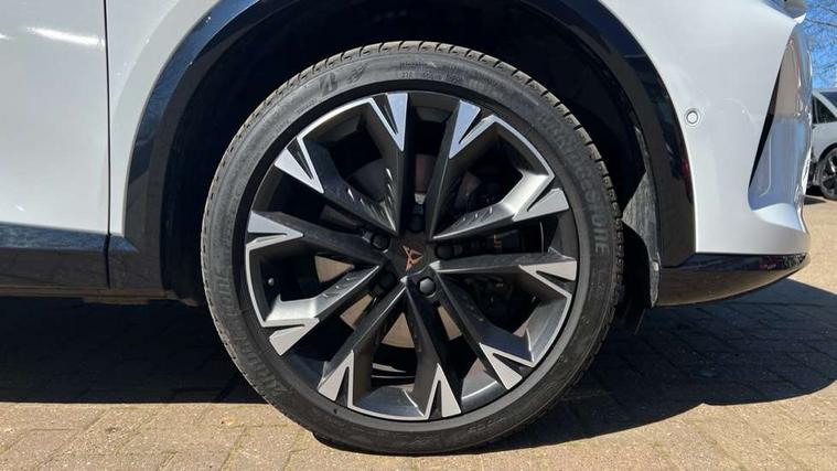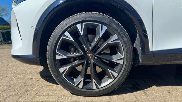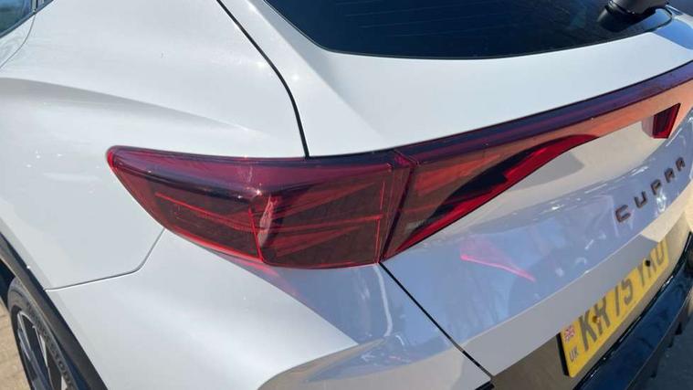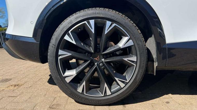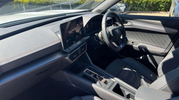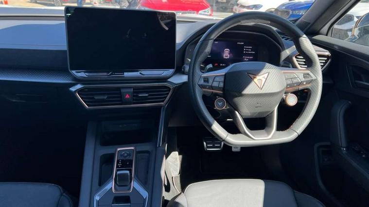 10.25" digital cockpit and configurable dashboard, Adaptive cruise control with follow-to-stop and speed limiter, Advanced driver alert system, Advanced lane assist with semi-automatic vehicle control in a medical emergency and traffic jam assist, Dynamic chassis control with driving profile selection (Comfort, Sport, CUPRA, Individual), Dynamic road sign display, Emergency steering support with turn assist, Forward collision warning with automatic braking, Front cross traffic assist, Full link phone integration, Intelligent park assist, RPM, trip computer, outside temp gauge, instrument light brightness, low fuel warning light, lights on reminder, gearshift indicator, Service interval indicator, Side and exit assist, Speed sensitive power steering, Start/stop system with regenerative braking, Top view camera, Virtual pedal and electric tailgate, Voice control system, Wired Android Auto, Wireless apple carplay, Wireless phone charger, 10 amp mode 2 charging cable, 32 amp mode 3 charging cable, Adaptive chassis control with continuous operation, CUPRA sport suspension, Electronic locking differential and dynamic traction support, 2 front and 2 rear USB type C sockets, Media system with navigation, 12.9" touchscreen display, voice control, DAB, steering wheel mounted controls, Auto dimming rear view mirror, Body colour door handles, Body coloured bumpers, Dark grey wing mirror, Daytime running light with automatic headlight control and coming home feature, Door panel ambient lighting, Dynamic headlight range control, Electric front/rear windows, Electrically adjustable heated and folding door mirrors with memory function, Gloss black roof rails and window surrounds, High beam assist, LED 3rd brake light, LED front fog lamps with cornering function, LED Taillights with dynamic indicator, Matrix Ultra HD headlights, Rain sensing wipers, Rear diffuser with copper simulated exhaust pipes, Rear fog lights, Rear side wing doors, Rear wash/wipe, Tinted rear windows, Welcome lights (within exterior mirror housing), 12V socket, 2 front and 2 rear reading lights, 3 seat bench in 2nd row, 60/40 split rear bench seat with armrest and mechanical seat release, Black headlining, Black interior roof lining, Cupra sports pedals, Dust/pollen filter, Electrically adjustable front seats with lumbar support and memory function, Front and rear head restraints, Front centre armrest, Heated front seats, Heated supersports multifunction leather steering wheel with satellite buttons and gear shift paddles, Height/reach adjust steering wheel, Illuminated aluminium doorsteps, Illuminated interior front door sills, Illuminated sunvisor with mirror, Isofix, Leather dashboard, door insert and side trim panel, LED smart wraparound lighting, PVC/Leather upholstery, Satellite steering wheel, Single front passenger seat, Storage pockets on rear of front seats, Three zone climate control with control panel in rear, 3 point seatbelts on all rear seats, ABS, Brake control system - ESC and brake booster, Child proof door locks, Driver and front passenger airbags with front passenger airbag de-activation, Electronic parking brake, Front and rear disc brakes, Front side curtain airbags, Hill hold control, Pre-crash front and rear seat belt tensioner, window closure and hazard lights, Public e-call, Seat belt reminder for front and rear seats, Tyre pressure monitoring system, Anti theft alarm system, KESSY Advanced - Keyless start, keyless entry with SAFELOCK, Locking wheel bolts, Warranty - 5 years/90, 000 miles, Copper and aluminium interior detailing, Breakdown and tool kit,