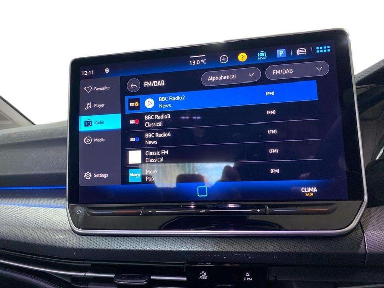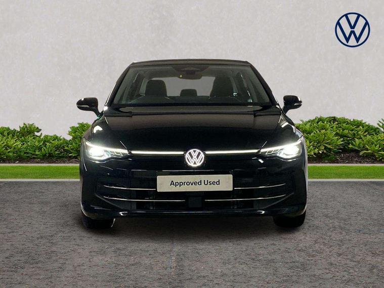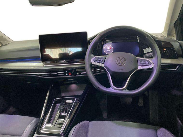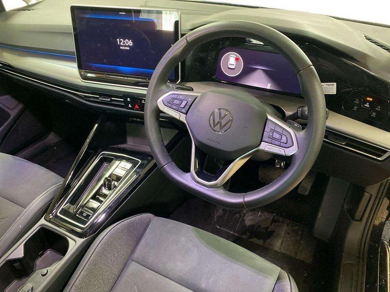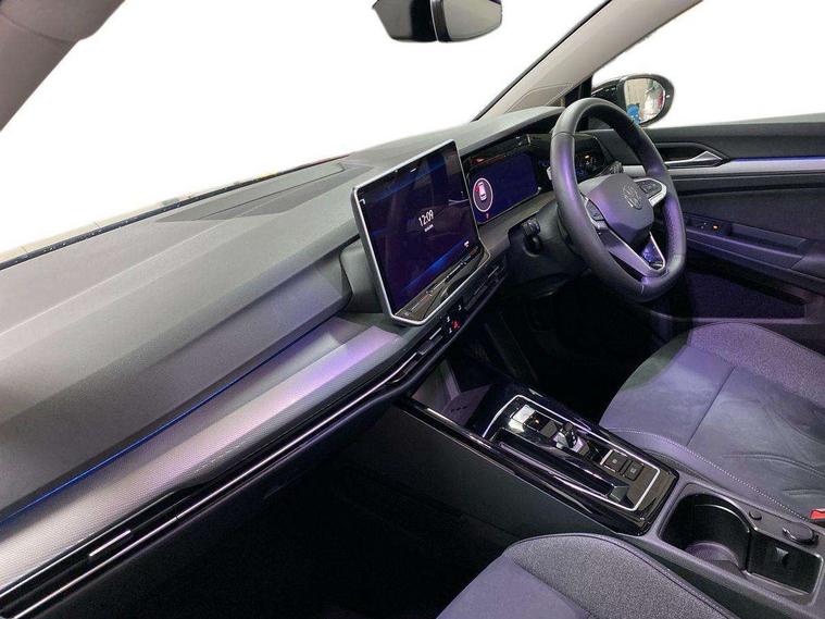Activated carbon canister, Adaptive cruise control (ACC), Advanced driver attention and drowsiness monitor, Dynamic road sign display, E-Sim card for online connectivity, eCall emergency call system, Multi-color Digital cockpit pro, selection of different info profile possible, Multifunction front facing camera for distance control, Navigation system, Oncoming vehicle braking when turning including swerve support, Side assist blind spot lane change system, rear traffic alert and exit warning system, Speed limiter, Speedo, rev counter, electronic odometer, trip, service interval display, exterior temperature and fuel gauge, Traffic jam assist, Voice enhancer and voice control, Warning signal and warning light for front and rear seatbelts not fastened, We connect plus preparation, We connect preparation, Wireless app connect, Hybrid propulsion system, Petrol Particulate Filter, Start-stop system with battery regeneration (recuperation - energy recovery during braking), XDS electronic differential lock for improved traction and handling, 2 USB C ports in front, 2 USB charging sockets on the centre console in the rear charging capacity upto 45W, Digital radio reception (DAB), Diversity antenna for FM reception, Gaming platform via car app, Infotainment system with 12.9" display, Mobile phone interface with inductive charging feature, 3rd brake light, Automatic headlamp activation with Coming home and Leaving home feature, Body colour bumpers, Body colour door handles, Body colour door mirrors, Chrome trimmed front air intake surrounds, Chrome trims on the side window bottom, Exterior mirrors convex on the left and aspherical on the right, Front and rear electric windows, Heat insulating windshield made of laminated glass, LED separate daytime running light, Rear exhaust tailpipe, Rear fog light on one side and reversing lights on both sides, Rear side wing doors, Rear windscreen washer and wiper with interval delay, Remote electrically foldable door mirrors, puddle lights and reverse activated passenger's door mirror, Welcome light with surround lighting, 12V socket in front centre console, 12V socket in luggage compartment, 3 rear head restraints, 3 seat bench in 2nd row, Air care climatronic 3 Zone automatic climate control with rear air conditioning control panel, Ambient lighting with 30 colour including LED light unit in front footwell with selectable light colour, Art velours cloth upholstery, Chrome plated radiator grille inserts, air vent surrounds and light switch surrounds, Door insert, side trim panel and arm support in leatherette, Front + rear black carpet mats, Front centre armrest, Front head restraints, Front seat lumbar support adjuster, ISOFIX anchors for child seats on outer rear bench seats and on front passanger seat compatible for i-Size, Luggage compartment lighting, Manual height adjustable front passenger seat, Manually height adjustable driver seat, Plastic gear knob, Rear cupholder and loadthough, Single front passenger seat, Soul black instrument panel, Split folding backrest with centre armrest and unsplit rear seat bench, Sports comfort seats in front, Standard pedal cluster, Storm grey roof lining, Sun visors with illuminated vanity mirrors, Driver assistance pack - Golf Estate/Hatchback Auto, 3 point height adj front seatbelts + pretensioners, 3 rear three point seatbelts, ABS, Autonomous emergency braking front assist with pedestrian and cyclist monitoring, Child locks on rear doors, Driver and front passenger airbag with front passenger airbag deactivation, Electronic parking brake with auto hold, ESC (Electronic Stability Control), Extended pedestrian protection measures, Hill start assist, Rear disc brakes, Two tone horn, Tyre pressure loss indicator, Volkswagen roadside assistance, Anti theft wheel bolts, Preparation for alcohol interlock, New brushed dark metal decorative inserts for dashboard and front door panels,