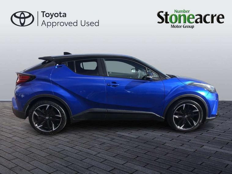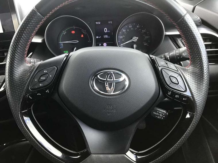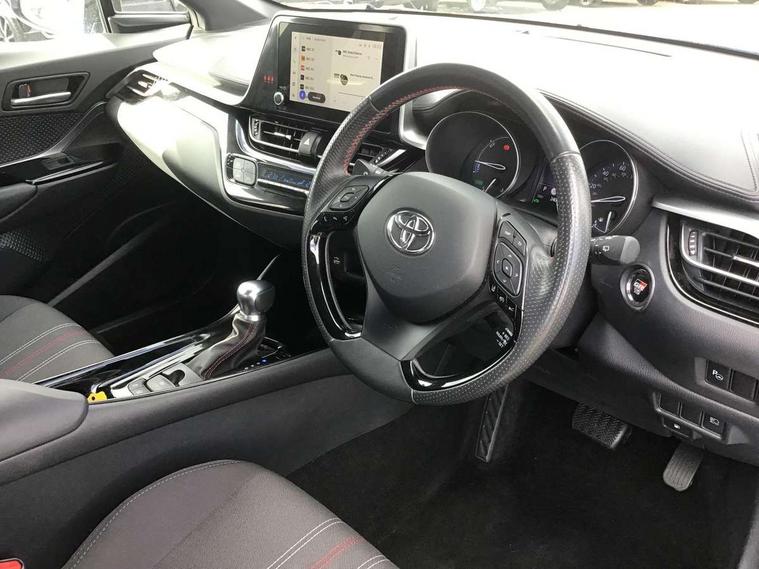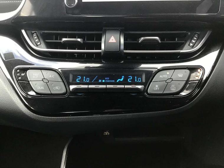 4.2" coloured TFT screen for multi-information display, Adaptive cruise control, Bluetooth connectivity, E-call, Electric power steering, Hybrid system indicator, Lane departure alert with steering control, Lane trace assist, Push button tailgate release, Remote boot door release in cabin, Remote boot door release in key, Reversing camera, Road sign assist - RSA, Simple Intelligent parking assist, Smart voice assist, Touch 2 Go navigation system, Trip computer, Voice recognition, Wireless smartphone integration, Vehicle Stability Control (VSC), 6 speakers, AM/FM radio, DAB Radio (Digital Audio Broadcasting), Toyota touch 2 multimedia system with 8" display, USB connector, Wi-fi connectivity, Adaptive front light system, Adaptive LED Headlights, Anti-jam protection on power windows, Auto high beam, Auto up and down function on all power windows, Automatic headlight levelling, Automatic headlights, Automatic headlights cut-off, Black and body coloured rear bumper, Black upper front grille, Body colour door handles, Body colour door mirrors, Body coloured front bumper, Boot door release with push button, Chrome front lower bumper, Electric heated door mirrors, Follow me home headlights, Front and rear power windows, Front spoiler lip in black, Headlight cut off reminder, Honeycomb lower front grille, LED daytime running lights, LED fog lights, LED front light guide, LED High mounted stop light, LED rear brake lights, LED rear combination lights, Noise reduction layer on front windows and windscreen, Power adjustable door mirrors, Privacy glass, Rain sensor, Rear sequential indicators, Rear side wing doors, Rear spoiler, Rear tailgate, Rear window defogger, Rear window wiper, Shark fin antenna, UV-filter on driver and passenger windows, UV-filter on rear windows, 12v power outlet - front, 3 rear headrests, 3 seat bench in 2nd row, 3 spoke perforated leather steering wheel, 60/40 split folding rear seat, Adjustable rear headrests, Adjustable speed limiter switch on steering wheel, Assist grips front and centre pillar, Audio and telephone switches on steering wheel, Black front door assist grips, Blue ambient lighting on front cup holders, Blue ambient lighting on front doors, Boot light, Chrome interior door handles, Cloth upholstery, Driver and front passenger personal light, Driver and front passenger Whiplash Injury Lessening seats, Driver and passenger seatback pockets, Dual zone automatic air conditioning, Floor mats, Front cupholders, Front head restraints, Front sports seats, Glovebox with internal light, Hard tonneau cover, Heated driver and front passenger seats, Hooks for luggage holding net, Humidifying Nanoe air purifier, Illuminated entry system, Isofix attachments on rear seats, Leather gearshift, Light on driver sun visor, Light on passenger sun visor, Manual telescopic steering wheel, Manual tilt steering wheel, Manually height adjustable driver seat, Manually height adjustable front passenger seat, Manually reclining driver seat, Manually reclining front passenger seat, Manually sliding driver seat, Manually sliding front passenger seat, Microphone on front personal light, Mirror on driver sun visor, Mirror on passenger sun visor, Multimedia switches on steering wheel, Pollen filter, Power adjustable lumbar support on driver seat, Shopping bag hooks, Single front passenger seat, Slow opening on lower glovebox, Voice recognition switch on steering wheel, Tech with parking sensor pack - C-HR, 16 Disk front wheel brake, 3x3 point rear seatbelts, ABS+EBD+Brake assist, Electronic parking brake, Front and rear seatbelt reminder, Front passenger airbag on/off switch, Hill start assist control (HAC), Pre collision system with pedestrian detection, Pre-tensioners and force limiters, Rear door child safety locks, SRS Airbags - Driver + Front passenger, front side, front and rear curtain and driver's knee airbags, Toyota safety sense, Tyre pressure monitoring system, Tyre pressure warning system, Acoustic vehicle alert system (AVAS), Glass-breaking alarm sensors, Immobiliser, Intrusion alarm, Intrusion sensor, Motion sensor alarm, Power passenger window lock, Remote central locking, Black lower dashboard, Black upper dashboard, Piano black console, Silver deco line on upper dashboard, 19" Black machined alloy wheels, Tyre repair kit,
