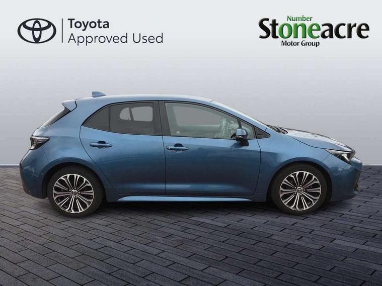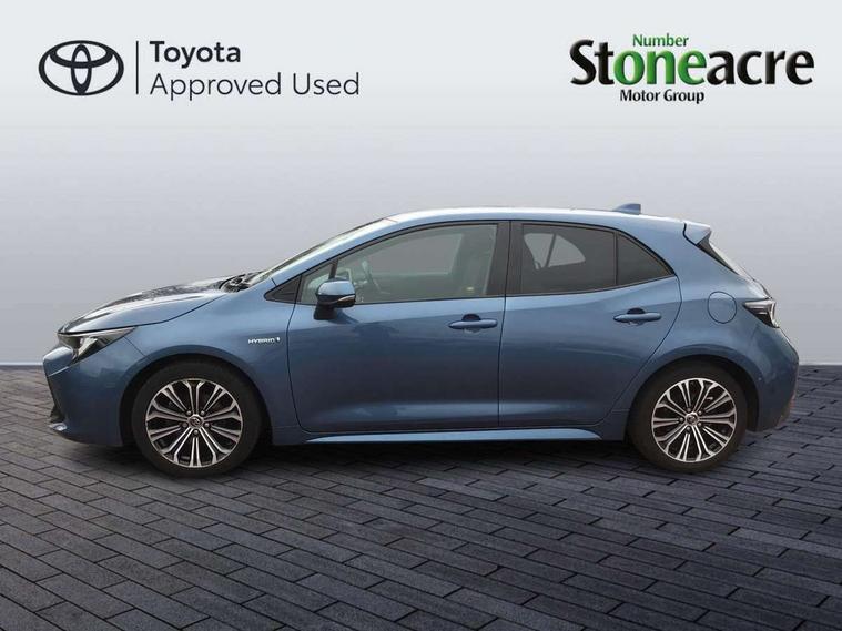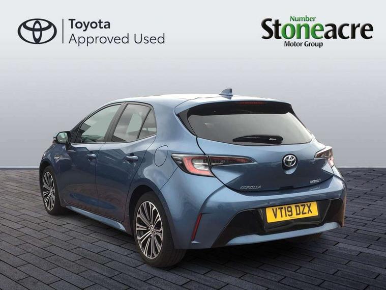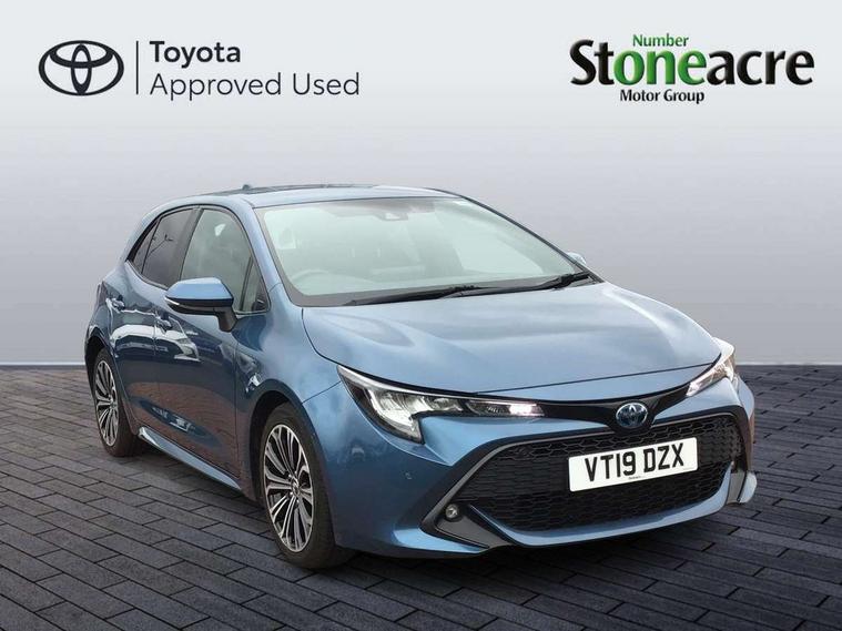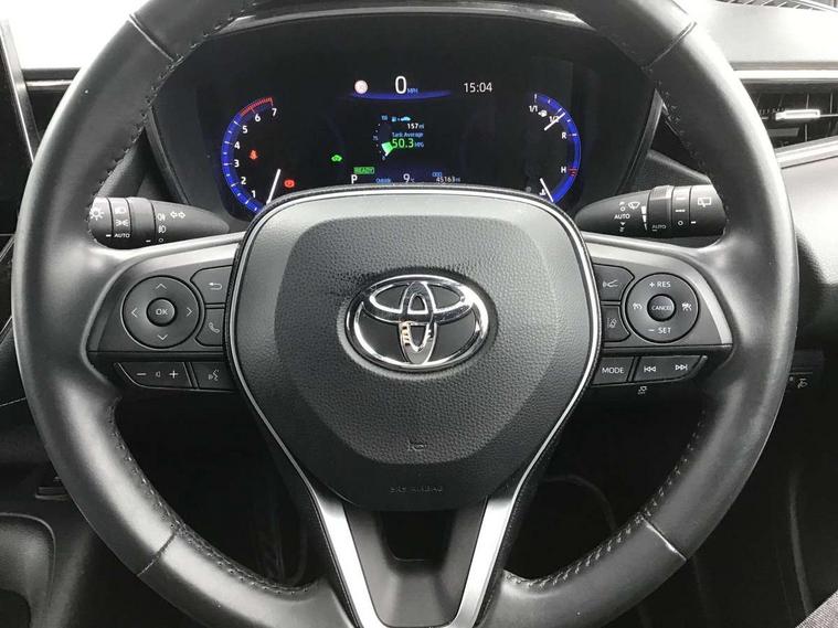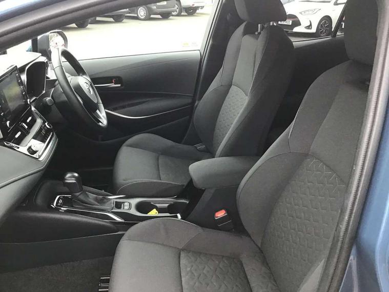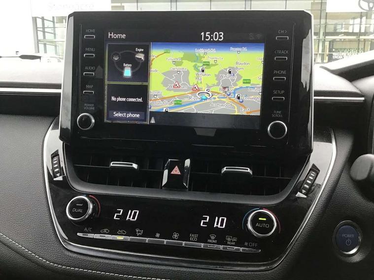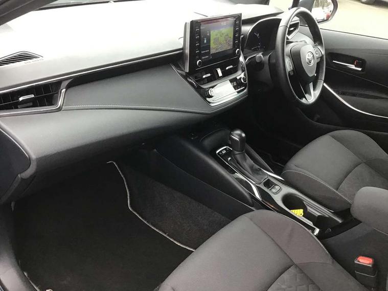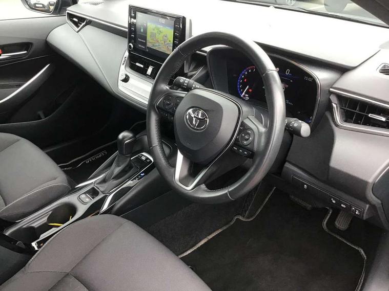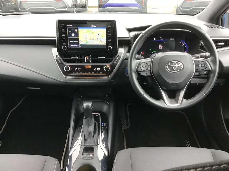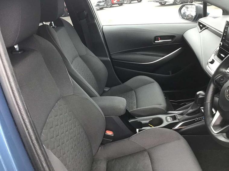 Adaptive cruise control, Bluetooth telephone connectivity, E-call, Electrically assisted power steering, Front parking sensor, Intelligent park assist, Push button start, Rear parking sensor, Reversing camera, Voice activation, Vehicle Stability Control (VSC), 2 ring combimeters with 7" colour TFT screen, 6 speakers, 8" multimedia and back monitor, AM/FM radio, DAB Digital radio, Toyota touch 2 with go navigation system, USB/AUX connectivity, Anti-jam protection on power windows, Auto dimming inside rear view mirror, Auto high beam, Auto up and down function on all power windows, Automatic folding mirrors, Automatic headlights, Automatic rear view mirror, Automatic wipers, Body coloured bumpers, LED daytime running lights, LED fog lights, LED Headlights, LED rear combi lights with LED lightguide, Power front windows, Power rear windows, Privacy glass, Rain sensor, Rear window wiper, Shark fin antenna, 3 rear headrests, Clean air filter, Dual zone automatic air conditioning, Fabric upholstery, Front head restraints, Heated seats, ISOFIX seat fixing (2 fixings on rear outer seats), Leather steering wheel and gear knob, Pollen filter, Power lumbar support, Tilt/telescopic steering column, Whiplash Injury Lessening (WIL) feature (active headrest) for seats, Parking pack - Corolla, Toyota safety sense 2 - Corolla, 3x3 point rear seatbelts, Anti lock braking system + Electronic brake force distribution, Brake assist function, Electronic parking brake, Front passenger airbag on/off switch, Front seatbelt reminder, HAC-Hill-start Assist Control, Rear seat belt reminder, Seatbelt pretensioners and force limiters, Supplemental restraint system (SRS) airbags - 7 airbags including driver, front passenger, curtain, side and knee airbags, Traction control, Tyre pressure warning system, Alarm/immobiliser,