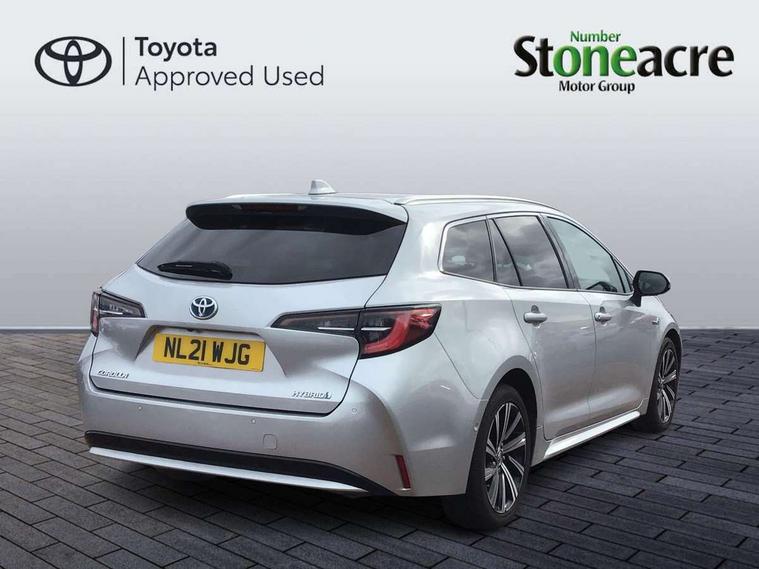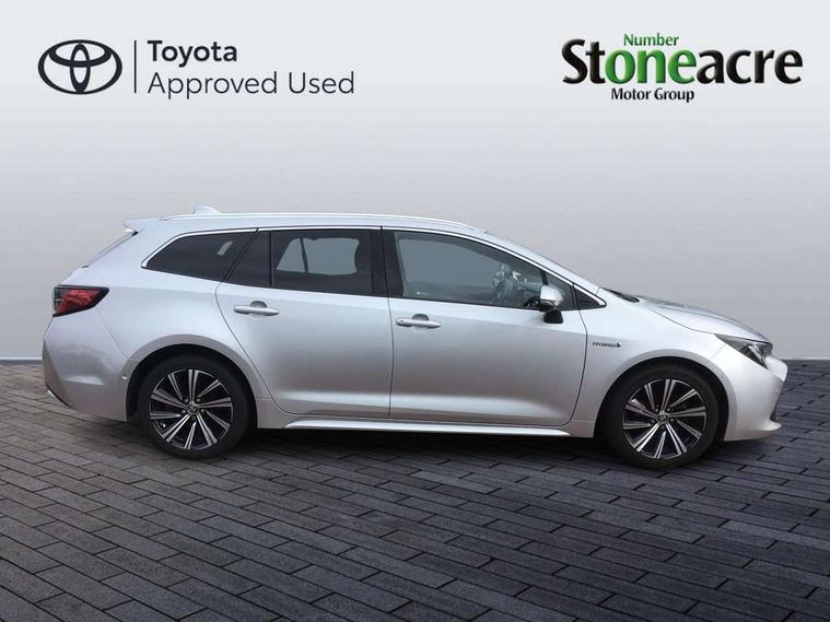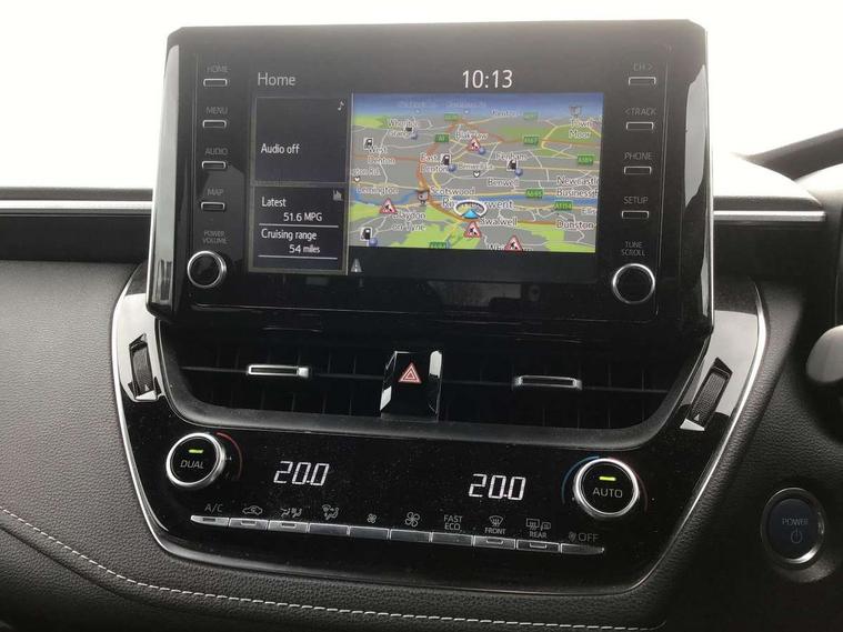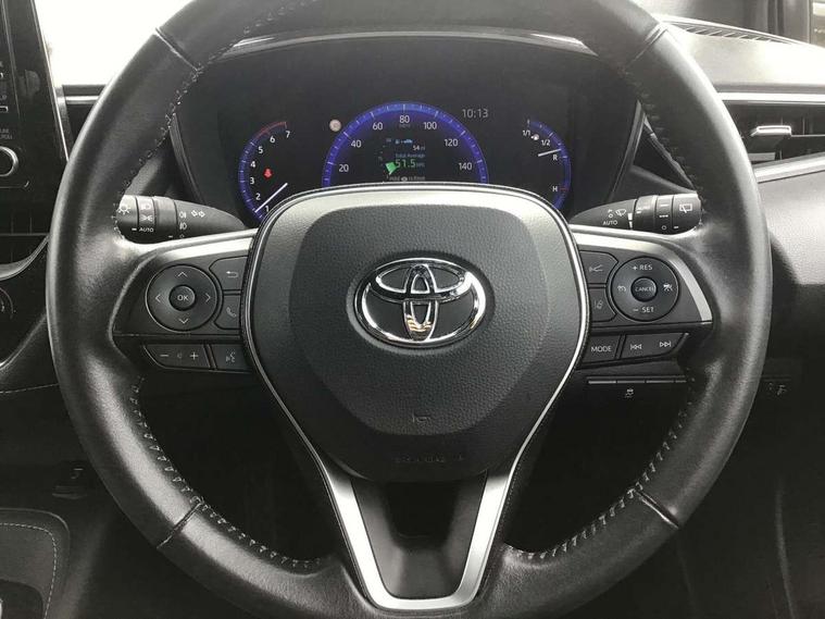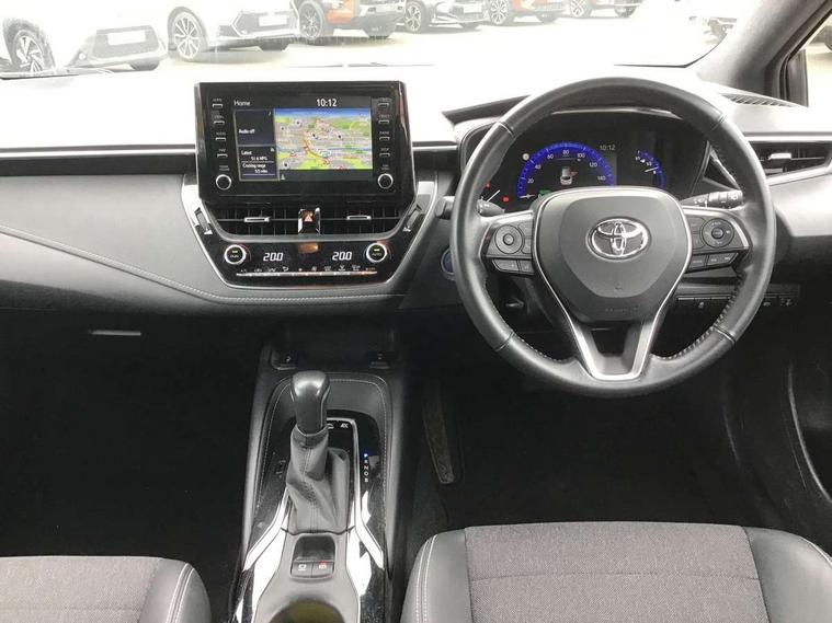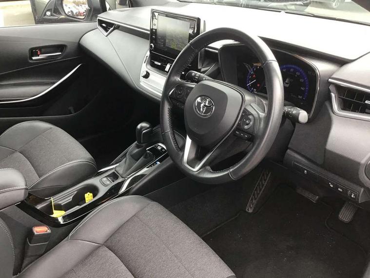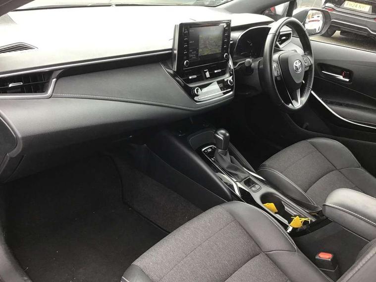 Satin chrome dash trim, Soft touch texture on uppder dashboard, Stitching on lower dashboard, Parking pack - Corolla, Toyota safety sense 2 pack - Corolla, Tyre repair kit, Unique wheel finish with red wheel cap, Acoustic vehicle alert system (AVAS), Alarm with motion sensor and immobilizer, Remote central locking + deadlocks, 6 speakers, 8" Touchscreen with MM19 Multimedia system and voice recognition, AM/FM radio, DAB Digital radio, Toyota touch 2 with go navigation system, USB and Aux in connectors + 12V front outlet, USB charging port in centre storage box, 3x3 point rear seatbelts, Adjustable driver and front passenger seat belt extender to top anchor point, Anti lock braking system + Electronic brake force distribution, Brake assist function, Downhill Assist Control (DAC), Electronic parking brake, Emergency brake light signal (EBS), Front passenger airbag on/off switch, Front seatbelt reminder, HAC-Hill-start Assist Control, Rear seat belt reminder, Supplemental restraint system (SRS) 7 airbags - dual driver, dual side curtain, side impact and driver knee airbags, Traction control, Tyre pressure warning system, Aluminium roof rails, Anti-jam protection on power windows, Auto dimming inside rear view mirror, Auto up and down function on all power windows, Automatic folding mirrors, Automatic headlights with high beam assist, Black metallic surround on lower front grille, Black toyota logo in front, Body colour rear spoiler, Body coloured bumpers, Body coloured door mirrors, Body coloured outside door handles, Follow me home headlights, LED daytime running lights, LED front fog lights, LED High mounted stop light, LED multi-reflector headlights with manual headlight levelling, LED rear combi lights with LED lightguide, Noise reduction layer on front windows, Power adjustable heated door mirrors, Power front windows, Power rear windows, Rain sensing wipers, Rear privacy glass, Rear window defogger, Rear window wiper, Reverse tilting door mirrors, Shark fin antenna, Time adjustment on intermittent wiper, Turning signal integrated indicators in door mirrors, Unique lower skirt, Unique side rocker with black insert, UV-filter on driver and passenger windows, 12v power outlet - luggage side, 3 rear headrests, 3 spoke leather steering wheel + gear knob, 60/40 split folding rear seat, Audio, multimedia and telephone switches on steering wheel, Blue ambient interior illumination to centre tray, front cup holders and front door trim, Boot light, Boot underfloor storage, Clean air filter, Driver and front passenger personal light, Driver and passenger assist grip, Driver and passenger sun visor with mirror and light, Dual sided deck board in boot, Dual zone automatic air conditioning with ECO mode switch, Dynamic rador cruise control (with RSA) switch on steering wheel, Fabric/synthetic leather upholstery, Front and rear cup and bottle holders, Front and rear door pockets, Front head restraints, Heated driver and front passenger seats, Illuminated entry system in room lamp, ISOFIX seat fixing (2 fixings on rear outer seats), Leather gear shift with satin chrome on gear shift console, Leather style armrests, Manual height adjustable for driver and front passenger seat, Passenger seat back pocket, Pollen filter, Power adjustable lumbar support on driver seat, Power window switches with satin chrome inserts, Rear armrest with 2 cupholders, Rear passenger air vents, Rear passenger coat hooks (2), Rear passenger personal lights, Retractable tonneau cover with luggage partition net, Satin chrome inside door handles, Seatbelt pretensioners and force limiters, Shopping bag hooks in luggage compartment, Side storage in boot, Sliding armrest on centre console box, Slow opening glovebox with lights, Tilt/telescopic steering column, Tonneau cover with under floor storage, WIL - Whiplash Injury Lessening seats, 7" Multi information display screen, Adjustable speed limiter switch on steering wheel, Bluetooth telephone connectivity, Connected car functionality upgrade, tracker, remote status and e-care, Door trim and centre console material, E-call, Electrically assisted power steering, EV drive indicator, Intelligent park assist, Lane Departure Alert (LDA) switch on steering wheel, Memory on adjustable speed limiter, Push button start, Reversing camera, Smartphone integration with Apple CarPlay and Android auto, Voice recognition switch on steering wheel, Gasoline particulate filter, Vehicle Stability Control (VSC),