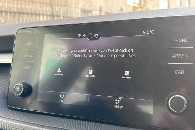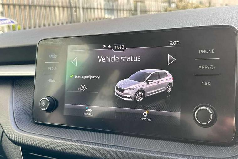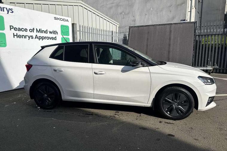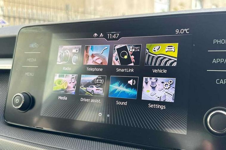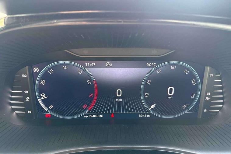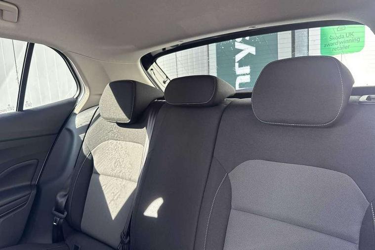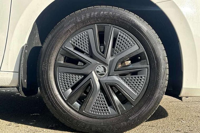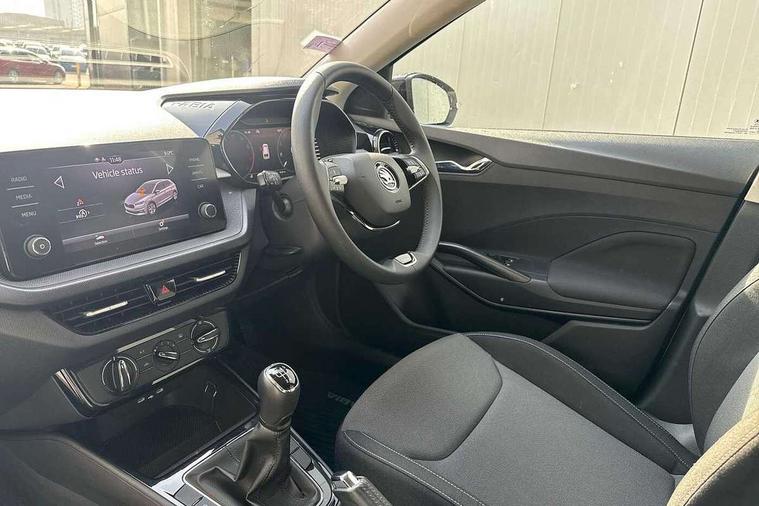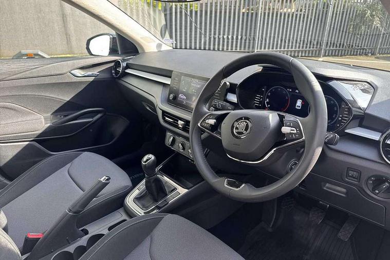 Bluetooth connection, Driver alert system - DAS, Electromechanical power steering, Exterior temperature gauge, Lane assist including road edge detection, Service interval indicator, Virtual cockpit with 10.25" colour display, 2x USB-C in the front (for data transmission and charging), 6 Speakers (4 in front and 2 in rear), Auxiliary socket for external MP3 player, Bolero radio with 8" colour display, DAB digital radio reception, Basic LED Headlights, Body coloured bumpers, Dimming rear view mirror with black frame, Door mirror integrated indicators, Electrically adjustable and heated door mirrors, Electrically adjustable front windows with function auto up/down, Front fog lights, Front window wiper intermittent control, Headlight range control - Automatic, Ice scraper in fuel cap, LED daytime running lights with coming and leaving home feature, Mechanical adjustable rear windows, Privacy glass, Rain sensor, Rear LED fog light, Rear side wing doors, Rear window wiper with washing nozzles, Roof mounted spoiler, SKODA tailgate lettering in chrome, Third brake light, 2 reading lights in front and 2 reading lights in rear, 3 rear headrests, Backrest split and folding, Central console with fixed cup holder and storage box, Chrome handbrake release button, Fabric upholstery, Gearshift knob/handle in leather, Grain satin black interior door handles, Hand brake lever handle in leather, Height adjustable drivers seat, Height adjustable front headrests, Height adjustable steering wheel, ISOFIX and TopTether anchorage points to the outer rear seats, ISOFIX and TopTether on the front passenger seat, Luggage compartment lighting, Pollen filter, Rear seat bench unsplit, Single front passenger seat, Storm grey headlining, Sun visors with mirror and airbag label on passenger side, Ticket holder, Umbrella in drivers door, 3-point height adjustable front seats belts with pretensioner and force limiter, Automatic warning lights in case of crash, Driver and passengers airbag with switch off function, e-Call+, ESC including ABS, MSR, ASR, EDS, HBA and XDS, Front and rear seat belt warning, FRONT ASSIST (AEB City and AEB Inter Urban), Front side airbags, Head airbags, One tone horn, Pedestrian protection, Three rear 3-points safety seat belts with pretensioner and force limiter including stop function for outer rear seat belts, Tyre pressure monitoring system, Anti-theft alarm system including immobiliser, interior monitoring, backup horn, and towing protection, Central locking with radio remote control, interior controls, SAFE function and 2 foldable keys, KESSY - Keyless engine start/stop, Anodized cross line upper decorative trim, Colour Edition air vents, Grain satin black central console cover, Grain satin black lower decorative trim, Satin black door and side trim panel in front, Anti-theft wheel bolts protection, Super-low rolling resistance tyres,