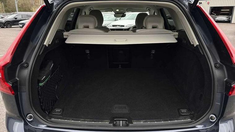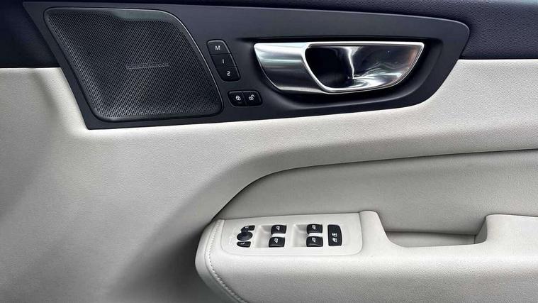 12.3" Progressive Driver Display, 360 degree surround view parking camera with side proximity sensors, 9" centre console touch screen, Adjustable steering wheel force, Bluetooth handsfree system, Driver alert control with lane keeping aid, Driver assistance (pilot assist and adaptive cruise control), Driver awareness - Blind spot information system with steer assist, cross traffic alert with autobrake and rear collision warning and mitigation, Emergency services call system, Front and rear park assist, Google Automotive Services, Oncoming Lane Mitigation, Service interval indicator, Speed limiter, Speed sensitive steering, Trip computer, Volvo on call with App, Wireless/Inductive Mobile Phone Charging, 8 speed automatic transmission with start/stop + manual change functions, Dynamic chassis, DAB Digital radio, Premium Sound by Harman Kardon, dirac unison, dolby pro logic II surround sound, 13 speakers/600W output and fresh air subwoofer, Steering wheel remote infotainment controls, Adaptive brake lights with high level LED brake lights, Auto dimming interior + exterior mirrors, Automatic headlight levelling system, Automatic LED Headlights + Active high beam incorporating daytime running lights, Electric adjustable/heated/auto power folding door mirrors, Electric front+rear windows, Front aluminium tread plates, Heated front windscreen, High gloss black door mirrors and window surround, High gloss black front and rear bumper decoratives, High gloss black mesh front grille with high gloss black surround, Home safe and approach lighting, Integrated roof rails in high gloss black, LED front fog lights, Puddle lights, Rain sensor with automatic windscreen wiper activation, Rear side wing doors, Rear wiper, Roof antenna, Roof spoiler, Tinted windscreen, Visible VIN plate, 12V socket in front tunnel console and luggage compartment, 3 seat bench in 2nd row, 4 Zone electronic climate control, A-pillar parking ticket holder, Air purifier particulate matter (PM) 2.5 filter, B Pillar ventilation, Bright metal luggage threshold, Centre console cupholders and storage, Charcoal floor mats, Front and rear courtesy lights, Front and rear door pocket illumination, Front cupholder illumination, Front footwell illumination, Front reading lights, Front seat cushion extensions, Glovebox compartment with illumination, Head restraints for all seats, Heated front seats, Heated steering wheel, Height/reach adjustable steering column, Illuminated luggage compartment, Illuminated vanity mirrors + ticket holder, ISOFIX attachment on outer rear seats, Load cover, Load protection net, Multi directional lumbar support, Power driver seat with memory + exterior mirrors memory, Power height adjustable passenger seat, Rear armrest with cupholder, Rear footwell and front and rear side step illumination, Rear seat concealed storage, Single front passenger seat, Tailgate illumination and ambient door lighting, Underfloor stowage compartment, Versatile split folding rear seat - 60/40, 5 three point seatbelts, City safety with steering support with Pedestrian + cyclist + large animal detection + front collision warning with full auto brake, Drivers knee airbag, Dual stage driver/passenger airbags, Electronic parking brake with auto hold, First aid kit, Front seats SIPS airbags, Hill descent control - Off-road drive mode, Hill start assist, IC (Inflatable Curtains) - Full Length, Passenger airbag cut-off device, Power child locks on rear doors, Road sign information display, Run off Road Mitigation, Run off Road Protection, Seatbelt reminder and pretensioners, SIPS (Side Impact Protection System), Slippery road and hazard light alert, Stability and Traction Control with Spin control, Engine Drag Control and Corner Traction Control, Tyre pressure monitoring system, Vehicle deceleration control with Anti-lock Brake System, Electronic Brake Distribution and Emergency Brake Assist, Warning triangle, WHIPS whiplash protection system - front, Anti-theft alarm including immobiliser/volume sensor + level sensor, Care key with user defined top speed, Key integrated remote control central locking + fuel flap with deadlocking system and auto open/close power windows, Keyless Drive (includes Keyless Entry and Keyless Start) with Handsfree Tailgate Opening/Closing, Locking wheel nuts, Private locking for tailgate,