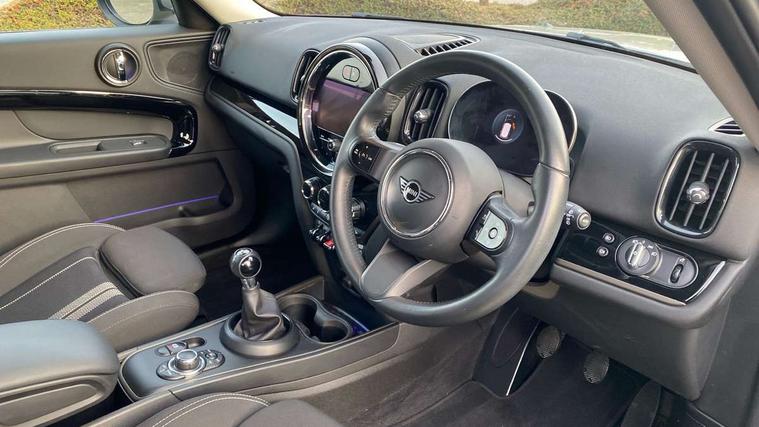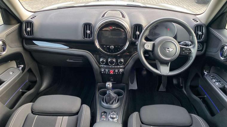 Active Guard incl speed limiting and lane departure functions with auto steering, and front collision warning with brake intervention, Automatic start/stop function with brake energy recuperation, Compatible mobile phone bluetooth with audio streaming, Cruise control with brake assist, Electro-mechanical speed dependant steering assistance, Instrument cluster, MINI Driving Modes - centre toggle switch to control driving setting (sport, mid and green), Mini E-call, On board computer, Rear parking distance control, 51 Litre fuel tank, 6 Speed manual transmission including gear change indicator display, Double Vanos system, Fully variable valve control, High precision injection, Performance Control, FM tuner and DAB digital radio, 3rd brake light, Bonnet scoop, Chrome border honeycomb structure radiator grille with S badge, Chrome fuel filler cap, Day time driving lights, Dynamic brake lights, Electric windows, Heated rear window, Heated windscreen washer jets, LED fog lights, LED Headlights, Metal door sill strips with Cooper S imprint, Model logo, Model logo on Tailgate, Rain sensor with auto headlights, Rear fog lights, Rear side wing doors, Rear window wiper, Side scuttle panel with integrated indicator, Split rear doors, Sun/heat protection glass, Twin exhaust tailpipe, White indicator lenses, 12V socket in centre console, 3 seat bench in 2nd row, 3 spoke sport leather steering wheel + limiter function and audio controls, 360L luggage compartment capacity, 4 lashing eyes in luggage compartment, 40:20:40 split folding rear seats, Chrome interior highlights, Colour line - Carbon black, Cupholders, English handbook, Floor mats, Front headrests, Glove compartment, Headliner with grab handles and clothes hooks, Height and length steering column adjustment, Interior lighting with 12 basic colours selectable via toggle switch in roof, Isofix rear child seat preparation, Leather gearshift lever and handbrake gaiters, LED reading lights, vanity mirror lights, front foot well light and spotlight on front seats, Manual air conditioning, Mechanical seat adjustment, driver seat height adjust, forward/back and front seats backrest, Multifunction steering wheel, Passenger seat height adjuster, Rear headrests, Single front passenger seat, Storage compartments in doors, Sunvisors with vanity mirrors, Excitement pack - Countryman, Navigation pack - Countryman, 2 tone horn, 3 point seatbelts on all seats, 6 Airbags - front, side, head and seat belt tensioners, Anti-lock braking system (ABS), DSC - Dynamic Stability Control, Electronic handbrake, Front and rear disc brakes, Hill start assist, Manual rear child locks, Tyre pressure monitoring system, Alarm system with tilt sensor, monitoring doors, bonnet interior and tailgate, Auto drive away locking, Deadlocking function, Electronic vehicle immobiliser, Locking wheel bolts, Start/stop toggle with keyless go, Piano black interior trim, Tool kit,