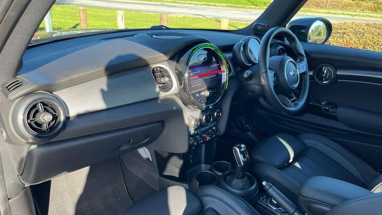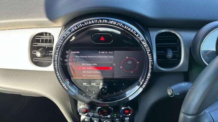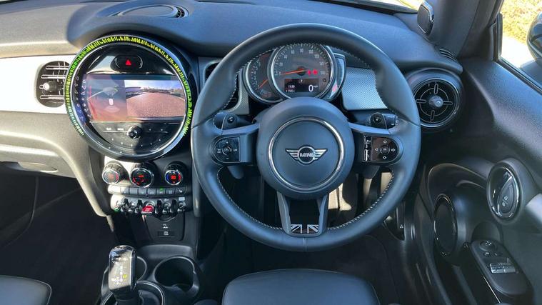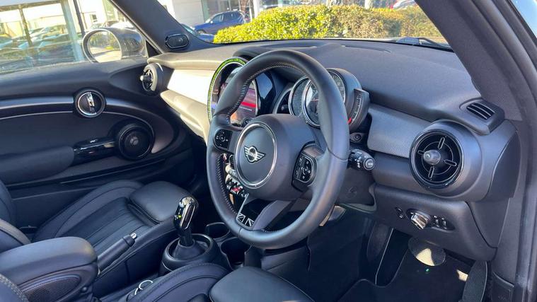 Apple CarPlay, Automatic start/stop function with brake energy recuperation, Compatible mobile phone bluetooth with audio streaming, Cruise control with brake assist, Electro-mechanical speed dependant steering assistance, Flexible car sharing preparation, Instrument cluster, MINI Driving Modes - centre toggle switch to control driving setting (sport, mid and green), Mini E-call, MINI TeleServices, On board computer, Rear park distance control, Service interval indicator, Double Vanos system, Fully variable valve control, High precision injection, Performance Control, Steptronic sport transmission with double clutch and steering wheel paddles, 8.8" touchscreen with LED ring, FM tuner and DAB digital radio, 3rd brake light, Automatic headlight activation switch, Bonnet scoop, Chrome line exterior - radiator grille bars, tailgate handle, lower front grille grating and rear central fog-light, Dynamic brake lights, Electric front windows, Heated rear window, Heated windscreen washer jets, LED headlight with closed ring and daytime driving lights, Metal door sill strips with Cooper S, Model logo Cooper S on right of tailgate, Rain sensor window wipers, Rear fog lights, Rear LED lights with union jack design, Rear window wiper, Side scuttle panel with integrated indicator, Sun/heat protection glass, White indicator lenses, 12V Accessory socket in centre console, 2 seat bench in 2nd row, 4 lashing eyes in luggage compartment, 60/40 split folding rear seat, Carbon black colour line - Knee roll and door armrest, Chrome interior highlights, Chrome line interior - air vents, gear lever base, door handles and speakers in doors, Cupholders, Front and rear head restraints, Front and rear isofix with front passenger airbag deactivation, Front floor mats in velour, Glove compartment, Height and length steering column adjustment, Interior lighting with 12 different colours across the dashboard, underneath door bezel with illuminated laser-engraved design on central display, Leatherette gearshift lever and handbrake gaiters, LED reading lights, vanity mirror lights, front foot well light and spotlight on front seats, Manual air conditioning, Mechanical seat adjustment - forward/back & backrest for front seats and driver seat height adjust, MINI yours badge on exterior pillar, Multifunction steering wheel, Passenger seat height adjuster, Satellite grey headlining including grab handles and clothes hooks, Single front passenger seat, Storage compartments in doors, Storage pocket on back of front seats, Sunvisors with vanity mirrors, Walknappa leather steering wheel with grey seam and MINI Yours badge on Piano Black lower steering wheel spoke, 3 point seatbelts on all four seats, 6 Airbags - front, side, head and seat belt tensioners, Anti-lock braking system (ABS), DSC - Dynamic Stability Control, Front and rear disc brakes, Two tone horn, Tyre pressure monitoring system, Alarm system with tilt sensor, monitoring doors, bonnet interior and tailgate, Electronic vehicle immobiliser, Start/stop toggle with keyless go, Tool kit,