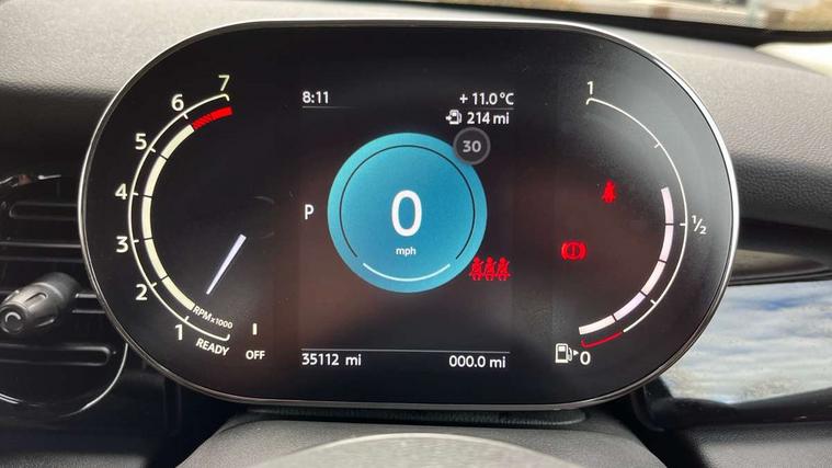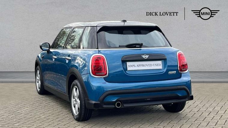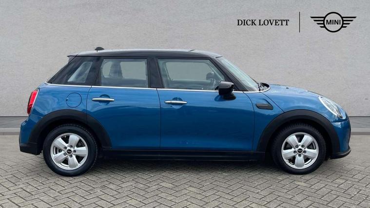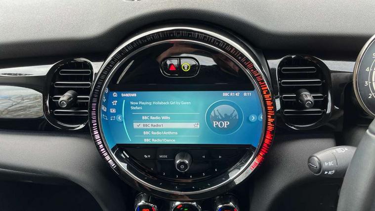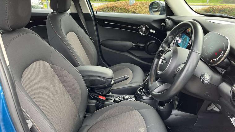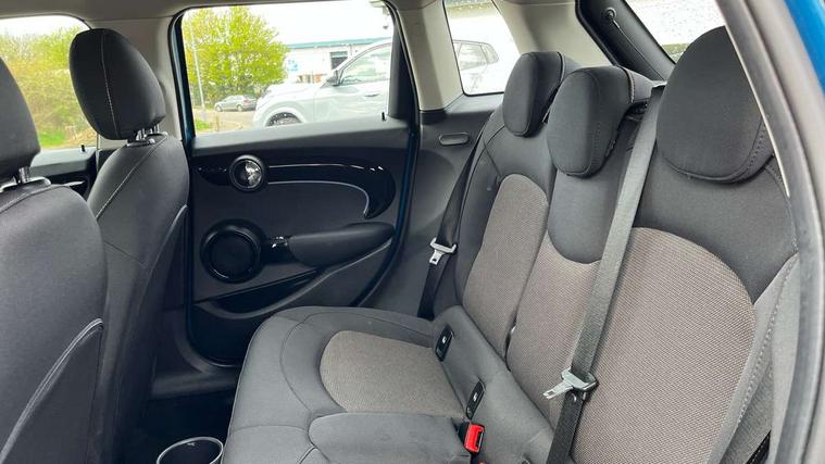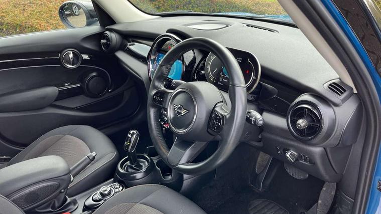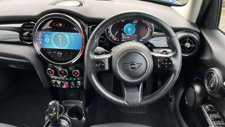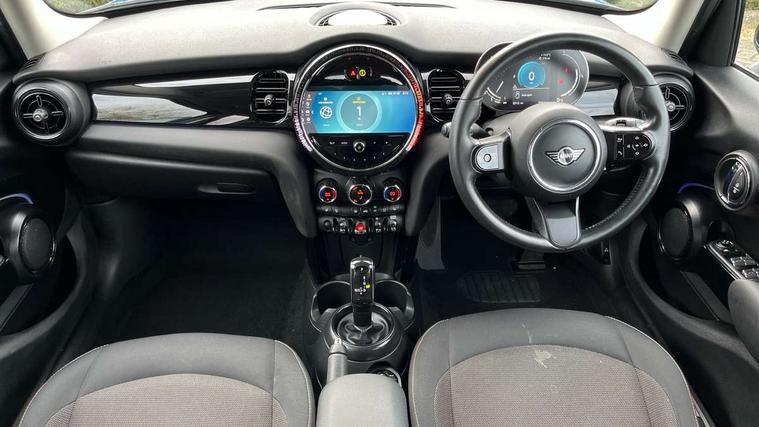 Apple CarPlay, Automatic start/stop function with brake energy recuperation, Compatible mobile phone bluetooth with audio streaming, Cruise control with brake assist, Electro-mechanical speed dependant steering assistance, Flexible car sharing preparation, Instrument cluster, Mini E-call, MINI TeleServices, On board computer, Service interval indicator, Double Vanos system, Fully variable valve control, Gear change indicator display, High precision injection, Performance Control, Steptronic transmission with double clutch, 8.8" touchscreen with LED ring, FM tuner and DAB digital radio, 3rd brake light, Automatic headlight activation switch, Body colour fuel filler cap, Chrome border high gloss black slats radiator grille, Dynamic brake lights, Electric front+rear windows, Exhaust tailpipe on left with chrome finisher, Heated rear window, Heated windscreen washer jets, LED headlight with closed ring and daytime driving lights, Metal door sill strips with MINI imprint, Model logo Cooper on right of tailgate, Rain sensor window wipers, Rear fog lights, Rear LED lights with union jack design, Rear side wing doors, Rear window wiper, Side scuttle panel with integrated indicator, Sun/heat protection glass, White indicator lenses, 12V Accessory socket in centre console, 3 seat bench in 2nd row, 4 lashing eyes in luggage compartment, 60/40 split folding rear seat, Ambient lighting, Carbon black colour line - Knee roll and door armrest, Chrome interior highlights, Cupholders, Front and rear head restraints, Front and rear isofix with front passenger airbag deactivation, Front and rear velour floor mats, Glove compartment, Height and length steering column adjustment, Interior lighting with 12 different colours across the dashboard, underneath door bezel with illuminated laser-engraved design on central display, Leatherette gearshift lever and handbrake gaiters, LED reading lights, vanity mirror lights, front foot well light and spotlight on front seats, Manual air conditioning, Mechanical seat adjustment - forward/back & backrest for front seats and driver seat height adjust, Multifunction steering wheel, Satellite grey headlining including grab handles and clothes hooks, Single front passenger seat, Sport leather steering wheel with speed limiter and audio/communication controls, Storage compartments in doors, Sunvisors with vanity mirrors, 3 point seatbelts on all five seats, 6 Airbags - front, side, head and seat belt tensioners, Anti-lock braking system (ABS), Child locks on rear doors, DSC - Dynamic Stability Control, Front and rear disc brakes, Hill start assist, Single tone fanfare horn, Tyre pressure monitoring system, Alarm system with tilt sensor, monitoring doors, bonnet interior and tailgate, Electronic vehicle immobiliser, Start/stop toggle with keyless go, Piano black interior trim, Tool kit, Tyre repair kit,