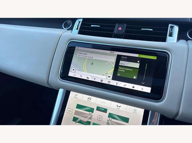 360 Parking aid, All Terrain Info Centre, Android Auto, Apple car play, Bluetooth connectivity, Clear exit monitor, Driver condition monitor, Electric power assisted steering (EPAS), Incontrol apps in vehicle touchscreen, Interactive Driver display instrument cluster, Mist sensor, Navigation pro system with 10" touch screen, app interface and media storage, Pro services and wifi hotspot, Push button start, Rear traffic monitor, Remote premium - Upgraded Incontrol remote app including remote climate control (engine dependent), remote lock + Unlock and remote beep + flash, TFT Virtual Instrument Panel, Touch pro duo system, Traffic sign recognition with adaptive speed limiter, Trip computer, Adaptive dynamics, All terrain progress control, Electronic active differential with brake torque vectoring, Electronic air suspension with dynamic response (active roll control), Gradient release control (GRC), Terrain Response 2 with dynamic program, Twin speed transfer box, Bluetooth audio streaming, DAB Radio (Digital Audio Broadcasting), Incontrol protect - SOS emergency call with automatic collision detection, optimised assistance call and Incontrol remote app essential, USB/aux input socket, Acoustic front and toughened rear side glass, Acoustic laminated front windows, Adaptive brake lights, Auto dimming interior rear view mirror, Automatic headlights, Body coloured side sills and bumpers corners, Electric windows with one touch open/close and anti trap, Electrical towing preparation, Engine cover, Follow me home lighting, Front and rear recovery eyes, Front fog lights, Headlight power wash, Heated rear window, Heated windscreen includes heated washer jets, Illuminated metal treadplates with brand name script, LED rear lamps, Power fold, auto-dimming, heated door mirrors with memory and approach lights, Rain sensing windscreen wipers, Rear fog lights, Rear wash/wipe, Remote window closing, Side repeater indicators in mirror, Standard bonnet, Trailer stability assist, Twin bright tailpipes, 2 way active front head restraints, 2 way rear head restraints, 60/40 load through rear seats, Automatic air recirculation system, Bright metal foot pedals, Centre console with armrest, Climate control memory, Configurable Ambient interior lighting, Customer configurable single point entry, Driver's footrest, Extended leather upgrade includes door top rolls and leather instrument panel mid section, Front and rear cupholders, Front and rear premium carpet mats, Front door storage space, Front map lights, Front seat back map pockets, Front stowage pocket, Front/rear passenger grab handles, Heated steering wheel, Isofix child seat preparation, Leather steering wheel with Atlas inserts, Loadspace light, Loadspace mounting provisions, Lockable glovebox, Multifunction steering wheel, Pollen filter, Power socket, Reach/rake electric adjustable steering column + entry/exit tilt away, Rear centre armrest, Rear ISOFIX, Roller blind loadspace cover, Satin chrome gearshift paddles, Sports pedals, Three 12V accessory power outlets, Smartphone pack - Range Rover Sport, 3 point seatbelts on all seats, Anti-lock braking system (ABS), Brake pre-fill technology, Cornering brake control (CBC), Curtain airbags, Customer configurable autolock, DSC - Dynamic Stability Control, Dual stage driver/passenger airbags, EBD - Electronic brakeforce distribution, Electric parking brake, Electronic traction control, Emergency braking includes city, urban AEB and pedestrian, Front seatbelt pretensioners, Gradient acceleration control, Grey anodised brake calipers, Height adjustable front seatbelts, High speed emergency braking, Hill descent control, Hill launch assist, Low traction launch, Passenger seat occupant detector with front airbags, Power operated child locks, Roll stability control, Seatbelt warning, TPMS (Tyre pressure monitoring system), Immobiliser, Intrusion sensor, Keyless entry, Locking wheel nuts, Perimetric and volumetric anti theft alarm, Remote locking,
