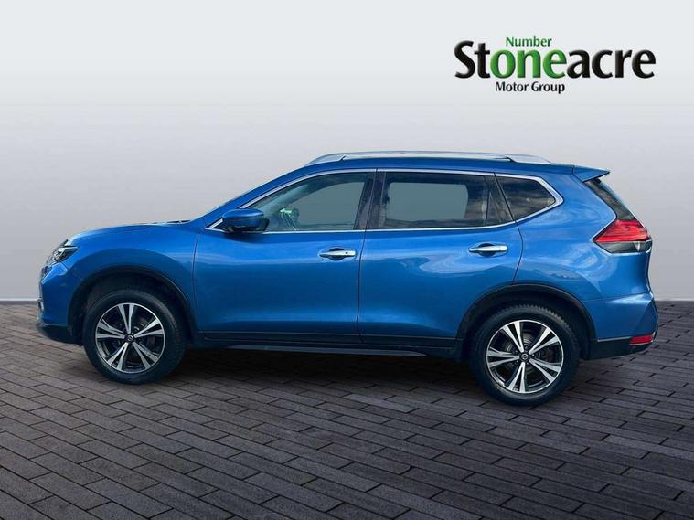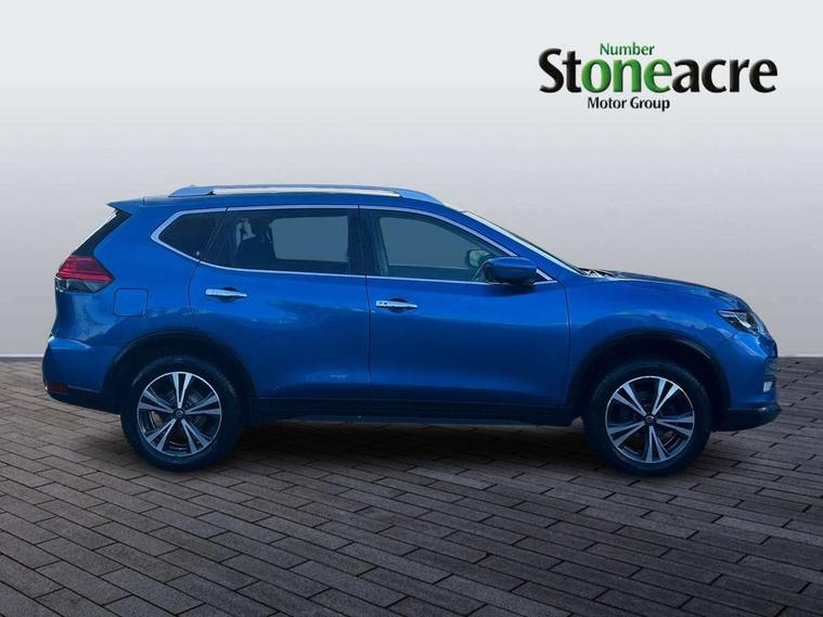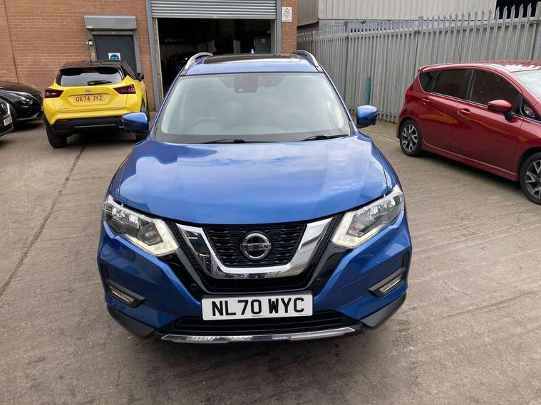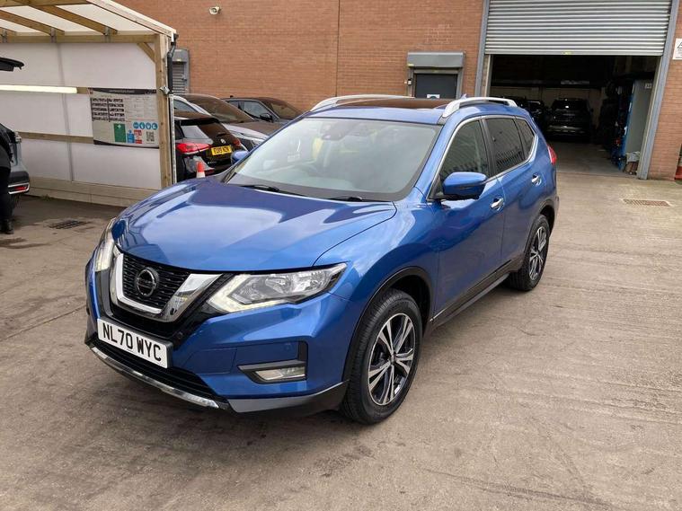 5" TFT driver information centre, Bluetooth phone integration system, Cruise control + speed limiter, Front and rear parking sensors, Intelligent around view monitor, Lane departure warning system, Nissan connect evo 7" touchscreen navigation and entertainment system with Android auto, Apple car play, Tomtom maps and Live traffic, PAS, Traffic sign recognition, Trip computer, Nissan chassis control (intelligent ride control, intelligent trace control, intelligent engine brake), 6 speakers, DAB Digital radio, Radio/CD, Rear USB port, Steering wheel mounted audio controls, USB/aux input socket, Anti dazzle rear view mirror, Automatic headlights, Automatic rain sensing wipers, Black honeycomb front grille, Body colour door mirrors, Chrome door handles, Chrome window surround, Electric folding door mirrors, Electric heated door mirrors, Front and rear electric windows, Front fog lights, Halogen headlights, High beam assist, LED daytime running lights, Panoramic sunroof with one touch shade, Rear privacy glass, Rod antenna, Shark fin roof aerial, 3 rear headrests, 60/40 split rear bench seat, Centre console storage box/armrest, Cloth upholstery, Configurable luggage board system, Driver's manual adjustable lumbar support, Dual zone climate control, Front and rear door pockets with bottle holders, Front cupholders, Front/rear armrests, Height adjustable front headrests, Individual rear reading lights, Isofix child seat attachment, Leather D shaped steering wheel, Leather steering wheel and gear knob, Pollen filter, Tilt/telescopic adjustable steering wheel, 3 point seatbelts on all seats, 6 airbags - Driver, front passenger, curtain and side airbags, ABS, Child locks on rear doors, EBD + Brake Assist, Electric parking brake, ESP + traction control, Intelligent emergency braking with pedestrian recognition, Seatbelt warning, Tyre pressure monitoring system, Immobiliser, Remote central locking, Thatcham Cat.1 alarm, 17" Alloy wheels, Full size spare wheel,