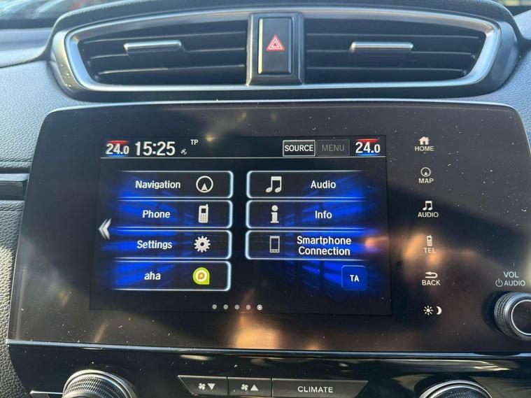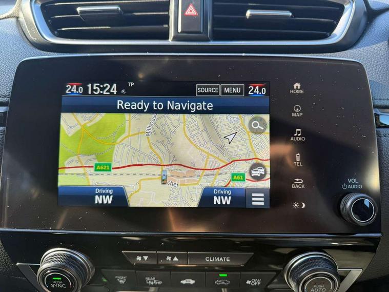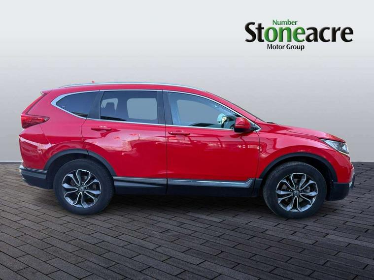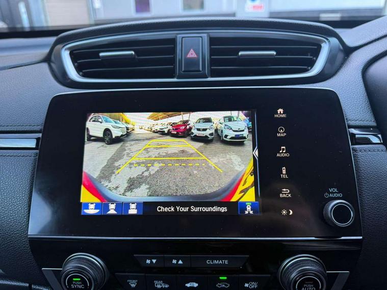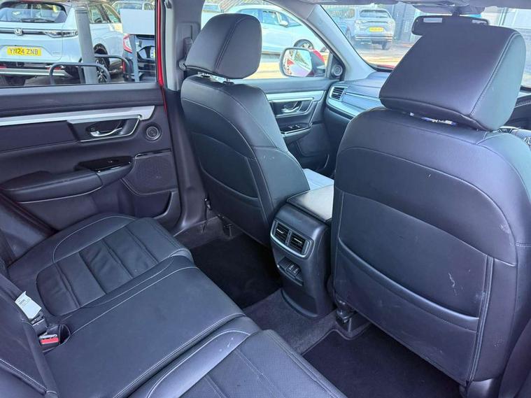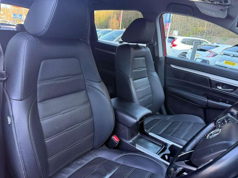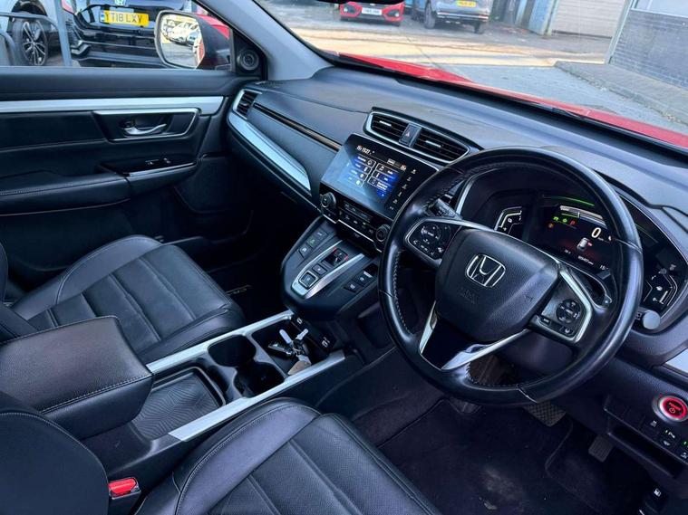 Adaptive cruise control, Agile handling assist, BLIS (Blind Spot Information System) with dual power heated blind spot mirrors, Bluetooth hands free telephone connection, E-call, Economy mode, Electric power steering, Emergency stop signalling system, Forward collision warning, Front parking sensors, Honda CONNECT with GARMIN Navigation + 7" touchscreen, DAB radio, Apple CarPlay, Android Auto, Aha app integration and internet browsing, Intelligent multi info display, Lane departure warning system, Lane keep assist system, Low speed following, Rear parking sensors, Rear view camera, Road departure mitigation, Speed limiter, Traffic sign recognition, Vehicle stability assist, 2 USB sockets in rear, 2x USB sockets in front, 9 speakers, DAB Digital radio, Dashboard centre speaker, Front tweeters, Steering wheel mounted controls, Subwoofer, Aspheric door mirrors, Auto dimming rear view mirror, Automatic headlights with dusk sensor, Body colour bumpers, Body colour door handles, Cornering light, Door mirrors tilt when reversing, Electric front windows/one touch facility, Electric rear windows + one touch facility, Electrically adjustable and heated door mirrors, Electrically retractable door mirrors, Front windscreen de-icer, High beam assist, LED daytime running lights, LED front fog lights, LED Headlights, LED rear lights, Rain sensor, Rear privacy glass, Rear side wing doors, Rear wiper, Roof rails, Shark fin roof aerial, Tailgate spoiler, Third brake light, Welcome home function, 3 seat bench in 2nd row, 60/40 split folding rear seat, Accessory sockets, Ambient interior lighting, AWD emblem rear, Cargo hooks, Courtesy lights, Driver's electric adjustable lumbar support, Driver/passenger front seatback pockets, Driver/passenger sunvisors with illuminated vanity mirrors, Dual zone automatic climate control, Electric lumbar adjustment on passenger's seat, Footwell ambient lighting, Front centre armrest, Front map lights, Front passenger seat height adjust, Heated front seats, Height adjustable driver's seat, Hybrid emblem, Illuminated glovebox, Instrument panel with garnish wood film, Isofix child seat preparation, Leather steering wheel, Leather upholstery, Paddle shift controls, Rear air vents, Rear centre armrest, Rear headrests, Rear reading lights, Rear seat conversation mirror, Silver interior door handles, Single front passenger seat, Sunglasses holder with mirror, Tilt/telescopic adjustable steering wheel, Tonneau cover, Trunk light, 5 x 3 point seatbelts, ABS/EBD, Anti-whiplash front headrests, Brake assist function, Collision mitigation braking system, Deflation detection system, Driver airbag, Electronic parking brake with auto hold, Front and rear curtain airbags, Front and rear seat belts with emergency locking retractor (ELR), Front side airbags, Hill start assist, Manual child lock in rear doors, Passenger airbag deactivate switch, Honda super locks, Immobiliser, Security alarm, Smart entry + Smart start, Ultrasonic security sensor, Tyre repair kit,