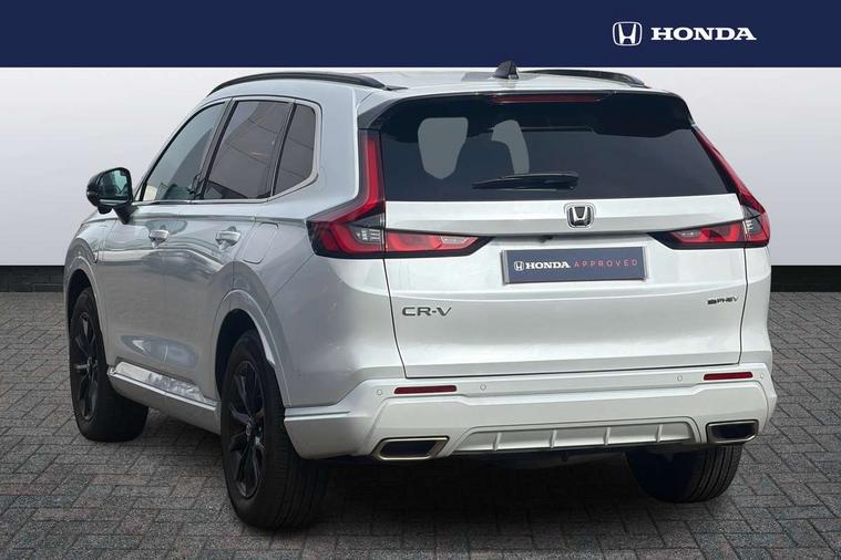 10.2" Multi information display, 4 x front 4 x rear 4 x side parking sensors, Active lane change assist, Adaptive cruise control with Cornering speed assist, Adjustable speed limiter, Agile handling assist, BLIS (Blind Spot Information System) with Cross Traffic Monitor, Bluetooth hands free telephone connection, Crossing traffic warning front, Drive Mode (EV, Econ, Sport, Normal, Snow, Tow), Driver attention monitoring system, E-call, eCall emergency call system, Electric power steering, Emergency stop signalling system, Forward collision warning, Handfree power tailgate with kick sensor and walk away close, Head up Display, HEV mode, Honda 360 sensing, Honda CONNECT navigation with My Honda+ 9" touchscreen, AM/FM/DAB, Apple Carplay and Android Auto, live traffic info, Honda parking pilot, Intelligent speed limiter, Lane change collision mitigation, Lane departure warning system, Lane keep assist system, Lane watch, Lead car departure notification system, Low speed following, Power meter, Road departure mitigation, Traffic jam assist, Traffic sign recognition, Wireless apple carplay, Wireless charging, Adaptive performance damper, Vehicle stability assist, 12 speakers, 1X USB (A/2.5A) and 1x Charger (C/3A) on Front, Bose premium sound system, Centre speakers, DAB+ radio, Dashboard centre speaker, Front tweeters, Rear USB 2x Charger (C/3A), Steering wheel mounted controls, Subwoofer, Active cornering lights, Adaptive driving beam, Auto dimming rear view mirror, Auto headlight adjuster, Auto headlights, Auto wipers, Black door mirror caps, Black paint + exculsive grille, Black Shark-fin antenna, Body colour bumpers, Body colour door handles, Body colour plus black colour roof spoiler, Electrically adjustable and heated door mirrors, Electrically folding door mirrors, Exhaust pipe finisher, Exterior mirror tilt for reverse, Front and rear electric windows, Front LED Indicator lights, Front turn type led with sequential, Headlight auto on/off timer, High gloss black window garnish, LED 3rd brake light, LED daytime running lights, LED front fog lights, LED Headlights, LED rear lights, Multi view camera system in door mirrors, Panoramic opening glass sunroof, Privacy glass, Rain sensor, Rear side wing doors, Rear wiper, Roof rails, Trailer stability assist, Welcome home function, 3 seat bench in 2nd row, 4 way driver lumbar support, 4 way electrically adjustable passenger seat without height adjust, 60/40 split folding rear seat, 8 way electrically adjustable drivers seat + mirror memory, Accessory sockets in Front & Trunk, Air conditioning - Rear vent, Ambient light in roof, Cargo net hooks, Courtesy lights, Dark roof lining, Driver and front passenger seat armrests, Driver/passenger front seatback pockets, Driver/passenger sunvisors and vanity mirrors, Driver/passenger sunvisors with illuminated vanity mirrors, Dual zone automatic climate control, Film layered honeycomb metal interior panels, Footwell ambient interior light front and rear, Front and rear ambient light (door handle&door line) and front cup holder, Front centre armrest, Front map lights, Front ventilated seats, Genuine leather steering wheel, Heated front seats, Heated rear seats, Heated steering wheel, Hybrid emblem, I-Size ISO Fix Points, Instrument panel with garnish wood film, Leather upholstery, Luggage floor box, Meter illumination, Platinum chrome interior door handles, Rear centre armrest, Rear headrests, Rear reading lights, Reclining rear seats, Single front passenger seat, Sport pedals, Sunglasses holder with mirror, Synthetic headrest, Tilt/telescopic adjustable steering wheel, Tonneau cover, Trunk light, Exclusive styling with sport paint pack - CR-V, 5 x 3 point seatbelts, ABS/EBD, Anti-whiplash front headrests, Brake assist function, Collision mitigation braking system, Deflation detection system, Driver airbag, Driver SRS airbag (single stage inflation), Electronic parking brake with auto hold, Front and rear collision mitigation throttle control, Front and rear curtain airbags, Front and rear seat belts with emergency locking retractor (ELR), Front centre airbag, Front passenger airbag, Front side airbags, Hill descent control, Hill start assist, Knee airbags (DR) and (AS), Low speed brake system, Manual child lock in rear doors, Paddle deceleration control, Passenger SRS airbag with cut off switch, Rear side airbags, Honda super locks, Immobiliser, Mirrors and windows key fob operation, Remote central locking with 2 key fobs, Security alarm, Selectable door unlock, Smart entry + Smart start, Tilt sensors, Ultrasonic security sensor, Flat tyre solution temper tyre/repair kit,