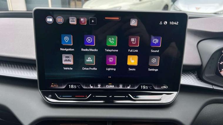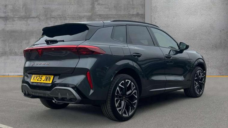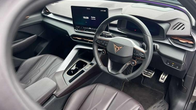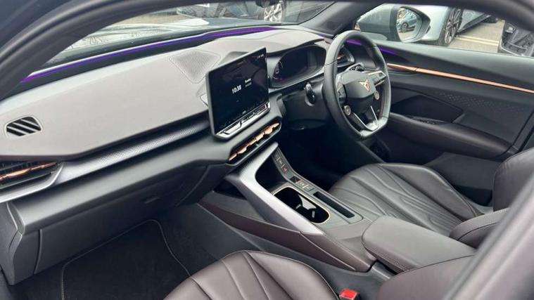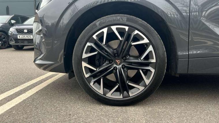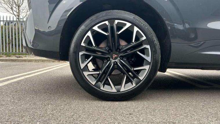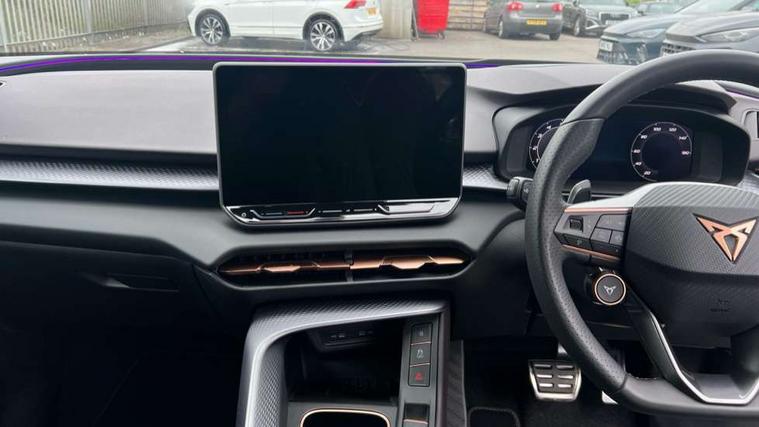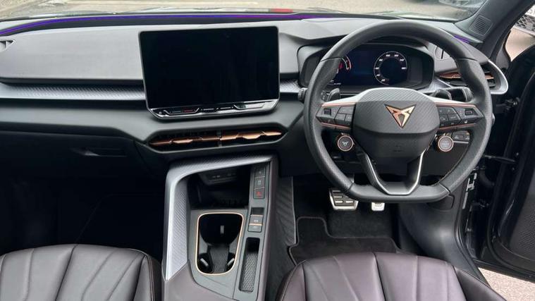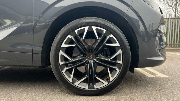 10.25" digital cockpit and configurable dashboard, Adaptive cruise control with follow-to-stop and speed limiter, Advanced driver alert system, Advanced lane assist with semi-automatic vehicle control in a medical emergency and traffic jam assist, Driving profile selection (DCC- Comfort, performance, CUPRA, Individual, Dynamic road sign display, E-call, Electric tailgate with virtual pedal, Emergency steering support with turn assist, Front and rear parking sensors, Front assist (Forward collision warning with automatic braking) with multifunction camera and front cross traffic assist, Head up Display, Intelligent park assist, Media system with Nav - 12.9" touch display, voice control, full link phone (wired/wireless), DAB and Steering wheel mounted controls, Rear traffic assist, Side and exit assist, Speed sensitive power steering, Start/stop system with regenerative braking, Top view camera (front camera, rear camera, 2 side cameras), Wireless phone charger, Adaptive chassis control with a 2-valve shock absorber, Auto dimming rear view mirror, Black roof rails, CUPRA 3D rear lights with ceremony & swiping indicator and illuminated logo, Dark tinted rear windows, Daytime running lights with automatic headlight control and Coming and Leaving home function, Door mirrors with memory function and lowing function on passenger mirror, Electric front/rear windows, Electrically adjustable, heated and folding door mirrors, Front fog lamps with cornering function, Heat reflecting windscreen, High beam assist, Rain sensing wipers, Rear fog light on one side, back up light on both sides, Rear side wing doors, Rear wash/wipe, Third brake light, Welcome lights (within exterior mirror housing), 3 seat bench in 2nd row, Black roof lining, Cupra sports pedals, Driver seat memory function, Electrically adjustable front seats including lumbar support, Four x USB Type C ports (2 in front and 2 in rear), Front and rear head restraints, Front and rear reading lights X 4, Front centre armrest, Heated front seats, Heated leather wrapped multi function sports steering wheel with tiptronic, Illuminated interior front door sills, Isofix, Leather upholstery, Operating voltage 12V, Single front passenger seat, Smart wraparound interior lighting, Sunvisors with illuminated mirror, Three zone climate control with control panel in rear, Unsplit rear seat bench, split folding backrest, with centre armrest, Variable luggage/load compartment floor, Pure performance pack - Terramar, 3 point seatbelts in front with pretensioner and electric height adjustment, 3 point seatbelts on all rear seats, Brake control system - ESC and brake booster, Child proof door locks, Driver and front passenger airbags, Electronic parking brake, Front and rear disc brakes, Front interaction airbag, Front passenger airbag deactivation switch, Front side airbags with curtain airbags, Pre-crash front and rear seat belt tensioner, window closure and hazard lights, Tyre pressure monitoring system, Visual and acoustic seat belt reminder, electric contact in front and rear, Anti theft alarm, Keyless locking and starting system with keyless access, Locking wheel bolts, Black decorative trims, Chrome interior detailing, 20" Hadron exclusive machine alloy wheels, Performance tyres in polmer coating, Tool kit,