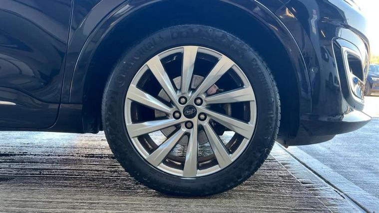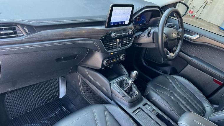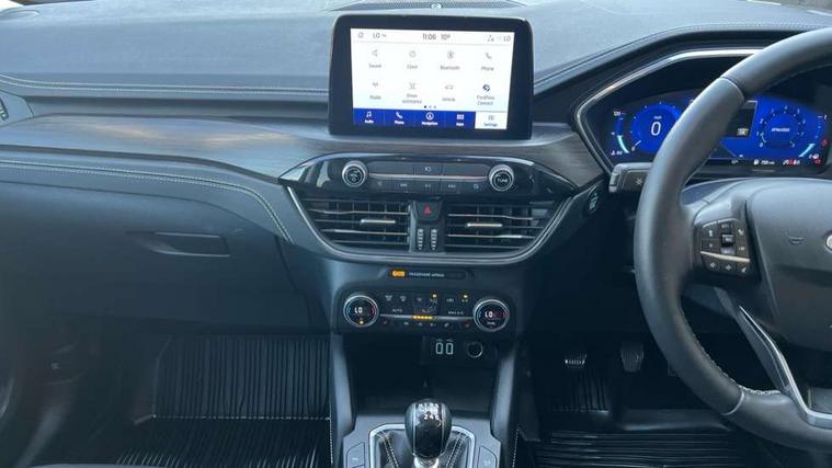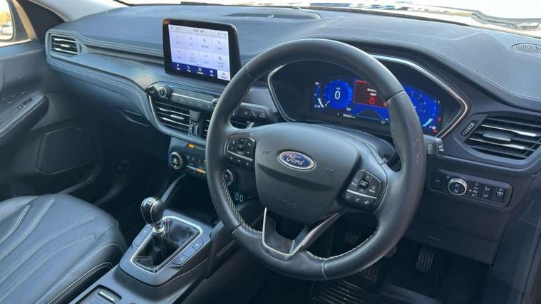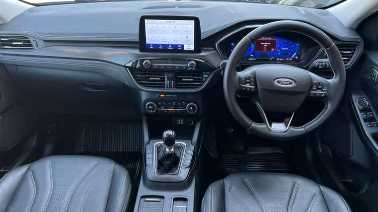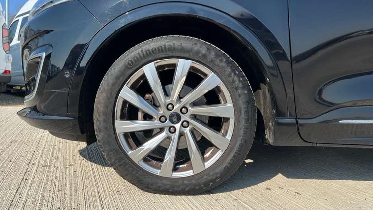 Ford easy fuel, Front and rear parking sensors, Hands free power tailgate, Lane keeping aid with lane departure warning, Mobile phone wireless charging pad, Power assist steering, Rear view camera, Selectable drive modes, Auto dimming rear view mirror, Auto headlamps with high and low beam, Auto wipers, Front and rear vignale fascia, Front LED fog lamps, LED daytime running lights, LED rear lights, Memory functionality with door mirrors, Power folding heated door mirrors with puddle lights, Power front/rear windows with global close, Privacy glass, Quickclear heated windscreen, Rear spoiler, Silver roof rails, Twin exhausts, Vignale body styling kit, Vignale front scuff plates, Vignale rear diffuser, 10 way power adjustable drivers seat with memory function, 2nd row sliding seats with 60:40 split, 8 way manual passenger seat including lumbar support and height adjust, Ambient lighting, Centre console with electronic parking brake, Dual electronic automatic temperature control, Front and rear head restraints, Heated passenger and driver seats, Heated rear seats, Heated steering wheel, Partial premium touch sensico sports seats with ebony cloth inserts, Rear charging point, Vignale front and rear mats, Vignale premium touch sensico steering wheel, Windsor premium leather upholstery, B&O with large instrument cluster pack - Kuga, 3x3 point rear seatbelts, Airbags - front driver/passenger, front and rear curtain, Drivers knee airbag, Electronic stability control (ESC) and ABS, Ford MyKey Gen 2 safety system, Manual child proof rear door locks, Post collision braking, Pre collision assist with autonomous emergency braking, Rear seat Occupancy alert, Tyre pressure monitoring system, Engine immobiliser, Keyless entry, Keyless start with 'Ford Power' starter button, Locking wheel nuts, Remote powered central double locking doors, Thatcham category 1 alarm, Leather wrapped instrument panel, 19" 5x2 spoke luster nickel alloy wheels,