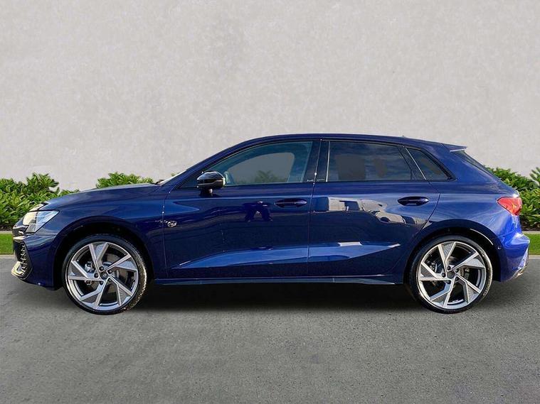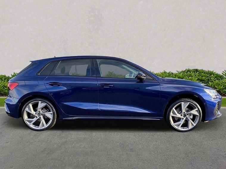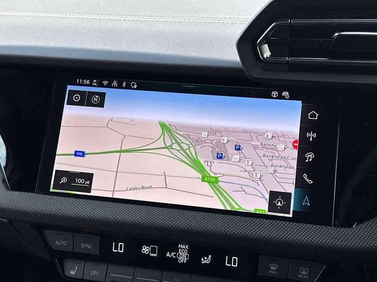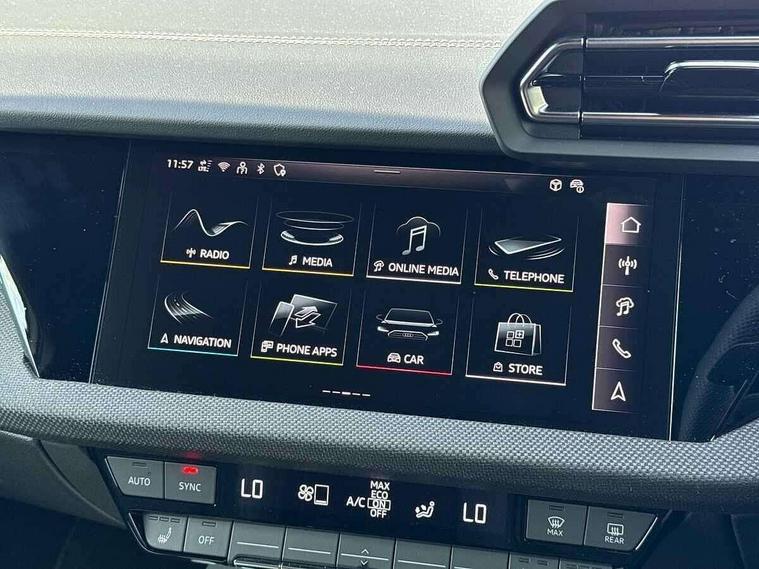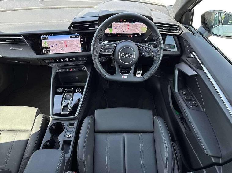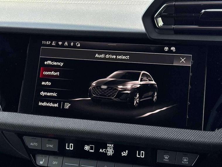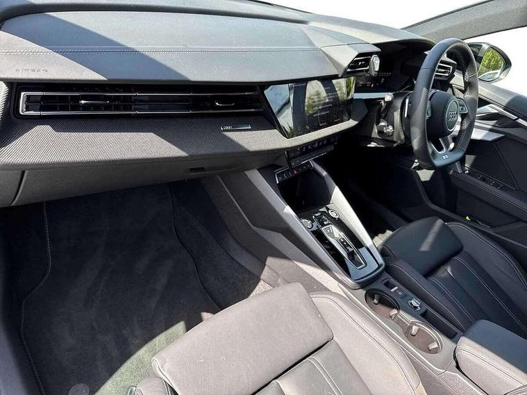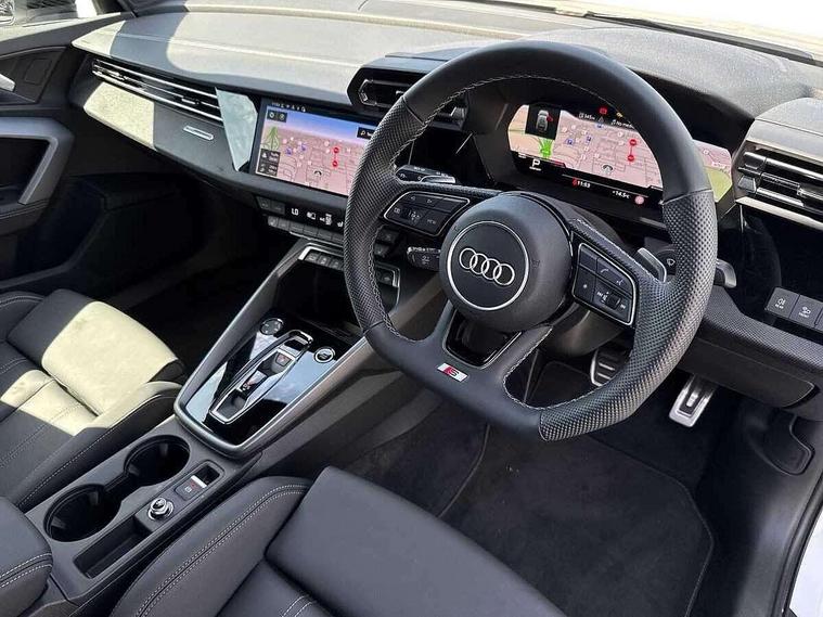Adaptive cruise control (ACC), Adjustable speed limiter, Audi drive select (Auto, Comfort, Dynamic, Efficiency and Individual), Audi virtual cockpit plus - 12.3" full HD resolution dynamic digital instrument cluster, Automatic start/stop system with recuperation, Bluetooth interface, Camera based traffic sign recognition, Collision avoidance assistant, Driver attention and fatigue detection, e-Call (emergency call), Electromechanical power speed sensitive steering, Emergency assist, Intersection assist, Lane departure warning system, MMI Navigation Plus with high resolution 10.1" colour touch screen display, Park Assist with parking system Plus, Reversing camera, Service indicator, Smartphone interface with app store includes wireless Apple carplay, Android auto and Amazon alexa integration, Trip computer, Voice control system with natural language interaction, Diesel particulate filter, Sports suspension, Audi Phonebox light with wireless charging, Audi sound system - 10 loudspeakers including centre loudspeaker and subwoofer, DAB Digital radio, USB ports with charging function in the rear, Acoustic glass windscreen, All weather light, Anthracite grey Audi rings (front and rear), Audi beam uses LEDs to project the Audi logo onto the ground as you exit your A3, Auto dimming frameless rear view mirror, Automatic dynamic range control, Black accents front and rear bumpers, Black accents in the area of the Audi single frame grille, Black accents window trims strips, Dipped beam, main beam, position light and turning light, Electrically adjustable/heated/folding/auto dimming door mirrors with integrated LED indications + kerb view function for passenger side, Exterior model badging, Front and rear side air inlets in grained matt black with dark liquid chrome frame, Front electric windows, Front radiator grill in high gloss dark chrome, Heat insulating glass windscreen, Illuminated door sills with aluminium inserts at the front with S logo, Intersection light, LED 3rd brake light, LED brake lights, LED daytime running x3, LED headlights with LED rear lights and dynamic rear indicators, LED rear number plate lights, LED reverse light, LED tail lights, Light and rain sensors, Manoeuvring light, Motorway light, Privacy glass - dark tinted rear window, rear door and side windows, Rear diffuser and grill in grained matt black with inlay in dark liquid chrome, Rear electric windows, Rear side wing doors, Rear wiper, S roof spoiler, Side sill trim in dark liquid chrome, Static cornering light, 12V socket and storage compartment in front centre console, 3 seat bench in 2nd row, 3 spoke flat bottomed leather multifunction sport steering wheel with gear shift paddles, 3-zone deluxe automatic air conditioning, 4 way electrically adjustable lumbar support for driver and front passenger, 40/20/40 split folding rear seat bench, Black cloth headlining, Black front and rear floor mats, Front and rear centre armrest in artificial leather with contrasting stitching on armrests and instrument panel, Front and rear headrests, Heated front seats, Height and reach adjustable steering wheel, i-Size child seat mounting on the front passenger side and outer rear seats, i-Size and top tether on the outer rear seats, Manual boot compartment lid, Manually adjustable front seats, Rear centre armrest with cupholder, S badging on the steering wheel, Seat side bolsters, Single front passenger seat, Stainless steel pedals and front footrest in black, Twin leather upholstery with front sports seats S embossed logo, Aluminium interior elements pack - A3, 3x3 point rear seat belts, Driver and front passenger airbag with passenger airbag deactivation, Electronic Stabilisation Control (ESC) including ABS, ASR and EDL, First aid kit with warning triangle and 2 safety vests, Front side airbags with head airbags and interaction airbag, Hill hold assist, Pre-sense front with pedestrian and cyclist detection, Seatbelt monitoring, Tyre pressure loss indicator, Anti theft alarm, Anti-theft wheel bolts, Electronically operated child locks, Immobiliser, Black dashboard,
