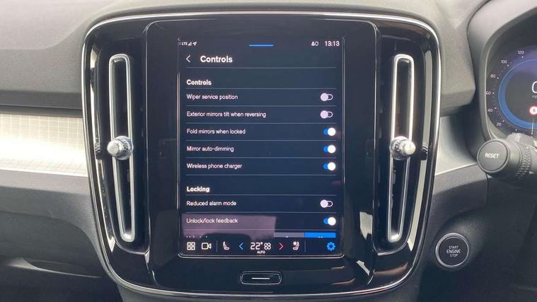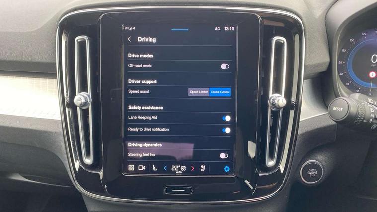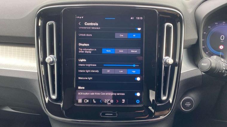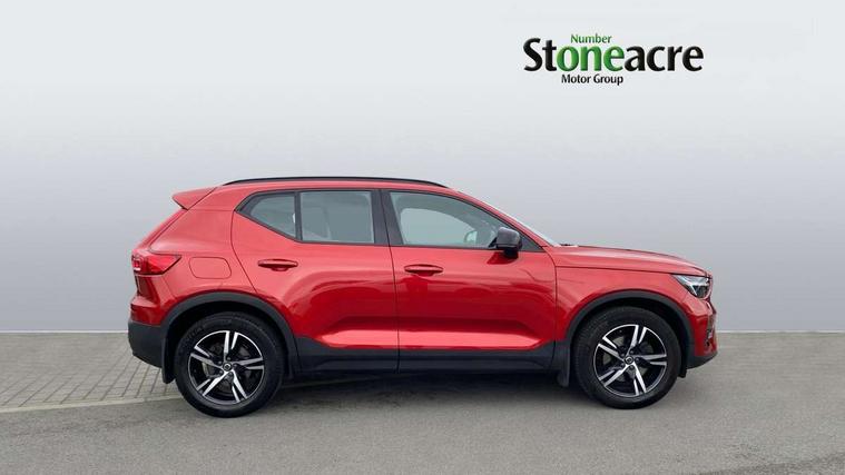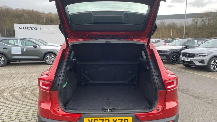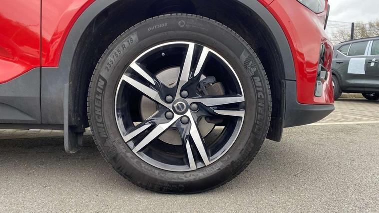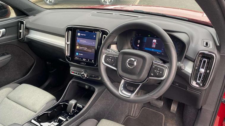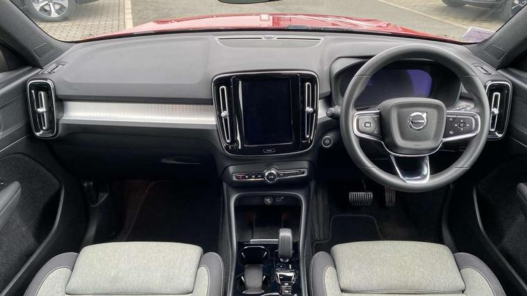 12.3" Progressive Driver Display, 9" centre console portrait touch screen, Adjustable steering wheel force, Bluetooth hands free telephone kit, Cruise control, Driver awareness - blind spot information system with steer assist, cross traffic alert with autobrake, rear collision warning and migitation, E-call, Front park assist, Google automatic services - Nav with google maps, apple carplay/android auto, voice recognition with google assistant, Hands free power tailgate, Lane keep assist with driver alert control, Oncoming Lane Mitigation, Rear park assist, Rear park assist camera, Speed limiter, Speed sensitive steering, Wireless/Inductive Mobile Phone Charging, Dynamic chassis, DAB Digital radio, High performance sound, 8 speakers/250W, front USB and 2 rear type C USB, Steering wheel mounted remote controls, Adaptive brake lights with high level LED brake lights, Auto dimming feature for exterior door mirrors, Auto dimming interior mirror, Automatic headlamp levelling, Automatic LED Headlights + Active high beam incorporating daytime running lights, Front aluminium tread plates, Front and rear electric windows, High gloss black front and rear skid plate, High gloss black mesh front grille with high gloss black surround, High gloss black window trim, Home safe and approach lighting, Integrated roof rails in high gloss black, LED front fog lights, Puddle lights, Rain sensor with automatic windscreen wiper activation, Rear side wing doors, Rear wiper, Roof antenna, Roof spoiler, Visible VIN plate, 12V socket in front tunnel console and luggage compartment, 2-Zone electronic climate control with CleanZone air quality system and pollen filter, 3 seat bench in 2nd row, 3 Spoke tailored steering wheel with chrome trim, 60/40 versatile split folding rear seat, A-pillar parking ticket holder, Ambient front door and instrumental panel lighting, Centre console cupholders and storage, Flexible load floor and grocery bag holder, Floor mats, Front door pocket and front cupholder illumination, Front footwell illumination, Front headrests, Front reading light and theatre lighting, Front seat cushion extensions, Front tunnel pocket, Glovebox bag hook, Heated front seats, Height adjustable passenger seat, Height/reach adjustable steering column, High gloss centre tunnel deco, Illuminated glovebox, Illuminated luggage compartment, Illuminated tailgate, Illuminated vanity mirrors, Integrated waste bin, Isofix attachments on outer rear seats, Load protection net, Multi directional lumbar support, Power driver seat with memory + exterior mirrors memory, Rear armrest / integral cup holders / storage tray, Rear headrests, Rear reading and courtesy lights, Single front passenger seat, Underfloor cargo storage, Climate pack without heated front seats - XC40, 3x3 point rear seatbelts, City safety with steering support with Pedestrian + cyclist + front collision warning with full auto brake and rear auto brake, Drivers knee airbag, Dual stage driver/passenger airbags, Electronic parking brake with auto hold, First aid kit, Front and outer rear seatbelt reminder and pretensioners, Front seats SIPS airbags, Hill descent control, Hill start assist, Inflatable curtain, Passenger airbag cut-off device, Power child locks on rear doors, Road sign information display, Run off Road Mitigation, Run off Road Protection, SIPS (Side Impact Protection System), Slippery road and hazard light alert, Stability and Traction Control with Spin control, Engine Drag Control and Corner Traction Control, Tyre pressure monitoring system, Vehicle deceleration control with Anti-lock Brake System, Electronic Brake Distribution and Emergency Brake Assist, Warning triangle, WHIPS whiplash protection system - front, Anti-theft alarm including immobiliser/volume sensor + level sensor, Key integrated remote control central locking + fuel flap with deadlocking system and auto open/close power windows, Keyless drive includes keyless entry and keyless start, Locking wheel nuts,