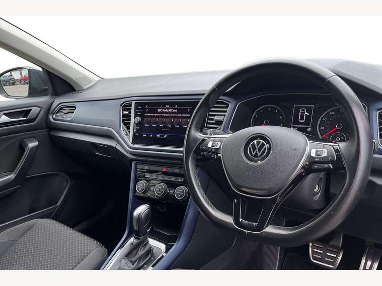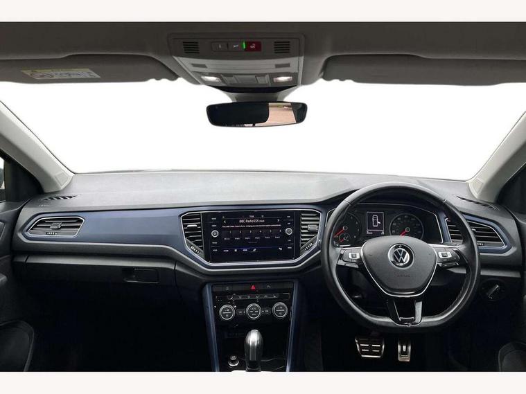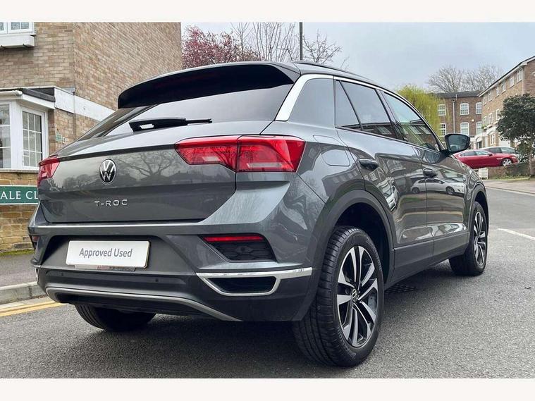 App-Connect, 'Lights On' Reminder warning buzzer, Adaptive cruise control with front assist, radar sensor controlled distance monitoring, city emergency braking, Automatic start/stop system, Bluetooth telephone and audio connection for compatible devices, Car information display, Driver tips and journey analysis, Dusk sensor, Emergency call service, Lane assist with warning text instrument cluster, Modified key software - reduce switch off time for key status change to Long no motion, Multifunction computer with visual gear change recommendation for fuel consumption, Power assisted speed sensitive steering, Ready 2 Discover system with 8" display including streaming and internet, Service interval indicator, Think blue trainer driver tips and journey analysis, Ultrasonic front and rear optical and audible parking sensors, Voice activation, Warning sound and light for doors and tailgate open, Warning sound and light for front seatbelts unfastened, Wireless app connect for apple carPlay, Battery regeneration during braking, 4 X 20 watt output, Centre arm rest including USB type C interface and USB charging socket, DAB Digital radio, Diversity antenna for FM reception, Front and rear 6 speakers, Front USB type C Interface 2X and USB charging socket, Multi device interface (MDI) with USB connection, Music playback - MP3, WMA and AAC files, Premium USB cable in choice of either Apple or Android smartphone compatibility, SD card slot, Simultaneous pairing of 2 compatible mobile devices, Single CD player, glovebox mounted, SMS functionality - read, compose and send SMS messages using touch-screen display, Title and cover art display, Auto dimming interior rear view mirror, Automatic hazard lights activation under emergency braking, Black grained lower door protectors, Black grained wheel arches, Black roof rails, Body colour door handles, Body coloured bumpers, Body coloured door mirrors with integrated indicators, Chrome plated radiator grille inserts, air vent surrounds and light switch surrounds, Darkened 65% privacy glass in side and rear window, Electrically foldable, adjustable and heated door mirrors with puddle lights and reverse activated kerb-view adjustment on passenger's door mirror, Front and rear electric windows, Front fog lights with static cornering function, Front windscreen wiper with intermittent wipe and 4 position delay, Fully galvanised body, Halogen headlights, range adjustable via infotainment system with automatic headlight activation and separate LED daytime running lights, Heated rear window, High level 3rd brake light, LED rear number plate lights, Manual coming/automatic leaving home lighting function, Rain sensor, Rear wash/wipe with intermittent wipe setting, United badge on B-pillar, United logo projection, Volkswagen roundel, 12V socket in centre console storage area, 3 rear head restraints, 4 load lashing points in luggage compartment, Brushed stainless steel pedals, Climate control - 2 zone electronic air conditioning with automatic air recirculation and allergy filter, Drawer under drivers seat, Front + rear carpet mats, Front centre armrest with storage compartment, longitudinal and height adjustable and two rear air vents, Front comfort seats with manual height adjustment, Front cupholders x 2, Front seat back storage pockets, Glovebox, Height adjustable front seats, Height/reach adjust steering wheel, Illuminated vanity mirrors, Instrument lighting, white adjustable panel illumination, Isofix easy fit child seat preparation for 2 outer rear seats, LED interior light with switch off delay/dimmer and 2 front/rear LED reading lights, Load through provision with single cup holder when folded down, Luggage compartment cover, removable, Luggage compartment lighting, Split folding rear seat backrests with centre armrest, Storage compartment in left and right luggage area, Storage compartment in rear doors, Storage compartments in driver and front passenger doors, Three spoke multi-function leather trimmed steering wheel and gearknob, United cuzo cloth upholstery, United door sills, White ambient lighting, Winter pack - T-Roc, 3 rear three point seatbelts, ABS, Curtain airbags, Driver and front passenger safety-optimised head restraints, Drivers and front passengers airbags with passengers deactivation switch, Drivers seatbelt reminder, Electronic parking brake with auto hold, Electronic stability control (ESC) includes ASR, EDL, EDTC and trailer stabilisation function, Front seat side impact airbags, Predictive pedestrian protection, Rigid safety cell with front and rear crumple zones, Three point height adjust front seatbelts + pretensioners, Tyre pressure loss indicator, Ventilated front and rear disc brakes, Volkswagen roadside assistance, Alarm with remote central locking and interior protection, Electronic engine immobiliser, Remote central locking with 2 remote folding keys, Remote tailgate unlocking using key fob, Altantic blue united decorative inserts, 17" Dublin alloy wheels in black high sheen finish with anti theft wheel bolts, Tyre mobility set,