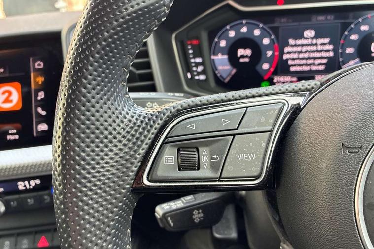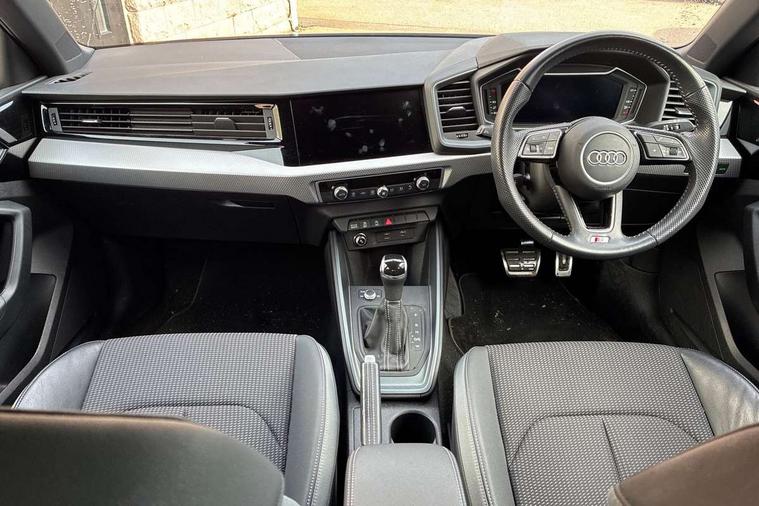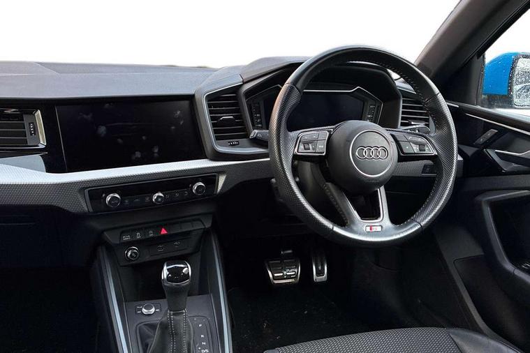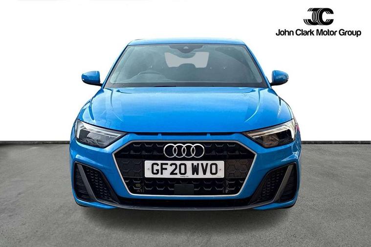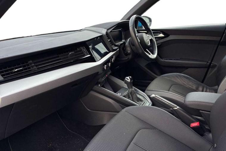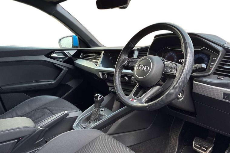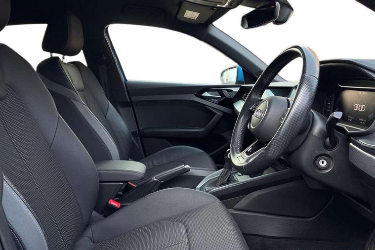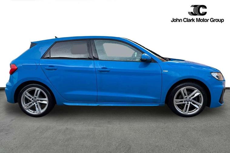 10.25" Digital instrument cluster display classis style instrument dials + speed, odometer, time, outside temperature, telephone menu + fuel level warning, Audi connect safety emergency and service including E-call, Audi drive select - power steering assistance + engine + gear shift 3 preset modes (auto, dynamic, efficiency and an Individual mode), Audi smartphone interface with connect compatible smartphone via USB directly MMI display + Nav, music, third party apps controlled via MMI controller, Automatic start/stop system, Bluetooth interface, Cruise control, Driver's information system, Electromechanical power steering, Lane departure warning system, Rear parking sensor, Service interval indicator, Speed limiter, Voice control system, Washer fluid level indicator, Sports suspension, 1 x SDXC card reader, 1 x USB type C and 1 USB type A charging points, DAB Digital radio, MMI radio plus with 8.8" colour MMI display screen and MMI touch, Auto dimming rear view mirror, Body coloured door mirrors, Door sills with aluminium inlays and S Line logo, Electric front and rear windows, Electrically adjustable, heated, folding door mirrors with integrated LED side indicator, Front side air inlets in grained matt black and C frame in titanium black, Heat insulating glass windscreen and side windows, Heated rear windscreen, LED headlights with LED rear lights + dynamic rear indicators + headlight adjustment and high beam, turning light + LED daytime running lights, Radiator grille and rear diffuser in matt titanium black, Radiator protective grille frame in matt aluminium silver, Rain and light sensors, Rear fog lights, Rear wiper, S line badges on front wings, Side front spoiler lips in grained matt black, 12V socket in centre console with two cup holders, 3 rear seats with headrests, 40:60 Split folding rear seat or folded fully, Black cloth headlining, Driver and passenger seat with manual height adjust with forward and backwards adjustment, Front and rear black floor mats with contrast stitching in fine silver, Front head restraints, Height and reach adjustable steering wheel, ISOFIX child seat mounting for front passenger and outer rear seats including top tether attachment point of outer rear seats, Leather gear knob with aluminium trim, Luggage compartment light with front and rear reading lights, Manually adjustable lumbar support in front seats, Stainless steel pedals, LED interior lighting pack - A1, Luggage compartment pack - A1, S line exterior styling pack - A1 Sportback, 3x3 point rear seatbelts, Audi pre-sense front with pedestrain and cyclist recognition, Brake assist function, Driver and front passenger airbag with front side and head airbags, Electronic Stability Control including ABS, EBD, ASR and EDL, Front and rear seatbelt reminder, Front passenger airbag deactivation switch, Hill hold assist, Seatbelt height adjustment for front seats, Seatbelt monitoring, Tyre pressure warning light, Warning triangle and first aid kit, Anti theft alarm, Anti theft wheel bolts and loose wheel warning, Immobiliser, Remote central locking with 2 foldaway keys, Aluminium trim for control switches, air vents and digital instrument cluster, Silver grey inlays polygon structure in diamond paint finish, Structured grey accent areas including air vents, door handle recesses and centre console in quartz paint finish,
