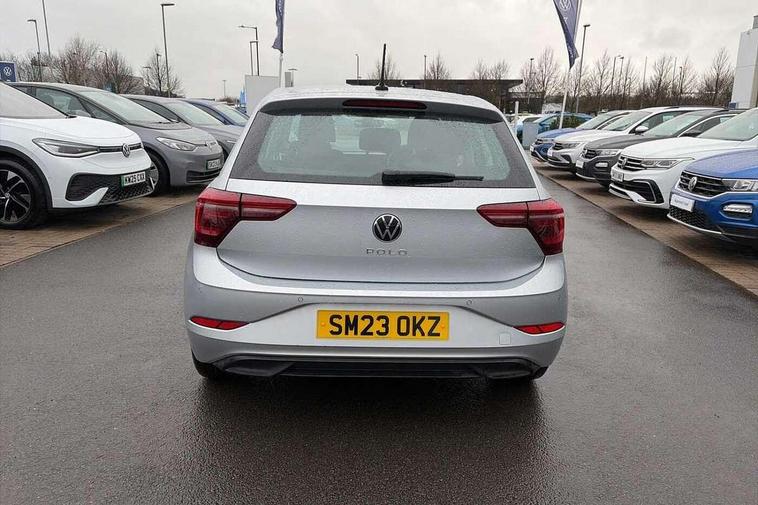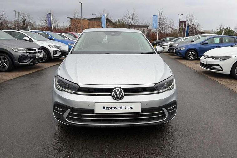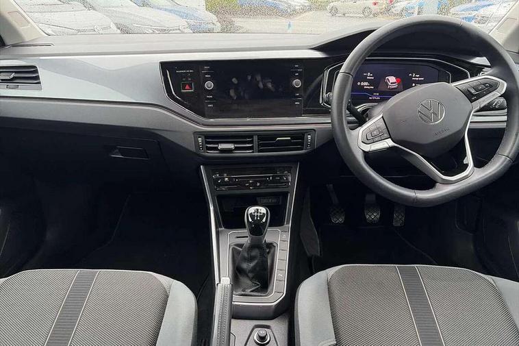 Adaptive cruise control without follow-to-stop and speed limiter, Bluetooth mobile phone interface, Digital Cockpit Pro with 10.25" Display, Driver alert system, Dynamic road sign display, Emergency call service, Power assisted speed sensitive steering, Preparation for We connect and We connect plus, Speedo and rev counter, electronic odometer, trip, service interval display and fuel gauge, Standard rear axle, Travel Assist - Lane keeping system and traffic jam assist, Travel assist including emergency assist, Trip computer, Warning signal and warning light for front and rear seatbelts not fastened, Washer fluid level indicator, Wireless app connect, Front wheel drive, Rear shock absorpion, Start-stop system with battery regeneration (recuperation - energy recovery during braking), DAB Digital radio, Diversity antenna for FM reception, Front and rear 6 speakers, Automatic dimming interior rear view mirror, Automatic headlights, Body colour door handles, Body coloured bumpers and radiator grille with chrome trims, Electric front windows, Heat insulating darkened glass in side and rear windows, Heat insulating glass windscreen, LED separate daytime running lights with coming/leaving home function, Power folding adjustable/heated exterior mirrors and front passenger exterior mirror lowering function, Rain sensor, Rear electric windows, Rear fog light, Rear side wing doors, Rear windscreen washer and wiper with interval delay, Third brake light, 12V power socket in centre console, 2 USB-C ports in the front, 2 USB-C charging sockets on the center console in the rear, 3 rear head restraints, 60/40 split folding rear seat and rear seat bench not split, Air care climatronic air conditoning system with active combination filter and 2-zone temperature control, Ambient lighting, Chrome plated radiator grille inserts, air vent surrounds and light switch surrounds, Door and side trim panel, Driver and front passenger seat height adjustment, Driver/passenger sunvisors with illuminated vanity mirrors, Front + rear carpet mats in recycled material, Front centre armrest, Front footwell illumination, Front seat backrest storage pockets, Front sports comfort seats, Handbrake lever handle in leather, Headliner in recycled material, Isofix child seat preparation easy-fit (for two outer rear seats, and front passenger seat) compatible with I-size, Leather trimmed gear knob, LED interior light with switch off delay and dimmer, 2 reading lights front and rear, Luggage compartment cover, Luggage compartment floor, Luggage compartment lighting, Lumbar adjustment for front seats, Multifunction steering wheel, Single front passenger seat, Standard pedal cluster, IQ LED matrix headlights pack - Polo, Light and vision pack - Polo, 3 point height adj front seatbelts + pretensioners, 3x3 point rear seatbelts, ABS, Driver and front passenger airbag with front passenger airbag deactivation, Drivers and front passengers safety optimised head restraints, ESC (Electronic stability control) + EDL (Electronic Differntial lock) and ASR (Traction control), Extended and predictive pedestrian/ cyclist protection, Front curtain and side airbags with center airbag, Front disc brakes, Hill hold control, Manual child lock in rear doors, Rear drum brakes, Single tone horn, Tyre pressure loss indicator, Alarm with interior protection, Anti-theft alarm system with interior monitoring, backup horn, and towing protection, Anti-theft wheel bolts, Electronic engine immobiliser, Chrome applications on rotary light, mirror adjustment, window regulator switches, outlet with frame in black, Low rolling resistance tyres,