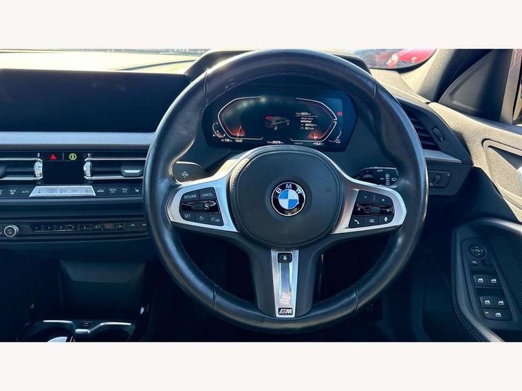 Active guard plus, Attentiveness assist, BMW ConnectedDrive online services, BMW Teleservices, Check Control warning system for monitoring of lights and door/luggage compartment open warning, Cruise control with speed limiter, Eco pro mode, Front axle single joint with specific axle kinematics to minimise drive influences on steering + provide increased rigidity agile driving behaviour, Integrated owners handbook, Lane departure warning system, Oil sensor for level and grade, On board computer, Optimum shift indicator, Personal Profile, Pull away assistant, Rigidly mounted rear subframe - Multi link construction with separate spring / damper configuration and excellent driving characteristics, Speed limit Info including no-overtaking indicator, Aluminium lightweight construction, Anti roll bar front and rear, Balancer shaft, Double VANOS twin scroll turbocharging system, Drive Performance Control, Electronic differential lock, High precision injection, M sport suspension, Petrol Particulate Filter, Twin tube gas filled shock absorbers with degressive characteristic curve, VALVETRONIC engine management, DAB Digital radio, Auto dimming rear view mirror, Automatic headlight beam throw control, Automatic windscreen wipers and automatic headlight, Body colour door handles, Body colour mirror caps, Body colour roof trims, Chrome 'M' logo side designation, Chrome exhaust twin tailpipes round 90mm in left, Chrome kidney grille frame with Satin Aluminium struts, Direction indicator side lights in exterior mirrors, Electrically adjustable exterior mirror with mirror adjustment switch on drivers armrest and aspheric on driver side, convex on passenger side, Fading support, Folding side mirrors with auto dimming/folding wing mirrors with auto dimming, Follow me home headlights, Front and rear bumper system with replaceable deformation elements, Front and rear electric windows with open and close fingertip control, anti trap facility and comfort closing, Front door sill finishers in black plastic with M designation in metallic look, Green tinted heat protection glazing, High gloss shadowline window frame, Recess cover mirror frames and B/C pillar embelisher trim, High level third brake light, Integrated front windscreen with washer jets, LED daytime running lights, LED eyebrow turn indicators, LED front fog lights, Lightweight engineering, Matt black air guide grilles, Matt black wheel arch trim, Model designation on electric bootlid, Nearside reverse light in rear light cluster, Preparation for high beam assistant, Rear fog lights, Rear side wing doors, Rear window wiper, Shark fin antenna, Trailer stabilisation logic, Visible VIN plate, Welcome lighting, 12V power socket in front centre console with blanking plug, 3 rear seat head restraints, 3 seat bench in 2nd row, 3 spoke sports leather steering wheel with black leather and stitching, pearl chrome decorative finish, specific M Badge, Anthracite headlining, Black boot net with lashing eyes, Cargo function on 2nd seat row, Child seat ISOFIX attachment for two outer rear seats and front passenger seat with anchorage points, Conditioned based service, Driver and front passenger backrest net on rear, Driver and front passenger seat heating, Driver side folding compartment in instrument panel, Folding rear clothes hook, Four grab handles integrated in roof lining, Front and rear door pockets with bottle holders, Front and rear side armrest integrated into door trim, Front armrest, Front sports seats, Glove compartment, Height adjustable front head restraints, Luggage compartment for bag hooks on left and right, foldable luggage compartment liner and four lashing eyelets, Manual adjust steering wheel, Multi-function controls for steering wheel, Single front passenger seat, Storage compartment in centre console, Storage compartment in luggage compartment, Stowage of the parcel shelf in luggage compartment trim, Sun visors with vanity mirrors and insert tab, Two front centre console cupholders, Two zone automatic air conditioning, Type C two USB ports in rear centre console, Velour floor mats, Additional interior lighting pack - 1 Series, BMW live cockpit professional pack- 1 Series, Connected pack professional - 1 Series, Interior lights pack - 1 Series, M Sport exterior styling aerodynamics pack - 1 Series, 2 tone horn, 3 point seatbelts on all seats, front pyrotechnic belt tensioners, stopper and belt force limiters, rear coded belt buckles, Airbags - Front driver/passenger, front and rear curtain head protection, front side, manual deactivation of front passenger airbag, Anti lock braking system (ABS) with brake assist, BMW emergency call, Brake drying, Braking readiness, Child proof locking system in rear door, City braking function, Comfort modes, Cornering brake control, Crash sensor activating of airbags, Unlocking doors, hazard warning lights, interior light, safety battery terminal, Driver and front passenger seat belt security check, Dynamic stability control + (DSC+), Dynamic Traction Control - DTC, Electrically operated hand brake including automatic hold function, Front and rear disc brakes, Seatbelt warning, Side impact protection, Tyre pressure monitoring system, Warning triangle and first aid kit, Central locking switch for all doors, fuel filler cap and luggage compartment, Deadlocking function system to all doors, Drive away locking system on all doors and luggage compartment with de-activated in iDrive settings, Locking wheel bolts, Remote control with integrated key with High-gloss Black inlay and M designation and 1 button for open/ close lock, window, open luggage compartment, Start/stop button illuminated in centre console with keyless engine start and auto start stop deactivation button, Thatcham Cat.1 alarm and immobiliser, Wheel slip limitation close to the actuator (ARB), Contrast stitching on instrument panel, 18" Burnished M double spoke bi-colour alloy wheels finished in orbit grey - style 819M, Electrically powered 12V com