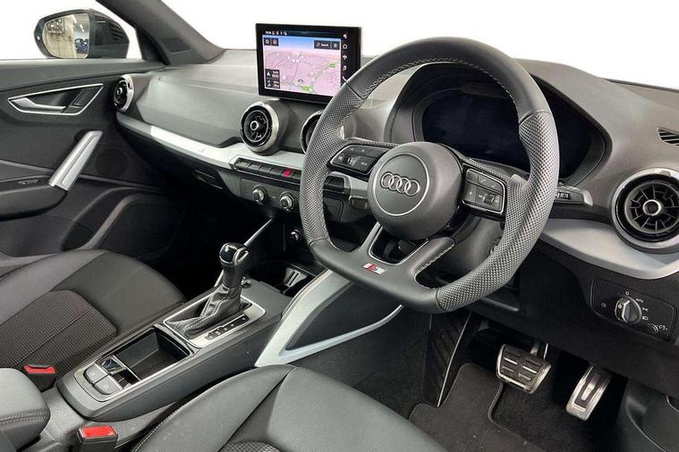 3D map display, Audi connect navigation and infotainment includes innovative services, Audi connect remote and control connects your vehicle to your smartphone, Audi drive select: S tronic - power steering assistance + engine + gearshift (modes: comfort, auto, dynamic, efficiency, individual), Audi smartphone interface - Apple carplay/Android Auto, USB connect, 2xSDXC card readers, voice control for navi, telephone, music and 3rd party apps, Audi virtual cockpit, Automatic start/stop system with recuperation, Bluetooth interface includes bluetooth audio streaming, Camera based traffic sign recognition, Cruise control, Distraction and Fatigue warning, E-call, Jukebox hard drive memory for music (10GB), Lane departure warning, MMI navigation plus with 8.8" touchscreen, Natural voice recognition, Power operated tailgate, Progressive steering, Rear parking sensors, Sport suspension, 6 passive loudspeakers, DAB Digital radio, USB type C port, Audi beam, Auto dimming rear view mirror, Black window trims, Bumper in full body colour paint finish, Electrically adjustable, folding, auto dimming and heated door mirrors with integrated LED side indicators, Front windscreen with grey tinted sunband, LED daytime running lights, LED headlights with dipped beam, high beam, position lights, indicators, LED rear lights, LED third brake light, Privacy glass - dark tinted rear and rear side windows from B-pillar backwards, Rear side wing doors, Rear wiper, Variable front intermittent wipers, Wheel arch trims in manhattan grey, 12V socket in front, 3 seat bench in 2nd row, 3 spoke flat bottomed multi-function leather sport steering wheel with gear shift paddles, 4-way electric lumbar support for front seats including manual seat height adjustment for both front seats, 60/40 split folding rear seat bench, Black carpets, Black cloth headlining, Front and rear head restraints, Front centre armrest, Front sport seats, Front/rear floor mats, Height/reach adjust steering wheel, Illuminated door sill trims with S logo, ISOFIX child seat mounting in front passenger and rear outer seats, Manual air conditioning, Single front passenger seat, Stainless steel pedals, Black styling pack - Q2, 3x3 point rear seatbelts, 6 airbags - Front, curtain and front side airbags, Electromechanical parking brake, Electronic stabilisation control including ABS, ASR and EDL, Front passenger airbag deactivation, Hill hold assist, Pre-sense front with pedestrian recognition, Seatbelt monitoring, Tyre pressure warning light with visual and acoustic warning, Warning triangle and first aid kit, Anti theft wheel bolts, Electronically operated child locks, Remote central door locking, Thatcham category 1 alarm, Aluminium interior element, Black dashboard, Gloss black centre console, Matt brushed aluminium trim inlays, Tool kit,