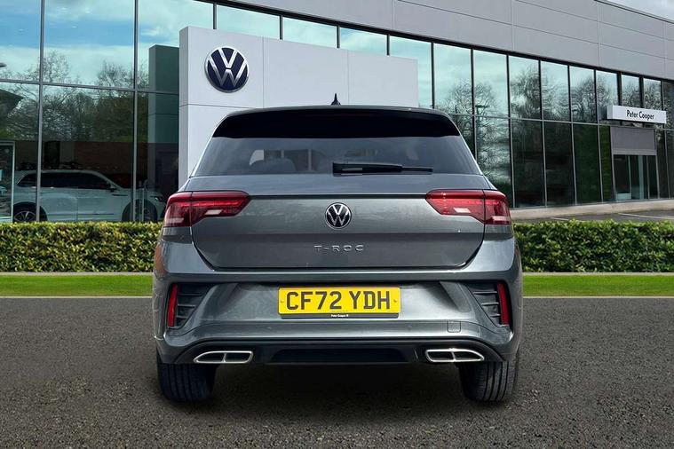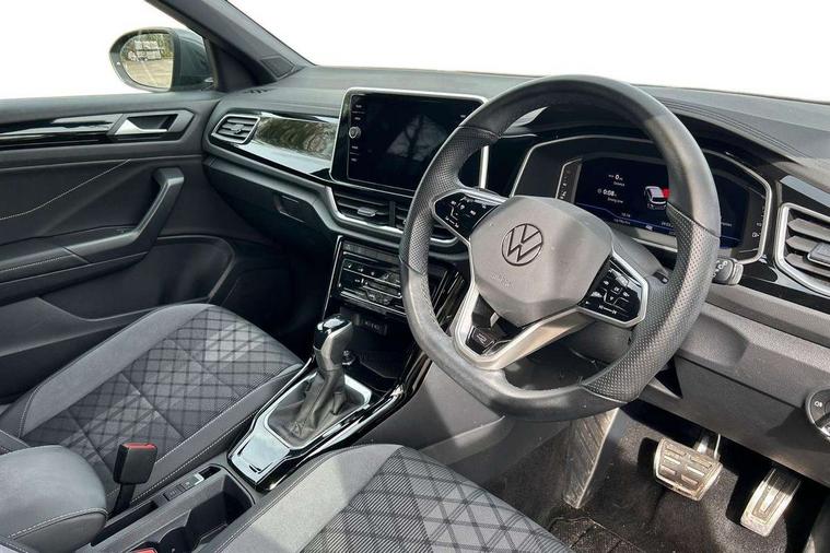 10.25" Digital cockpit pro, Bluetooth mobile phone interface, Driver alert system with fatigue detection, Driver tips and journey analysis, Emergency call service, Lane keeping system Lane Assist, Modified key software - reduce switch off time for key status change to Long no motion, Online services, Park assist including front and rear parking sensors, Service interval indicator, Tailgate/trunk lid release from outside, Think blue trainer driver tips and journey analysis, Warning sound and light for front seatbelts unfastened, Wireless app connect, Battery regeneration during braking, Start/stop function with battery regeneration, Diversity antenna for FM reception, Front and rear 6 speakers, Music playback - MP3, WMA and AAC files, Premium USB cable in choice of either Apple or Android smartphone compatibility, SD card slot, Simultaneous pairing of 2 compatible mobile devices, Title and cover art display, We Connect and We Connect Plus functionality, 3rd brake light, Auto dimming interior rear view mirror, Automatic hazard lights activation under emergency braking, Automatic headlight control with LED separate daytime running lights with coming/leaving home function, Extended roof spoiler, Exterior mirrors aspherical on driver side, convex on front passenger side, External USB type C socket and charging sockets, Front windscreen wiper with intermittent wipe and 4 position delay, Heated rear window, LED Plus headlamps, LED rear combination lamps, LED rear number plate lights, LED tail lamp rear comination lamps, Power windows with comfort operation and circuit breaker, R-Line design body coloured bumpers, Rain sensor, Rear exhaust tailpipe, Rear fog light on one side and reversing lights on both sides, Rear side wing doors, Rear wash/wipe with intermittent wipe setting, Remote electrically foldable door mirrors, puddle lights and reverse activated passenger's door mirror, 12V power socket in centre console, 3 rear head restraints, 3 seat bench in 2nd row, 4 load lashing points in luggage compartment, Air care climatronic air conditoning system with active combination filter and 2-zone temperature control, Black roof lining, Chrome plated radiator grille inserts, air vent surrounds and light switch surrounds, Door and side trim panel with leatherette insert, Drawer under drivers seat, Front + rear carpet mats, Front centre armrest, Front cupholders x 2, Front footwell illumination, Front reading light, Front scuff plates with R logo, Instrument lighting, white adjustable panel illumination, Interior ambient lighting and surround lighting, Interior light delay, Isofix child seat preparation, Leather gearshift handle, Load-through provision with cup holder when folded down ('Unsplit rear seat bench, split folding backrest, with centre armrest), Luggage compartment lighting, Single front passenger seat, Stainless steel pedals, Storage compartment in left and right luggage area, Storage compartment in rear doors, Storage compartments in driver and front passenger doors, Sunvisors with illuminated vanity mirrors, Variable boot floor, height adjustable and removable, Driver assistance pack without proactive passenger protection - T-Roc, 3 point height adj front seatbelts + pretensioners, 3 point seatbelts in outer rear with ECE label, ABS, Child locks on rear doors, Driver and front passenger airbag with front passenger airbag deactivation, Driver and front passenger safety-optimised head restraints, Drivers seatbelt reminder, Electronic parking brake, Electronic Stability Control (ESC) inc EDL (Electronic Differential Lock) and ASR (Traction Control), Front and rear passengers curtain airbag system including front side airbags, Front assist with city emergency braking and pedestrian monitoring, Front seat side impact airbags, Hill start assist, Predictive pedestrian protection, Rear disc brakes, Single tone horn, Tyre pressure loss indicator, Volkswagen roadside assistance, Alarm with interior protection, Anti-theft alarm system with interior monitoring, backup horn, and towing protection, Remote central locking with SAFELOCK, radio remote control with 2 remote control folding keys, Trims for alloy wheels,
