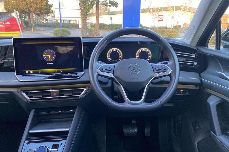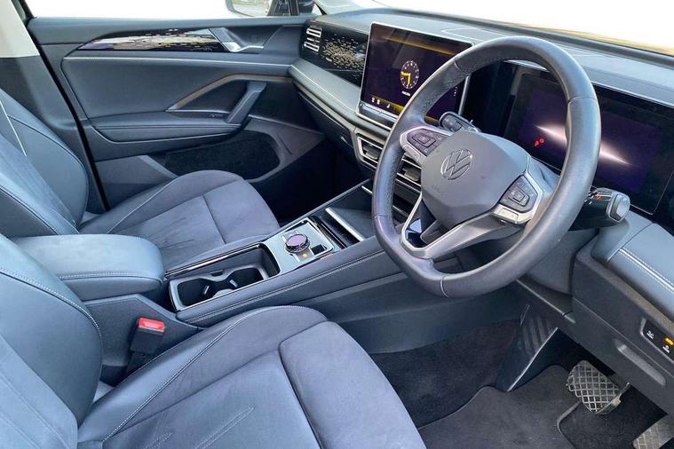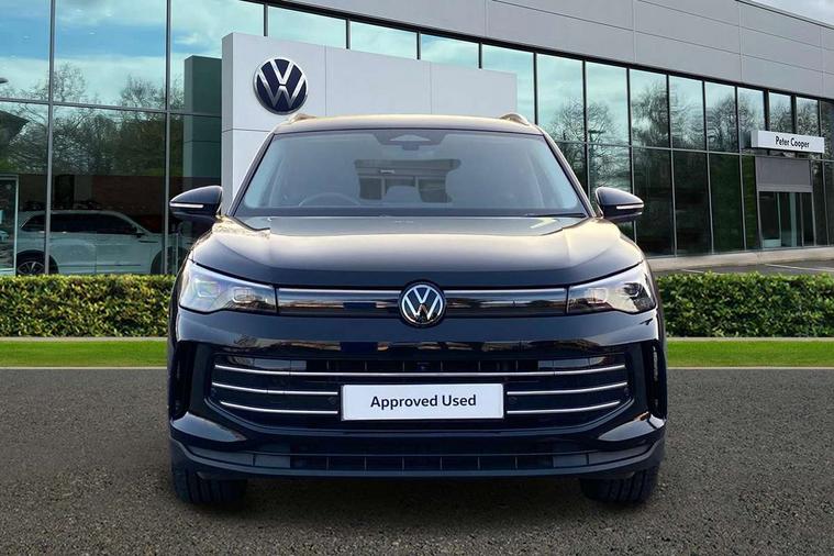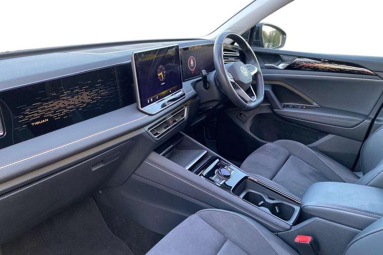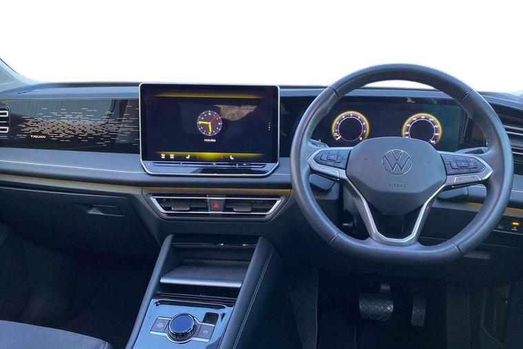 Adaptive cruise control (ACC), Advanced driver attention and drowsiness monitor, Bluetooth mobile phone interface, Comfort drive travel assist, lane keeping system, lane assist and emergency assist, Digital Cockpit Pro - 10.25" high resolution dash display screen with customisable menus and information, Dynamic road sign display, E-Sim card for online connectivity, eCall emergency call service, Front Assist - Autonomous emergency braking with pedestrian and cyclist monitoring, Lane change system, Side assist, Rear traffic alert and Exit warning system, Multifunction front facing camera, Oncoming vehicle braking when turning including swerve support, Park assistance plus with front and rear parking sensors, Power assisted steering with speed sensitive, Start/stop system with regenerative braking, Warning signal and warning light for front and rear seatbelts not fastened, Wireless App-Connect, Front wheel drive, Digital radio reception (DAB), Diversity antenna for FM reception, Ambient lighting with logo projection, Auto dimming interior rear view mirror, Automatic headlight control system, Body colored bumpers in R-Line style, Body coloured door handles, Body-coloured exterior mirror housings, Chrome moldings on the side windows, Coming/leaving home lighting function, Heat insulating glass in side and rear windows, Heated rear window, Heated windscreen washer jets, High level 3rd brake light, Illuminated door handle recesses, Illuminated lightline between headlamps, Laminated safety glass from B-pillar backwards 90% tinted, Laminated safety glass windshield, Rain sensor windscreen wipers, Rear fog light on one side, reversing light on both sides, Rear side wing doors, Rear wiper, Silver roof rails, 12V outlet in center console rear and in luggage compartment, 12V socket in centre console, 3 bench rear seats in 2nd row, Air care climatronic 3 zone air conditioning system with rear air conditioning control panel, Carpet mats, front and rear, Centre console with illuminated storage compartment with sliding cover and two drinks holders, Ceramique headlining, Chrome elements on the mirror switch and power window switches and door pulls, Door and side trim panel with leatherette insert, Door sill protectors, Front centre armrest, Interior ambient lighting with 30 colour options, ISOFIX anchors for child seats on outer rear seats and front passenger seat compatible with i-Size, Mechanical rear seat release, Power adjustable lumbar support in front, Rear bench seat, split folding, longitudinally movable and folding with load-through hatch and centre armrest, Safety optimised front head restraints, Single front passenger seat, Sports comfort seats in front, Sun visors with illuminated vanity mirrors, Three rear head restraints, Variable luggage compartment floor, Comfort package incl. Memory feature for Park assist and Safelock - Tiguan, Driver assistance package - Tiguan, 3 point seat belt for centre rear seats, 3 Point seat belts in front with pretensioners, 3 point seatbelts in outer rear with ECE label, Driver and front passenger airbag with front passenger airbag deactivation, Electronic parking brake with auto hold, Front and rear curtain airbags, Front and rear side airbags, Front centre airbag, Front disc brakes, Manual child proof rear door locks, Rear disc brakes, Two tone horn, Warning triangle, Anti theft wheel bolts, Decorative inserts Cross in dash and front door panels, Interior door handle in matte chrome, Soul instrument panel,