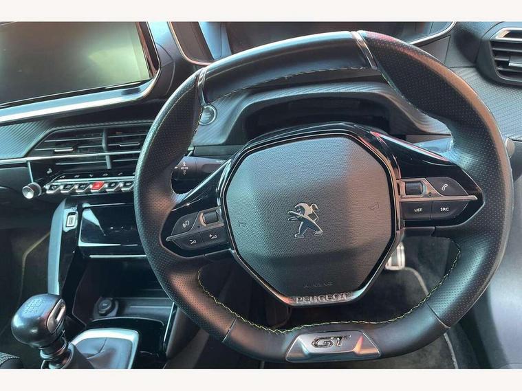 Blind spot monitoring, Bluetooth telephone facility, Connected 3D navigation, Driver attention warning, Exterior temperature indicator with ice warning, Front and rear parking sensors, Lane keep assist, Mirror screen with mirror link, apple carplay and android auto, Multi function trip computer, PEUGEOT i-Cockpit with 10" capacitive colour touchscreen, PEUGEOT i-Cockpit with compact steering wheel, PEUGEOT i-Cockpit with configurable 3D headup instrument panel, PEUGEOT SOS and assistance, Smart phone docking station, Smartphone charging plate, Speed limit recognition and recommendation, Visio Park 1 with 180 degree Colour reversing camera, 2 front USB socket with USB-C, 2 USB sockets in rear, DAB Radio (Digital Audio Broadcasting), Voice recognition for radio, navigation and telephony features, 2 X Rear number plate lights, Automatic front windscreen wipers, Automatic hazard light activation upon heavy brake application, Black diamond roof, Black front wing trim with gloss black detail and GT badging, Body coloured exterior door handles, Chrome Lion Badge front and rear, Dark tinted rear side and tailgate windows, Diamond black mirror shells, Diamond black rear spoiler (roof), Electric, heated, and power folding door mirrors, Frameless electrochrome interior rear view mirror, Front bumper - Silver lower trim, Full LED headlights with smartbeam assist, Gloss black finish on B pillar, Gloss black longitudinal roof rails, Gloss black rear cluster connecting strip, Gloss black roof bars, Gloss black window surround, GT model designation badging on tailgate, Headlights left on audible warning, LED daytime running lights with 3 claw headlight with distinctive tooth design, LED side indicator lights integrated into door mirrors, LED third brake light, Model designation badges front and rear, One touch electric front/rear windows with pinch protection, Radiator grille - Dark chrome chequered and gloss black edge trim, Radiator grille - gloss black top edge trim, Rear full LED 3D peugeot signature claw effect lights with daylight function, Rear reversing lights, Rear side wing doors, Rear windscreen wiper triggered automatically in reverse gear, Stainless steel door sill scuff plates, Tailgate with heated rear windscreen and wiper blade, Twin chromed exhaust pipes, Welcome lighting, Wheel arch extensions, 1/3 to 2/3 split folding rear seats, 12V socket, 3 seat bench in 2nd row, 8 Colour personalisable ambient lighting, Aluminium pedals, Automatic air conditioning with pollen and active carbon filter, Central front armrest with storage compartment, Driver and front passenger sport seats, Electric power steering with reach and rake adjustable steering column, Front and rear carpet mats in black with lime green stitch detail, Front LED interior light with 2 reading spotlights and rear interior light with timer, Front passenger seat manual adjustment - height, longitudinal and back rest angle, Gear lever top - manual in full grain leather, Gear shift indicator, Heated front seats, High centre console, ISOFIX child seat mounting points on passenger seat, Lime green contrast stitching to front centre console, door panels and dashboard facia, Mistral full-grain perforated leather steering wheel with Lime Green stitch detail and satin chrome 'GT' emblem, Modular boot floor, Piano keys: Gloss black and chrome toggle switches to access main functions of the vehicle and touchscreen functions, Roof lining - Mistral black, Seatbelt unfastened on the move audible and visual alert for front and rear seats, Single front passenger seat, Switch for Push Button Start finished in black with chrome surround, Visibility pack - 2008, 2x 2nd row ISOFIX child seat mountings, ABS (Anti-lock Braking System) with EBD (Electronic Brakeforce Distribution) and EBA (Emergency Braking Assistance), Acoustic vehicle alerting system, Active safety brake with night function/cyclists/pedestrians, Adaptive driver and front passenger airbags with passenger airbag deactivation function, Child locking functionality on rear doors, Driver/front passenger side airbags, Electric parking brake, ESP (Electronic Stability Program) + Hill Start Assist, Front and rear curtain airbags, Front and rear disc brakes, Front and rear three-point retractable seatbelts, with force limiters, Front optimised safety headrests and rear retractable headrests (x3), height adjustable, Tyre pressure sensor, Alarm system with anti-lift sensor, Automatic door locking when moving off, Deadlocks, Electronic code immobiliser, Exterior door lock x1 (Left-hand or passenger’s side), Carbon effect Dashboard, front and rear door panel finish, 17" Salamanca diamond cut alloy wheels,