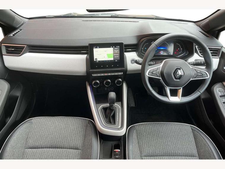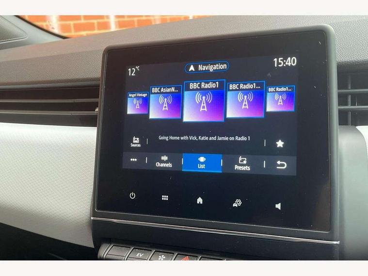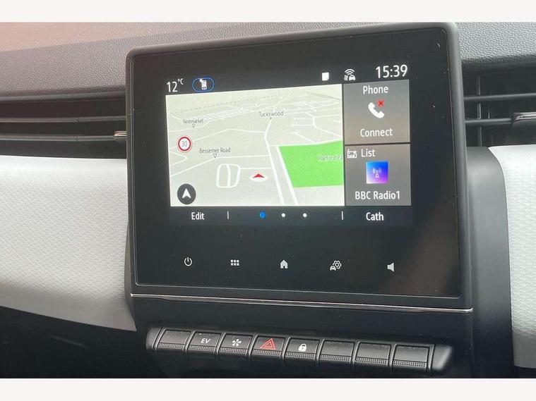 7" driver information display cluster, Apple car play/Android Auto, Cruise control + speed limiter, E-call, Easy link navigation with 7" touchscreen+4x20W amplifier+FM DAB double tuner, sound auditorium, 2xUSB/1xjack/bluetooth, smartphone integration plus, Eco mode driving function, Emergency call system, Front parking sensors, Gear change indicator, Lane departure warning system, Lane keep assist, Over speed prevention warning, Rear parking sensors, Rear view camera, Traffic sign recognition, Trip computer, Variable assistance electric PAS, Wireless phone charger, E-TECH battery, Auto dimming rear view mirror, Auto high beam assist, Auto light control and rain sensing wiper, Automatic headlights, Black wing mirrors, Body colour door handles, Body colour rear roof spoiler, Body coloured bumpers, Chrome front grille, Chrome insert on lower side doors with Clio embossing, Chrome side window surrounds, Drivers one touch window with anti-pinch feature, Electric front windows, Electric rear windows, Exterior rear hidden door handles, Extra tinted glass on rear windows + tailgate, Front and rear LED roof light x 2, Full LED front and rear headlamps integrating daytime running lights at the front and rear, Heated rear windscreen, LED front fog lights, LED reverse light, Manual folding wing mirror mechanism, Manually adjustable door mirrors, Rear fog lights, Rear side wing doors, Rear wiper, Shark fin antenna, Third brake light, Variable speed on front windscreen wipers, 12V Accessory socket, 3 rear height adjustable headrests, 3 seat bench in 2nd row, 3D Fabric velvet upholstery, 6.2L front glovebox, 60/40 split and fixed base rear seat bench, Air recirculation control, Auto climate control, Black headlining, Black hooks on boot floor x 4, Centre console with storage and armrest, Front cupholders, Front door storage bin, Grey dashboard and door panel, Height adjustable front headrests, Height/reach adjust steering wheel, Isofix system on outer rear seats, Luggage nets in boot, Matted grey interior roof lining and a pillar, Mechanical height adjustable front seats, Multi function steering wheel, Multisense including ambient lighting and selectable drive modes, Pollen filter, Single front passenger seat, Sun visor without light, Synthetic leather steering wheel, System for Restraint and Protection SRP-front seats, Vision grey interior detail includes light grey on doors, lower part of dash and gear stick, 3 point seatbelts on all rear seats, ABS, AEBS - active emergency braking system, BAS (Brake Assist System), Curtain airbags, Distance warning alert, Driver and passenger front and side airbag deactivation, Driver/Front Passenger airbags, Electronic parking brake with auto hold, ESC - Electronic Stability Control + traction control, Front side airbags(head+thorax), Height adjustable driver's seatbelt, Seatbelt warning, Tyre pressure warning, Deadlocking system, Hands free key card with push button, start and stop function, Locking fuel filler cap, RAID (Renault Anti-Intruder Device) with automatic door locking, Rear side wing door and window child locking function (front driver door control panel), Remote central locking with thatcham approved immobiliser, Grey dashboard trim, Upper dashboard soft covered with positive thermoforming type 2, 17" Viva stella diamond cut alloy with grey/black inserts,