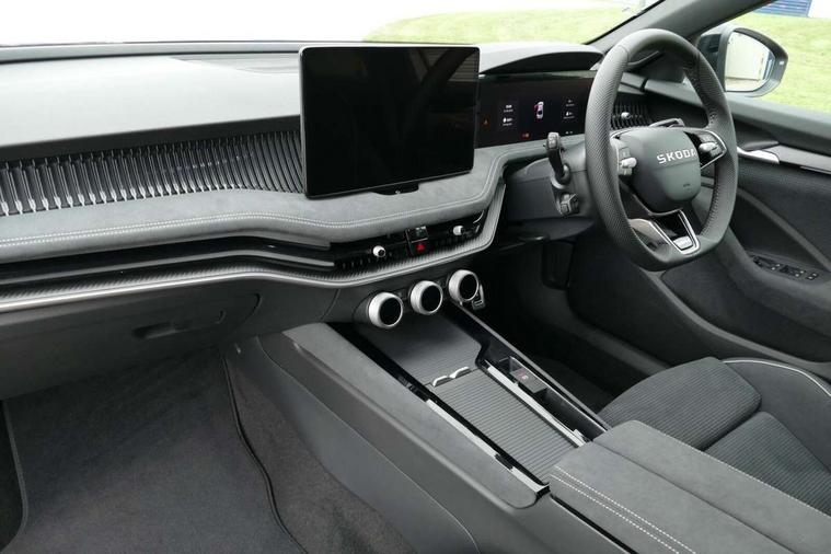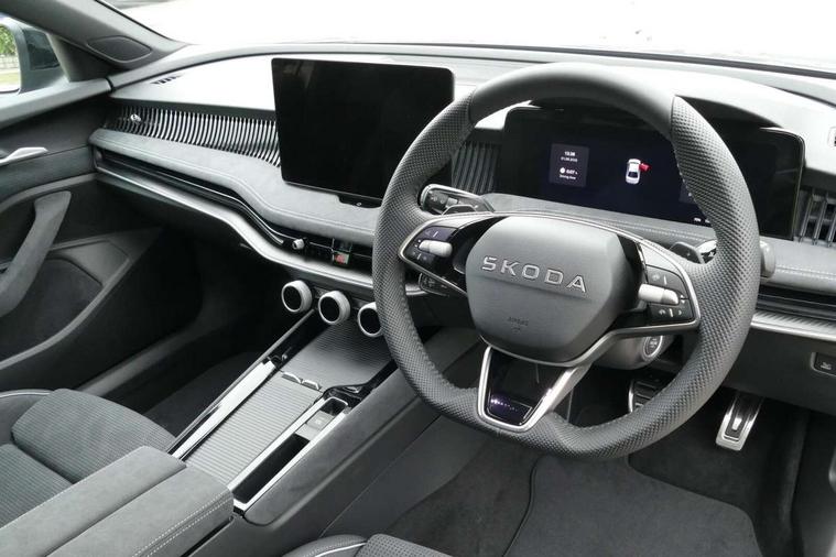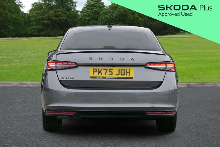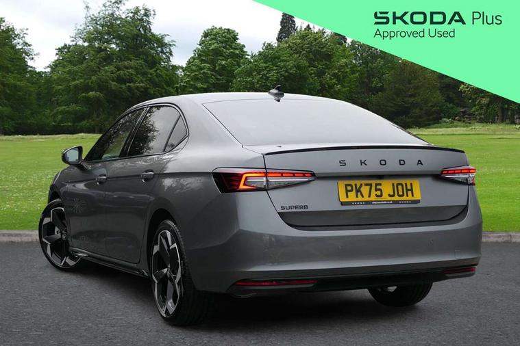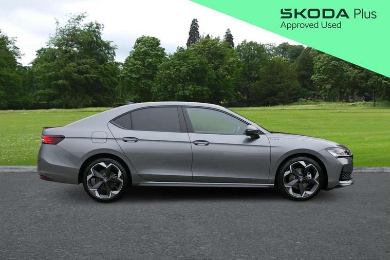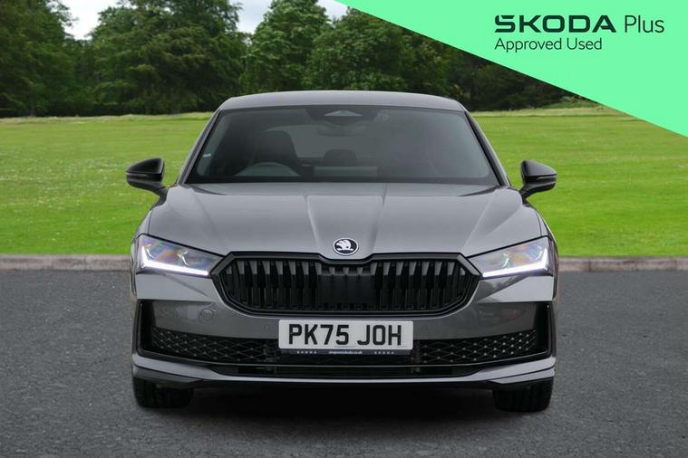 13" touchscreen display with satellite navigation, 4x USB-C ports (2x in front centre console and 2x in rear) (45W), Adaptive cruise control with speed assist, lane assist plus and traffic tram assist, Blind spot detection with door exit warning, Bluetooth system, CareConnect and Emergency Call, ChatGPT functionality, Driver fatigue sensor, Front assist with extended predictive pedestrian protection, Front cross traffic assist, PAS, Quick start all heating software functionality, Stop/start engine system, Traffic sign recognition, Turn assist with evasive assistance, Virtual Cockpit - 10.25" digital display, Voice control system, Washer for rear camera, Wireless charging for one smartphone (15W) with cooling function, Wireless smartlink apple carplay, SmartLink+ android auto, Dynamic chassis control plus with progressive dynamic steering, DAB Digital radio, Display cleaner, FM radio connection, Web radio connection, Acoustic side windows and interior noise suppression, Backdrop lighting, Black exterior styling window and grille surrounds, Body colour door handles, Dynamic range control with poor weather light and integrated fog light, Electrically adjustable, heated, folding and driver side auto-dimming door mirrors with memory function, integrated indicators and logo projection, Frameless auto-dimming rear view mirror with USB-C, Gloss black door mirrors, Ice scraper in fuel tank cap, LED 3rd brake light, Light assist with High beam control, Light assistant (coming/leaving home/tunnel light), Privacy glass, Rear fog lights (x2), Rear side wing doors, Skoda lettering in black, Sportline badging, Sports bumpers, Windscreen wipers with rain sensor, 12V socket 1x centre console 1x boot, 14-way electrically adjustable, memory, front seats with 4-way pneumatic lumbar support, and extendable thigh support with smart comfort entry aid, 2x cargo elements in boot, 2x light in boot, 3 seat bench in 2nd row, 60:40 Split folding rear seats, Aluminium pedals, Bottle holders in the front doors 1.5 litre bottle and rear 1.5 litre bottle, Cup holder in front with easy open mat, Front armrest with storage box, Front sports seats, Heated and ventilated front seats, Height adjustable front and rear head restraints, Illuminated glovebox, Interior lights with control switches, Isofix child seat fittings in outer rear and front passenger seats, LED front and rear reading lights, Single front passenger seat, Skoda lettering on steering wheel, Storage compartment with cover, Storage pockets on back of front seats, Sun visors with illuminated vanity mirrors, Ticket holder on A Pillar, Tri zone climate control, Umbrella in driver's door, Light and view package - Superb, Transport package - Superb Hatchback, 3 rear seatbelts, 8 Airbags - Front driver and passenger, front side driver and passenger, centre, curtain front and rear, drivers knee, Crew protect assist, Driver and passenger seatbelts with warning light, Electronic parking brake, ESC including ABS, EBV, MSR, ASR, EDS, HBA, DSR, RBS, CBC, multi-collision brake (MKB) and Auto hold, Hill hold assist, Power operated child lock in rear doors, Alarm with interior monitoring tilt sensor and back up horn, Backrest remote release from trunk, Electronic engine immobiliser, Keyless start/stop, Remote central locking with SAFE system, Third key, Walk away locking, Decorative front door sills, 19" Torcular polished black alloy wheels with anti theft wheel bolts,