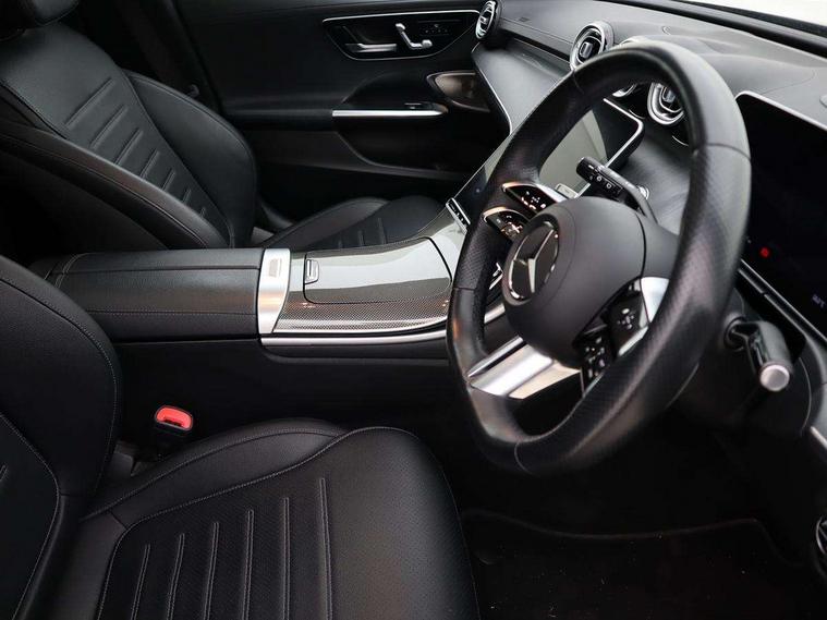 11.9" high resolution multimedia colour display, 12.3" digital instrument cluster display, Acoustic ambient protection, Active blind spot assist, Active brake assist plus, Active lane keeping assist, AMG DYNAMIC SELECT with a choice of driving modes (Slippery, Comfort, Sport, Sport+, Individual), Attention assist, Cruise control with speedtronic variable speed limiter, E-call, Easy pack automatic powered tailgate, Extended MBUX functions, Finger print sensor, Fluorescent jacket for driver, Head up Display, MBUX augmented reality for navigation, MBUX navigation premium, MBUX voice control activated by keywords "Hey Mercedes", Mercedes connect me, Mercedes me remote services, Outside temperature gauge, Pre-installation for digital key transfer, Remote boot release, Service indicator (ASSYST), Smartphone integration, Sports direct steer speed sensitive steering, Status display for rear seat belts in instrument cluster, Traffic sign assist, Wireless charging system for mobile devices, 11 kW AC onboard charger, 50l fuel tank with increased capacity, 5m charging cable for household socket (mode 2), 5m charging cable for wall box/public charging stations(mode 3), 66l fuel tank with increased capacity, 9G TRONIC 9 speed automatic transmission, Agility control sports suspension and lowered by 15 mm, Petrol Particulate Filter, Sporty engine sound system, Burmester 3D surround sound system, DAB Digital radio, MBUX multimedia system, Adaptive brake lights, Adaptive high beam assist plus, AMG body styling front apron, rear apron and side skirts, AMG front bumper with sporty air intakes and chrome elements, AMG rear bumper with high gloss chrome elements, AMG side skirts in vehicle colour, B-pillar trim in glossy black, Body coloured bumpers, Body coloured door mirrors, Chrome beltline trim, Chrome roof rails, Daytime running lights, Digital light LED headlights with projection function, Electric panoramic sliding sunroof, Electric windows with one touch opening/closing and obstruction sensors, Electrically adjustable and heated door mirrors, Green tinted glass, Heat insulating dark tinted glass, Illuminated front door sill panels, LED Indicators, LED tail lights, LED third brake light, Noise acoustic glass, Powerdomes on bonnet, Privacy glass, Radiator diamond grille with integrated Mercedes Benz star and louvre silver with chrome pins, Radio aerial integrated into rear window, Rain sensor with automatic windscreen wiper activation, Rear side wing doors, Rear wiper, Two visible exhaust pipes integrated into rear bumper, 3 seat bench in 2nd row, 3 spoke flattened bottom AMG multifunction steering wheel in black nappa leather with chrome inserts and perforated leather in grip area, 40:20:40 split folding rear bench seat, AMG sports seats, Artico man-made leather upholstery, Audio and onboard settings control on multifunction steering wheel, Auto Mercedes-Benz child seat recognition sensor, Black air vents with silver chrome elements, Black floor mats with AMG lettering, Black roof liner, Door trim elements high gloss black with silver chrome surroundings and switches, Double cupholder in centre console, Electrically height/reach adjustable steering column, Folding rear seat backrest, Front and rear head restraints, Front centre armrest with storage compartment, Gearshift paddles on steering wheel, Heated front seats, Illuminated door sills with Mercedes Benz lettering, Illuminated glove compartment stowage, Interior lighting - 64 colour Ambient lighting, Load compartment cover, Overhead control unit in high gloss black, Rear top tether child seat ISOFIX attachment, Single front passenger seat, Sports pedals with stainless steel surfaces and rubber studs, Sunvisors with illuminated vanity mirrors, THERMATIC 2 zone automatic climate control, Interior lighting package - C Class, Memory package - C Class, Mirror pack - C Class, Parking package with 360 degree camera - C Class, Seat comfort pack - C Class, Stowage space pack - C Class, USB package - C Class, USB package plus - C Class, 3 rear 3 point seatbelts, Active bonnet pedestrian safety measure which detects an impact and raises bonnet, Adaptive brake system with HOLD function and brake drying in the wet, Anti-lock braking system (ABS), Black seat belts, Brake calipers with Mercedes-Benz lettering + perforated front brake discs, Child proof door locks, Drivers knee airbag, Drivers pelvis airbag, Dual stage driver/passenger airbags, Electric parking brake, Electronic Stability Programme (ESP), Front centre airbag between driver and front passenger seats, Front side airbags, Larger brake discs on front axle, Rear seatbelt warning indicator, Sports braking system, Tyre pressure monitoring system, Warning triangle and first aid kit, Window airbags for driver, front passenger and rear passenger, Central locking with interior switch, automatic locking and crash sensor with emergency opening function, Chrome surround in electric key, Dashcam, Keyless Go, URBAN GUARD vehicle protection (Thatcham Category 1) consisting of break-in, anti-theft alarm system (ATA), interior monitoring and tow-away protection, Artico man-made leather dashboard with contrast stitching, Centre console trim in anthracite line structure lime wood, 19" AMG 5 twin spoke light alloy wheels aerodynamically optimised painted in black with high sheen finish, Noise reduced tyre with foam absorber, Summer tyres, TIREFIT with tyre inflation compressor,