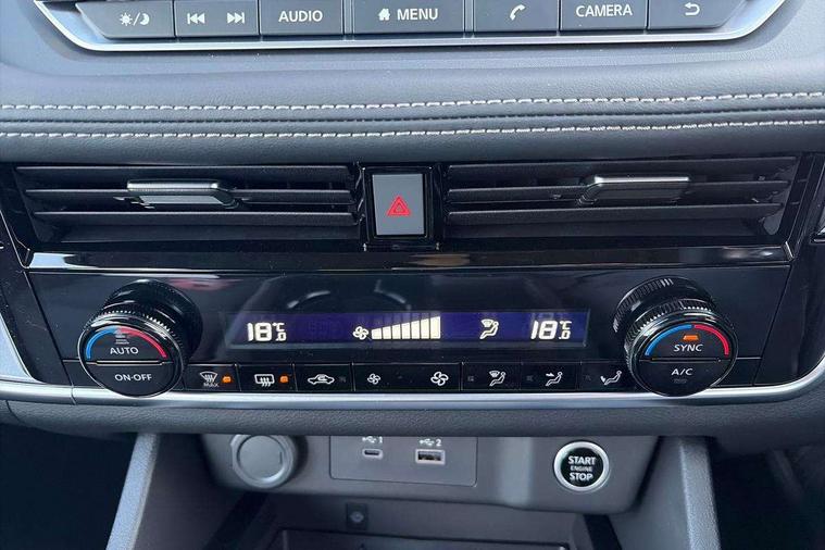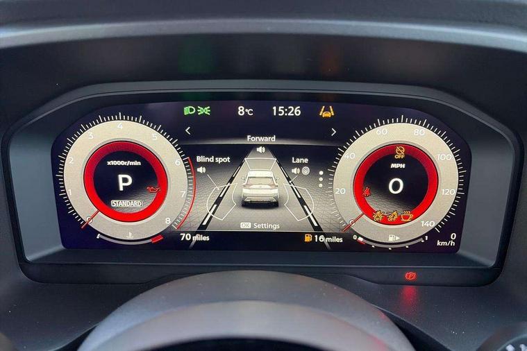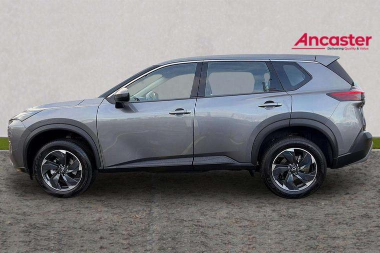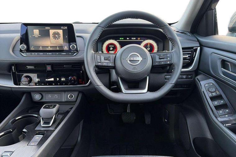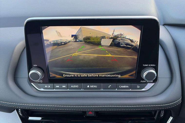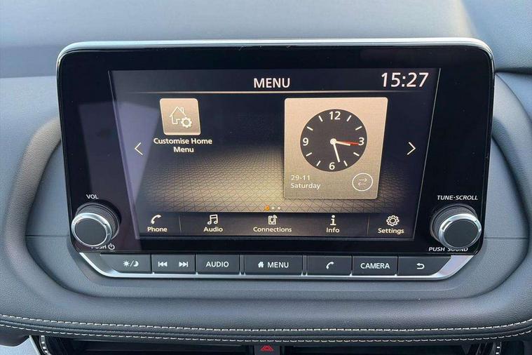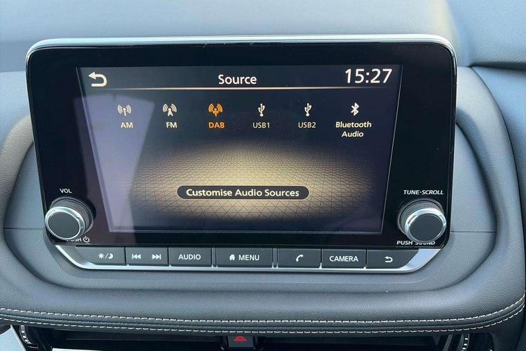 Android auto/Apple CarPlay (Wired), Blind spot warning, Drive assist custom mode, Drive modes (sport, normal, eco), Driver drowsiness and attention warning, Electric speed sensitive power steering, Emergency and breakdown call, Event data recorder, Front and rear parking sensors, Full Digital 12.3" TFT Digital Combimeter, Idle stop/start system, Intelligent driver alert system, Intelligent forward collision warning, Intelligent lane departure warning, Intelligent lane intervention, Intelligent lane keep assist, Maximum speed limiter, Moving object detection, Nissan connect 8" touchscreen infotainment system, Push button starter, Rear cross traffic alert, Rear view camera, Reversing detection, Traffic sign recognition with legal speed adjustment, Trip computer, Wireless charging pad, 6 speakers, AM/FM audio system with DAB, Bluetooth audio streaming, Front USB connections (Type-A and Type-C), Rear USB charging only ports 2 Type-C, Auto dimming rear view mirror, Auto rear wiper when reversing, Body colour mirror caps, Body coloured door handles, Bodyside mouldings, Chrome side window finisher, Electric auto folding door mirrors, Electrically adjustable and heated door mirrors, Follow me home headlights, High beam assist, Intelligent auto headlights, LED 3rd brake light, LED daytime running lights, LED Headlights, LED rear lights, One touch front and rear electric windows with remote opening and closing, Partially body coloured bumpers, Rain sensing wipers, Rear reversing light (bulb lighting), Rear roof spoiler, Rear side wing doors, Rear styling plate, Shark fin antenna, Splash free wipers, Three blink turn signal, 12v power socket in dashboard and luggage, 3 bench rear seats in 2nd row, 3 rear headrests, 60/40 split folding rear seat bench, Butteryfly console, Chrome interior door handles, Cloth monoform upholstery, Driver and front passenger sunvisors with illuminated vanity mirrors, Driver seat back pocket, Dual zone automatic climate control with pollen filter, Front centre console and armrest, Front cupholders, Front door with bottle holders, Height adjustable driver's seat, Height adjustable front headrests, Height adjustable passenger seat, Leather shift knob, Leather steering wheel, Luggage space lighting, Multifunction steering wheel, Passenger seat back pocket, Rear armrest with 2 cupholders, Rear door bottle holders, Single front passenger seat, Tilt/telescopic adjustable steering wheel, Two rear isofix child seat anchorage points with top tether, 3x3 point rear seatbelt pretensioners + load limiters, ABS with EBD and brake assist, Active brake limited slip, Auto hold function, Child locks on rear doors, Curtain and front side, far side airbags, Driver and passenger airbags, Driver, passenger and 2nd row rear seat belt reminder, Electronic parking brake, Front seatbelt pretensioners + load limiters, Height adjustable front seatbelts, Hill start assist, Intelligent blind spot intervention, Intelligent front emergency braking with pedestrian, cyclist recognition and junction assist, Intelligent rear automatic braking, Tyre pressure monitoring system, Vehicle dynamic control, Approach unlock and walk away lock, Engine immobiliser, Remote central door locking with deadlocking, Thatcham Cat.1 alarm, 18" Diamond cut alloy wheels, Tyre puncture repair kit,