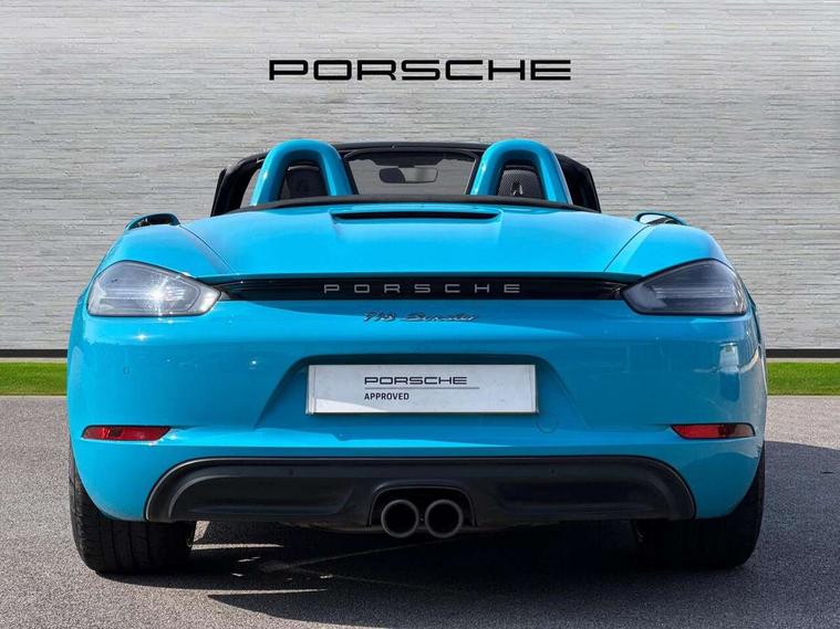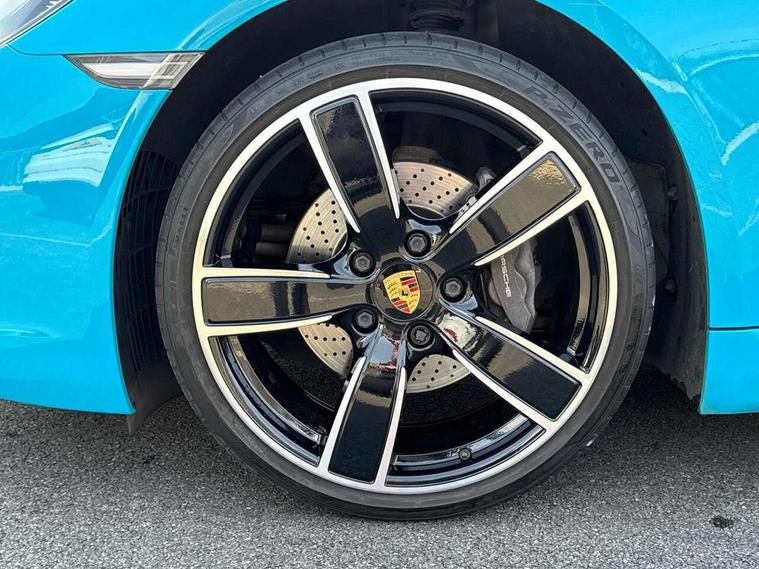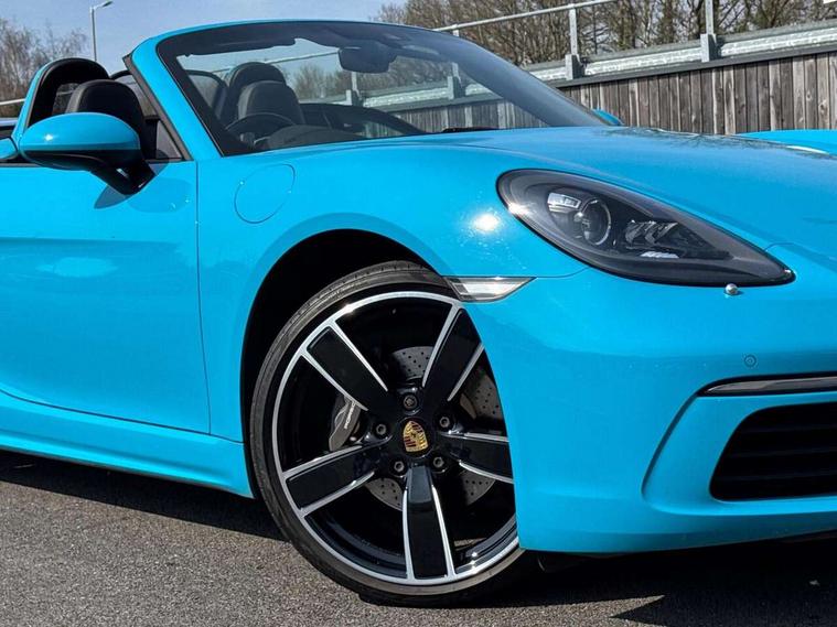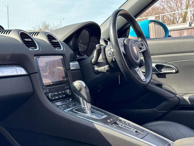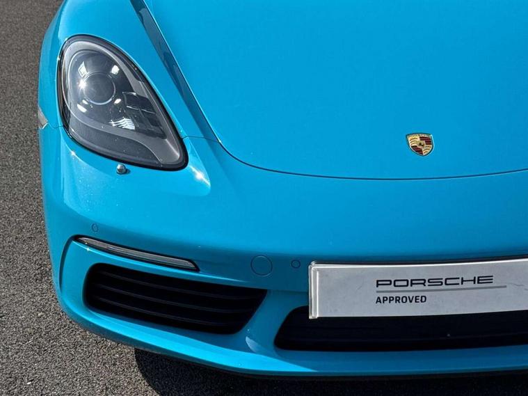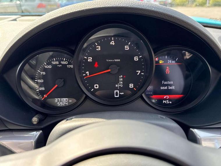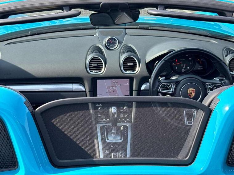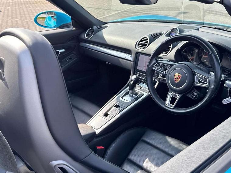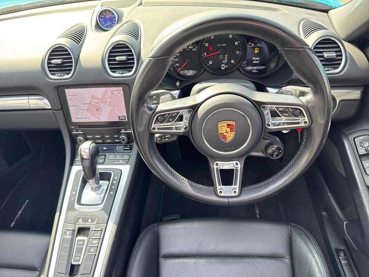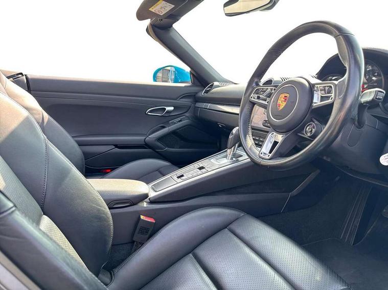 Connect Plus, Apple CarPlay, telephone module, wireless internet access, carfinder, remote vehicle status, remote service, vehicle track, Digital displays for vehicle speed, chosen gear, odometer, trip odometer and clock, Instrument cluster with central rev counter and high-resolution 4.6 inch colour display, Multi function display, On board computer, Porsche Communication Management (PCM) including online navigation module, mobile phone preparation, audio interfaces and voice control system, Gasoline particulate filter, Porsche Doppelkupplung (PDK), Porsche Stability Management (PSM), ABS with extended brake functions, Turbocharger with intercooler, VarioCam Plus variable valve timing and switchable valve lift, DAB Digital radio, Integrated compatible SIM including Porsche Connect Services, Wifi and music streaming, Automatic headlight activation including welcome home lighting, Automatically extending rear boot spoiler, Body colour bumpers, Electrically adjustable heated exterior mirrors on door waist rails, aspherical on driver's side, Fully automatic fabric hood, electrically operated/heatable rigid glass rear screen, operable approx 30 mph and convenient operation by key remote, Green tinted heat insulating glass, Heated rear windscreen, Intelligent lightweight body in Aluminium/Steel composite construction, LED rear lights, Net wind deflector, Porsche logo on trim strip and model designation on rear apron in high gloss silver colour, Power windows with one touch operation and door seal protection, Separate auxiliary lights in the front end with LED indicators and position lights, Top tinted windscreen, Twin tract sports exhaust system with central tailpipe in stainless steel, Water repellent side windows, Windscreen washer system with two wiper speeds and washer jets, 12V sockets in passenger footwell and centre console storage compartment, Adjustable fan with air recirculation and defroster functions, Clothes hooks on front seat backrests, Door sill guards with model designation logo, Elevated centre console with uncovered storage compartment and closed storage compartment, Footwell illumination, Front and rear luggage compartments, Front centre console storage box, Height/reach adjust steering wheel, Interior roof lining, LED reading lights, orientation, ignition lock, additionally luggage compartment and glove compartment lighting, Lockable glovebox, Smooth finish leather on steering wheel rim, gear lever and door handles, SPORT button to activate dynamic driving settings for engine, transmission (with PDK), Sports steering wheel with manual fore/aft/height adjust, Storage compartments in each doors, Three way catalytic converter and on board diagnostics for monitoring emission control system, Two individual cup holders (integral to dashboard trim strip), 3 point automatic seatbelts, ASR, Driver and passenger airbags, Electrically controlled parking brake, Front and rear 4 piston aluminium monobloc fixed calipers, disc internally vented and cross drilled, front/rear disc diameter, brake calipers in black, Front and rear lightweight spring strut axle, Front seatbelt pretensioners + load limiters, Passenger airbag deactivate switch, Porsche side impact protection doors with thorax airbag in outer backrest side bolster and head airbag for driver/passenger in door panel, Tyre pressure monitoring system, Alarm system with interior surveillance, Anti-theft wheel bolts, Auto start/stop function including coasting (in connection with PDK), Engine immobiliser with in key transponder, central locking and remote control, Tyre sealing compound and electric air compressor kit,