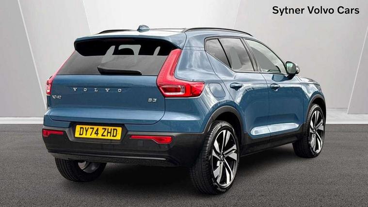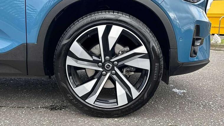 12.3" Progressive Driver Display, 360 degree surround view parking camera with side proximity sensors, 9" centre console portrait touch screen, Adjustable steering wheel force, Apple carplay (wired), Bluetooth handsfree system, Driver alert control, Driver assistance (pilot assist and adaptive cruise control), Driver awareness - Blind spot information system with steer assist, cross traffic alert with autobrake and rear collision warning and mitigation, E-call, Google automotive services - Enabled entertainment apps, navigation with google maps, voice recognition with google assistant, Hands free power tailgate, Intelligent speed assistance, Lane keeping aid, Oncoming Lane Mitigation, Speed sensitive steering, Volvo cars services with app - Driving journal, emergency and breakdown call, engine remote start, remote door locking/unlocking and vehicle dashboard, Wireless/Inductive Mobile Phone Charging, Automatic transmission with start/stop and manual change functions, Dynamic chassis, DAB Digital radio, Premium Sound by Harman Kardon, Dolby Pro Logic II Surround Sound, Dirac Unison, 12 speakers/600W and subwoofer, Steering wheel mounted remote controls, Active bending pixel LED headlights with adaptive shadow technology, Active high beam incorporating daytime running lights, Adaptive brake lights with high level LED brake lights, Auto dimming feature for exterior door mirrors, Auto dimming interior mirror, Automatic headlamp levelling, Dark tinted windows - rear side windows and rear screen, Front aluminium tread plates, Front and rear electric windows, Headlight cleaning system, High gloss black front and rear skid plate, High gloss black front bumper deco, High gloss black mesh front grille with high gloss black surround, High gloss black window trim, Home safe and approach lighting, Integrated roof rails in high gloss black, LED front fog lights with cornering function, Power glass tilt and slide panoramic sunroof with sun curtain, Puddle lights, Rain sensor with automatic windscreen wiper activation, Rear side wing doors, Rear wiper, Roof antenna, Roof spoiler, Visible VIN plate, 12V socket in front tunnel console and luggage compartment, 2-Zone electronic climate control with CleanZone air quality system and pollen filter, 3 seat bench in 2nd row, 3 Spoke tailored steering wheel with chrome trim, 60/40 versatile split folding rear seat, A-pillar parking ticket holder, Centre console cupholders and storage, Flexible load floor and grocery bag holder, Floor mats, Front cabin courtesy lights, Front door pocket, front cupholder, ambient front door, rear reading, rear courtesy, instrument panel and tailgate lighting, Front footwell illumination, Front headrests, Front reading lights, Front seat cushion extensions, Front side step illumination (under door), Glovebox bag hook, Heated front seats, Height/reach adjustable steering column, High gloss centre tunnel deco, Illuminated glovebox, Illuminated luggage compartment, Illuminated vanity mirrors + ticket holder, Integrated waste bin, Isofix attachments on outer rear seats, Load cover, Load protection net, Multi directional lumbar support for driver and passenger seat, Power driver seat with memory + exterior mirrors memory, Power folding rear headrests, Power passenger seat, Rear armrest with cupholders, Single front passenger seat, Underfloor cargo storage, Climate pack without heated front seats - XC40, 3x3 point rear seatbelts, City safety with steering support with Pedestrian + cyclist + front collision warning with full auto brake and rear auto brake, Driver and passenger airbags, Drivers knee airbag, Electronic parking brake with auto hold, First aid kit, Front and outer rear seatbelt reminder and pretensioners, Front seats SIPS airbags, Hill descent control, Hill start assist, Inflatable curtain, Passenger airbag cut-off device, Power child locks on rear doors, Road sign information display, Run off Road Protection, SIPS (Side Impact Protection System), Slippery road and hazard light alert, Stability and Traction Control with Spin control, Engine Drag Control and Corner Traction Control, Tyre pressure monitoring system, Vehicle deceleration control with Anti-lock Brake System, Electronic Brake Distribution and Emergency Brake Assist, Warning triangle, WHIPS whiplash protection system - front, 2 x Key integrated remote control central locking including with deadlocking system and auto open/close windows and sunroof, Anti-theft alarm including immobiliser/volume sensor + level sensor, Keyless drive includes keyless entry and keyless start, Locking wheel nuts,