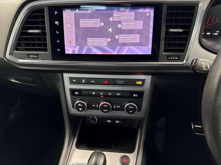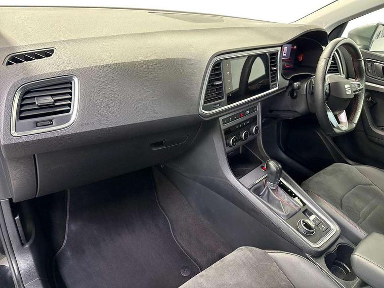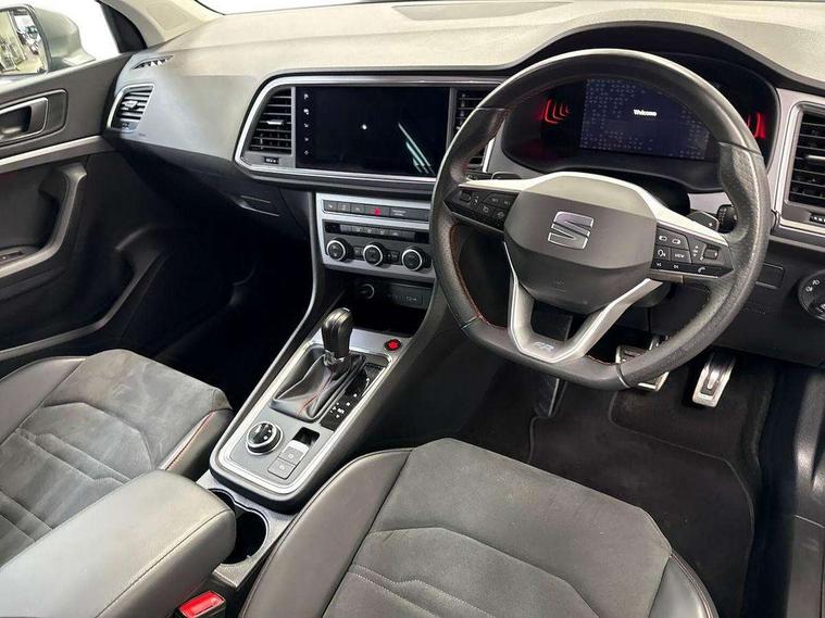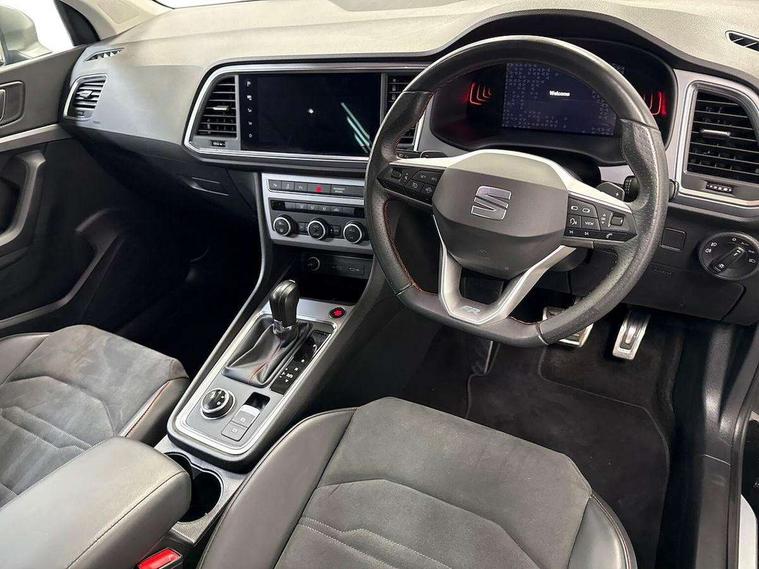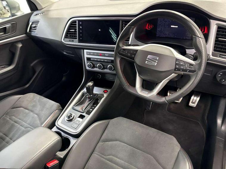 8" Digital cockpit, Colour multi-function on board computer display, Cruise control system with speed limiter, E-call, Outside temperature gauge, Progressive power assisted steering, SEAT drive profile with driving experience button - Normal, Sport, Eco and Individual mode, gearshift, steering and throttle response, Self parking functionality (includes front and rear parking sensors), Start/stop system, Tailgate, Trip computer, Wireless full link smartphone integration, Wireless phone charger, Steering wheel mounted audio/phone controls, Body colour bumpers, Body coloured wheel arch surrounds, Chrome front grille frame, Chrome roof rails, Chrome side window trim, Dark tinted rear windows, Daytime running lights, Door mirrors with welcome light silhouette, Dynamic headlight range control with self adjusting whilst driving, Electric adjustable/heated/folding door mirrors, Front and rear electric windows, Full LED headlamps with lens and LED front fog lamps with cornering function, Illuminated aluminium front door sill, LED rear tail lights with dynamic indicators, Rear fog lights, Rear side wing doors, Rear wash/wipe, Simulated exhaust pipes in chrome frame, Variable front intermittent wipers, 12V socket in front, 3 seat bench in 2nd row, 60/40 split folding rear seat, Aluminium pedals, Drawer under right front seat, Dual zone climate control, Front and rear head restraints, Front centre armrest, Front seat back storage pockets, Height adjustable driver and passenger seat with lumbar adjustment, ISOFIX points in outer rear seats with top tether anchorage points, Leather steering wheel and gear knob, Microsuede upholstery with front comfort seats, Rear armrest and easy back seat release mechanism from boot, Single front passenger seat, Steering wheel mounted gearshift paddles, Convenience pack - Ateca, Interior lighting pack - Ateca, Navigation system pack with DAB - Ateca, 3x3 point rear seatbelts, ABS, Traction control system (TCS), Electronic stability control (ESC) and Electronic differential lock system (XDS), Airbags - Driver and front passenger airbag with deactivation, front side, two curtain and driver's knee airbags, Electric parking brake with auto hold function, Front and rear seatbelt reminder, Front assist with autonomous emergency braking, Hill hold control, Manual rear child locks, Single tone horn, Tiredness recognition system, Traction control, Tyre pressure monitoring system, Alarm, Keyless entry, Locking wheel bolts, Remote central locking, Chrome interior detailing, 18" Brillaint silver alloy wheels,