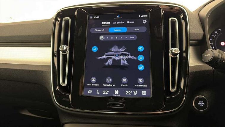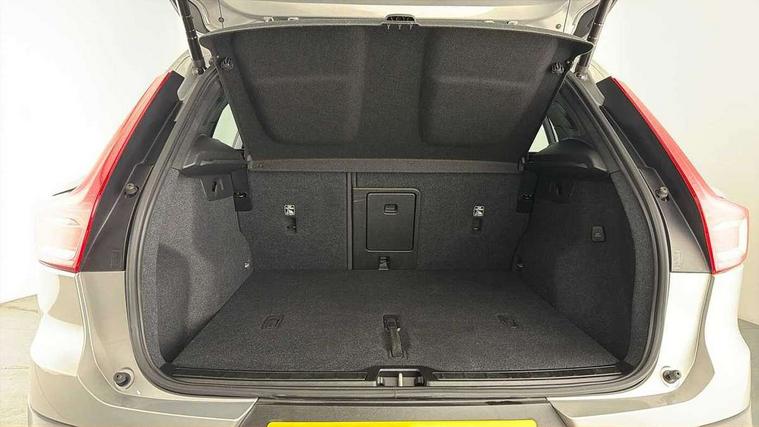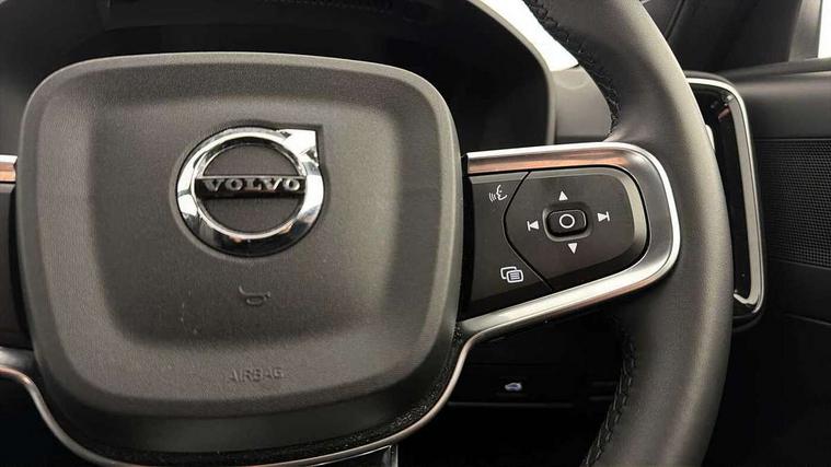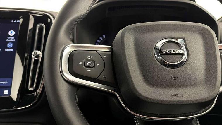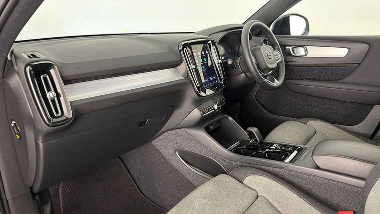 12.3" Progressive Driver Display, 360 degree surround view parking camera with side proximity sensors, 9" centre console portrait touch screen, Adjustable steering wheel force, Bluetooth hands free telephone kit, Cruise control, E-call, Front park assist, Google automatic services - Nav with google maps, apple carplay/android auto, voice recognition with google assistant, Hands free power tailgate, Lane keep assist with driver alert control, Oncoming Lane Mitigation, Rear park assist, Speed limiter, Speed sensitive steering, Wireless/Inductive Mobile Phone Charging, Dynamic chassis, DAB Digital radio, High performance sound, 8 speakers/250W, front USB and 2 rear type C USB, Steering wheel mounted remote controls, Adaptive brake lights with high level LED brake lights, Auto dimming feature for exterior door mirrors, Auto dimming interior mirror, Automatic headlamp levelling, Automatic LED Headlights + Active high beam incorporating daytime running lights, Front aluminium tread plates, Front and rear electric windows, High gloss black front and rear skid plate, High gloss black mesh front grille with high gloss black surround, High gloss black window trim, Home safe and approach lighting, Integrated roof rails in high gloss black, LED front fog lights, Puddle lights, Rain sensor with automatic windscreen wiper activation, Rear side wing doors, Rear wiper, Roof antenna, Roof spoiler, Visible VIN plate, 12V socket in front tunnel console and luggage compartment, 2-Zone electronic climate control with CleanZone air quality system and pollen filter, 3 seat bench in 2nd row, 3 Spoke tailored steering wheel with chrome trim, 60/40 versatile split folding rear seat, A-pillar parking ticket holder, Ambient front door and instrumental panel lighting, Centre console cupholders and storage, Flexible load floor and grocery bag holder, Floor mats, Front door pocket and front cupholder illumination, Front footwell illumination, Front headrests, Front reading light and theatre lighting, Front seat cushion extensions, Front tunnel pocket, Glovebox bag hook, Heated front seats, Height adjustable passenger seat, Height/reach adjustable steering column, High gloss centre tunnel deco, Illuminated glovebox, Illuminated luggage compartment, Illuminated tailgate, Illuminated vanity mirrors, Integrated waste bin, Isofix attachments on outer rear seats, Load protection net, Multi directional lumbar support, Power driver seat with memory + exterior mirrors memory, Rear armrest / integral cup holders / storage tray, Rear headrests, Rear reading and courtesy lights, Single front passenger seat, Underfloor cargo storage, Climate pack without heated front seats - XC40, 3x3 point rear seatbelts, City safety with steering support with Pedestrian + cyclist + front collision warning with full auto brake and rear auto brake, Drivers knee airbag, Dual stage driver/passenger airbags, Electronic parking brake with auto hold, First aid kit, Front and outer rear seatbelt reminder and pretensioners, Front seats SIPS airbags, Hill descent control, Hill start assist, Inflatable curtain, Passenger airbag cut-off device, Power child locks on rear doors, Road sign information display, Run off Road Mitigation, Run off Road Protection, SIPS (Side Impact Protection System), Slippery road and hazard light alert, Stability and Traction Control with Spin control, Engine Drag Control and Corner Traction Control, Tyre pressure monitoring system, Vehicle deceleration control with Anti-lock Brake System, Electronic Brake Distribution and Emergency Brake Assist, Warning triangle, WHIPS whiplash protection system - front, Anti-theft alarm including immobiliser/volume sensor + level sensor, Key integrated remote control central locking + fuel flap with deadlocking system and auto open/close power windows, Keyless drive includes keyless entry and keyless start, Locking wheel nuts,