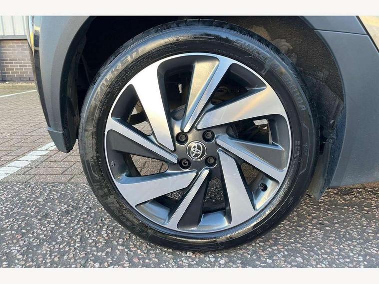 4.2" TFT colour screen, Adjustable speed limiter, Analogue speedometer, Bluetooth connectivity, Digital tachograph, Driver attention alert system, eCall emergency call system, Electric power steering, Intersection turn assist, Key reminder warning, Noise reduction kit, Pre collision system with emergency steering assist, Reversing camera with static guide lines, Smart phone integration with Apple car play/Android Auto, Speed limit display, Start and stop, Vehicle Stability Control (VSC), 4 speakers, 9" HD multimedia display touch screen with Toyota smart connect, DAB digital audio broadcast, USB connector, Auto headlights, Auto wipers, Automatic headlights cut-off, Bicycle towing hook, Black contrast roof, Black side protection mouldings, Black wheel arch mouldings, Body colour door handles, Body coloured front bumper, Boot door scuff plate, Eclipse black rear bumper, Electric heated door mirrors, Follow me home headlights, Front fog lights, Front power windows, Gloss black door mirrors, Gloss black upper front grille, Headlight cut-off reminder, LED daytime running lights, LED front light guide, LED High mounted stop lamp, Manual day/night rear view mirror, Manual headlight levelling, Pagoda roof, Power adjustable door mirrors, Power back door, Privacy glass, Projector halogen headlights, Rain sensor, Rear combination lights LED bulb type, Rear side wing doors, Rear windscreen defogger, Rear windscreen wiper, Short antenna, Variable intermittent windscreen wipers, 12v power outlet - front, 2 seat bench in 2nd row, 3 spoke leather steering wheel, 50/50 split folding rear seat, Adhesive roof headlining, Adjustable speed limiter switch on steering wheel, Audio and telephone switches on steering wheel, Auto air conditioning, Black insert on steering wheel, Black roof lining, Boot light, Centre room light, Chrome interior door handles, Chrome surround on air conditioning buttons, Clean air filter, Console box storage in body color, Fabric upholstery, Floor mats, Front and rear cup holders, Front head rest deco art, Front head restraints, Height adjustable driver seat, Intelligent adaptive cruise control switch on steering wheel, ISOFIX child restraint system on rear seats, Lane departure alert switch on steering wheel, Leather gearshift knob, Manual tilt steering wheel, Manually reclining and sliding driver seat, Manually reclining and sliding front passenger seat, Multimedia switches on steering wheel, Pollen filter, Rear door pockets, Rear head restraints, Satin silver insert on gear shift knob, Single compartment glovebox with lights, Single front passenger seat, Soft tonneau cover, Sun visors with mirror on driver and passenger side, Voice recognition switch on steering wheel, Toyota safety sense pack - Aygo X, Anti lock braking system + Electronic brake force distribution, Child safety door lock, Emergency brake light signal (EBS), Hill start assist control (HAC), Passenger airbag on/off switch, Seat belt reminder for front and rear seats, Supplement restraints system (SRS) - 6 airbags, Traction control, Tyre pressure warning system, Immobiliser, Remote power door locks, Black wheel centre caps, Tyre repair kit,