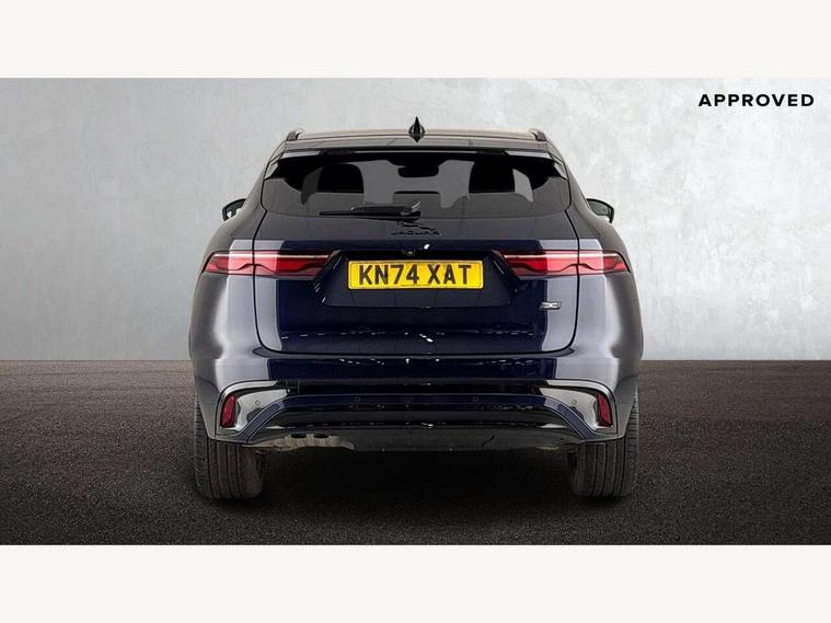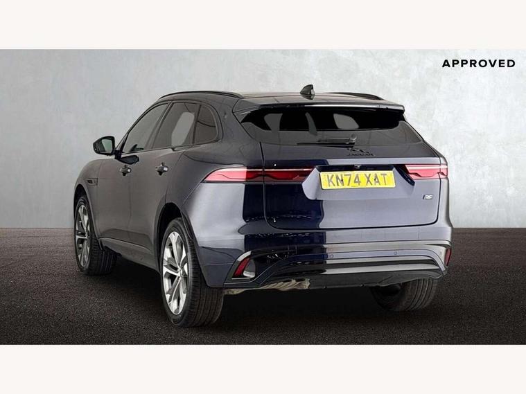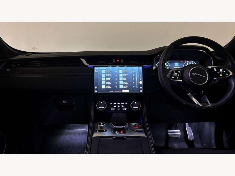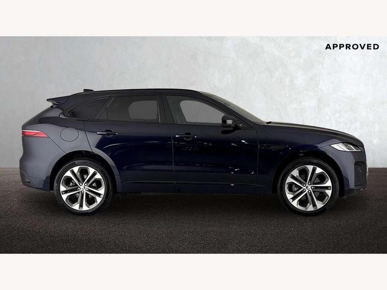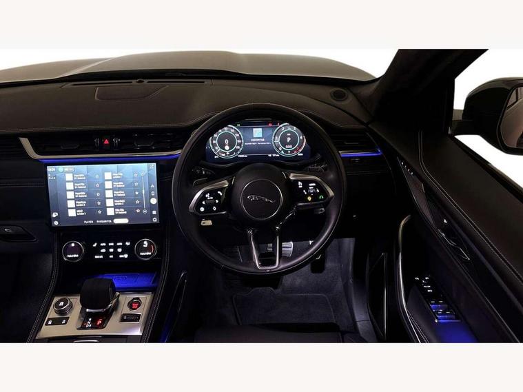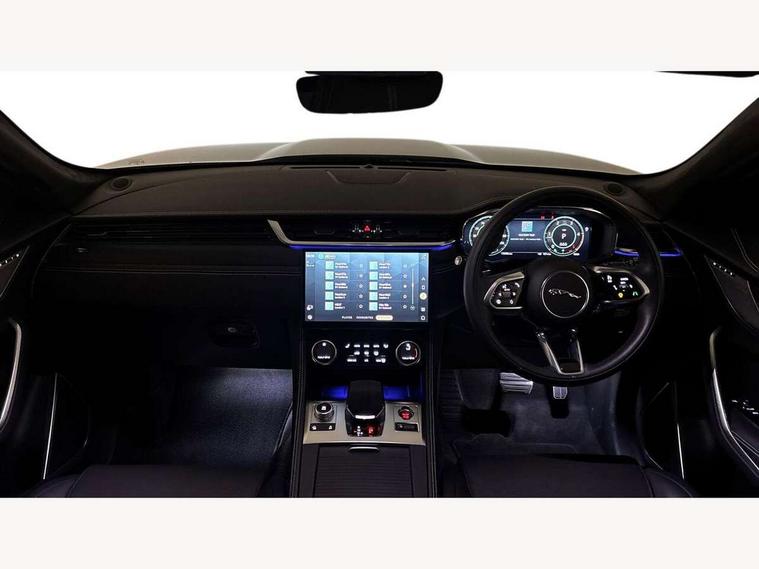 11.4" touchscreen, Adaptive cruise control with steering assist, Android Auto, Apple car play, Blind spot assist, Bluetooth connectivity, Clear exit monitor, Driver alert system, Driver condition monitor, eCall emergency call system, Eco driving style assistant, Electric power assisted steering, InControl remote, Interactive driver display digital with 12" TFT display, Jaguar Toggle shift selector, Lane departure warning system, Lane keep assist, Outside temperature gauge, Personalisation profile management, Pivi pro connected navigation system with app interface and media storage, Pro services and wifi hotspot, Push button starter, Rear collision monitor, Rear traffic monitor, Service interval indicator, Speed proportional steering, Start up sequence with movement in dials and lighting, Traffic sign recognition with adaptive speed limiter, Trip computer, Voice control system, Wireless device charging, 8 speed automatic transmission, Adaptive dynamics, All terrain progress control, All Wheel Drive (AWD), Configurable dynamics, Open differential with torque vectoring by braking, AM/FM radio, Bluetooth streaming, DAB Radio (Digital Audio Broadcasting), Dynamic volume control, InControl apps, InControl protect, iPod integration, 3 flash lane change indicators, 90th Anniversary Edition Badge, AHBA and animated directional indicators, Approach Illumination, Auto dimming rear view mirror, Automatic headlights, Electric heated/power fold memory door mirrors with approach lights and auto dimming driver side, Electric windows with one touch open/close and anti trap, F-Pace and R Dynamic badge, Green tinted glass, Heated front windscreen + heated washer jets, Heated rear window with timer, Illuminated metal tread plates with Jaguar script, Jaguar script and leaper, LED High level third brake light, LED tail lights, Metal load space scuff plates, Non acoustic front windscreen, Privacy glass (rear side windows and rear screen), R Dynamic badge on side door, Rain sensor windscreen wipers, Rear fog lights, Rear metal tread plates, Rear side wing doors, Rear wiper, Trailer stability assist, Variable front intermittent wipers, 12V power point front, 3 rear headrests, 3 seat bench in 2nd row, Additional power sockets - Two additional USB sockets in rear centre console and one 12V socket in trunk, Air distribution speed, Bright metal foot pedals, Centre armrest console, Centre console with side storage, Configurable cabin lighting, Deletion loadspace storage rails, Door sill tread plates, Ebony suede cloth headlining, Electrically adjustable steering column, Fold flat front seats, Front centre armrest with storage compartment, Front door storage space, Glovebox finisher with jaguar script, Heated steering wheel, Hooks in loadspace, Illuminated glovebox, Interior front door handles with separate locking switches, ISOFIX on outer rear seats, Jaguar sense, Leather steering wheel, Luggage tie downs in loadspace, Mist sensing, Multifunction steering wheel, Overhead lighting console, Overhead stowage for sunglasses, Passive front head restraints, Premium carpet mats, Rear air vents, Rear armrest with twin cupholders, Rear centre headrest, Rear door storage space, Reversible boot floor, Satin chrome gearshift paddles, Shopping bag hook, Single front passenger seat, Sunvisors with illuminated vanity mirrors, Twin front cupholders with cover, Online Pack with data plan - F-Pace, 355mm front brakes and 325mm rear brakes, 3x3 point rear seatbelts, ABS, All surface progress control (ASPC), Brake pad warning light, DSC - Dynamic Stability Control, Electric parking brake (EPB), Emergency brake assist, Front airbags with passenger seat occupant detector, Front and rear seatbelt reminder, Front side airbags, Full length side window curtain airbag, Hill launch assist, Power operated child locks, Traction control, Tyre pressure monitoring system, Immobiliser, Keyless entry, Keyless start, Locking wheel nuts, Perimeter alarm, Remote central locking, Valet mode,