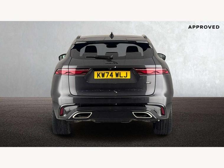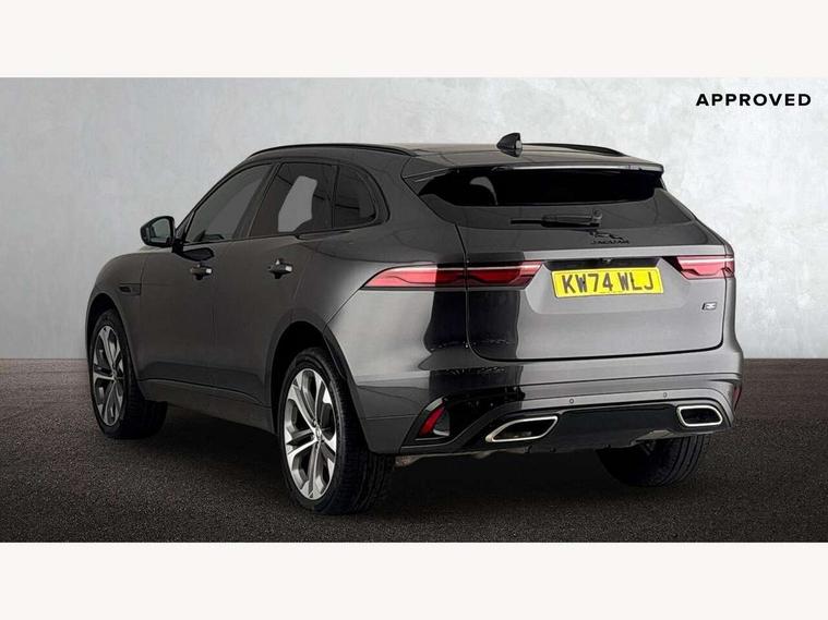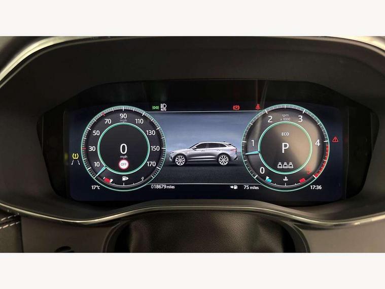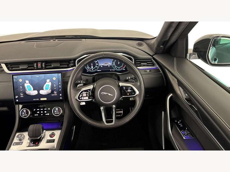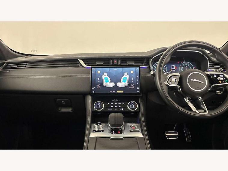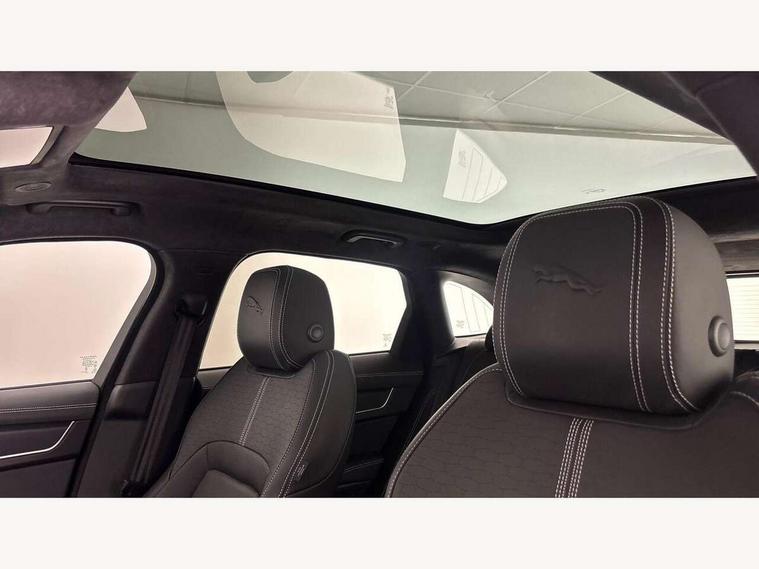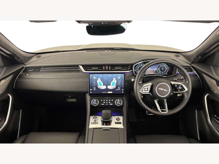 11.4" touchscreen, Adaptive cruise control with steering assist, Android Auto, Apple car play, Blind spot assist, Bluetooth connectivity, Clear exit monitor, Driver alert system, Driver condition monitor, eCall emergency call system, Eco driving style assistant, Electric power assisted steering, InControl remote, Interactive driver display digital with 12" TFT display, Jaguar Toggle shift selector, Lane departure warning system, Lane keep assist, Outside temperature gauge, Personalisation profile management, Pivi pro connected navigation system with app interface and media storage, Pro services and wifi hotspot, Push button starter, Rear collision monitor, Rear traffic monitor, Service interval indicator, Speed proportional steering, Start up sequence with movement in dials and lighting, Traffic sign recognition with adaptive speed limiter, Trip computer, Voice control system, Wireless device charging, 8 speed automatic transmission, Adaptive dynamics, All terrain progress control, All Wheel Drive (AWD), Configurable dynamics, Open differential with torque vectoring by braking, AM/FM radio, Bluetooth streaming, DAB Radio (Digital Audio Broadcasting), Dynamic volume control, InControl apps, InControl protect, iPod integration, 3 flash lane change indicators, 90th Anniversary Edition Badge, AHBA and animated directional indicators, Approach Illumination, Auto dimming rear view mirror, Automatic headlights, Electric heated/power fold memory door mirrors with approach lights and auto dimming driver side, Electric windows with one touch open/close and anti trap, F-Pace and R Dynamic badge, Green tinted glass, Heated front windscreen + heated washer jets, Heated rear window with timer, Illuminated metal tread plates with Jaguar script, Jaguar script and leaper, LED High level third brake light, LED tail lights, Metal load space scuff plates, Non acoustic front windscreen, Privacy glass (rear side windows and rear screen), R Dynamic badge on side door, Rain sensor windscreen wipers, Rear fog lights, Rear metal tread plates, Rear side wing doors, Rear wiper, Trailer stability assist, Variable front intermittent wipers, 12V power point front, 3 rear headrests, 3 seat bench in 2nd row, Additional power sockets - Two additional USB sockets in rear centre console and one 12V socket in trunk, Air distribution speed, Bright metal foot pedals, Centre armrest console, Centre console with side storage, Configurable cabin lighting, Deletion loadspace storage rails, Door sill tread plates, Ebony suede cloth headlining, Electrically adjustable steering column, Fold flat front seats, Front centre armrest with storage compartment, Front door storage space, Glovebox finisher with jaguar script, Heated steering wheel, Hooks in loadspace, Illuminated glovebox, Interior front door handles with separate locking switches, ISOFIX on outer rear seats, Jaguar sense, Leather steering wheel, Luggage tie downs in loadspace, Mist sensing, Multifunction steering wheel, Overhead lighting console, Overhead stowage for sunglasses, Passive front head restraints, Premium carpet mats, Rear air vents, Rear armrest with twin cupholders, Rear centre headrest, Rear door storage space, Reversible boot floor, Satin chrome gearshift paddles, Shopping bag hook, Single front passenger seat, Sunvisors with illuminated vanity mirrors, Twin front cupholders with cover, Online Pack with data plan - F-Pace, 380mm front brakes and 325mm rear brakes, 3x3 point rear seatbelts, ABS, All surface progress control (ASPC), Brake pad warning light, DSC - Dynamic Stability Control, Electric parking brake (EPB), Emergency brake assist, Front airbags with passenger seat occupant detector, Front and rear seatbelt reminder, Front side airbags, Full length side window curtain airbag, Hill launch assist, Power operated child locks, Traction control, Tyre pressure monitoring system, Immobiliser, Keyless entry, Keyless start, Locking wheel nuts, Perimeter alarm, Remote central locking, Valet mode,