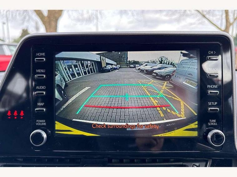 4.2" coloured TFT screen for multi-information display, Adaptive cruise control, Apple car play and Android auto, Bluetooth connectivity, E-call, Electric power steering, Hybrid system indicator, Lane departure alert with steering control, Lane trace assist, Push button start, Push button tailgate release, Remote boot door release in cabin, Remote boot door release in key, Reversing camera, Road sign assist - RSA, Smart voice assist, Trip computer, Voice recognition, Vehicle Stability Control (VSC), 6 speakers, AM/FM radio, DAB Radio (Digital Audio Broadcasting), Toyota touch 2 multimedia system with 8" display, USB connector, Wi-fi connectivity, Anti-jam protection on power windows, Auto high beam, Auto up and down function on all power windows, Automatic headlights, Automatic headlights cut-off, Black and body coloured rear bumper, Black lower front grille, Black upper front grille, Body colour door handles, Body colour door mirrors, Body colour front spoiler lip, Body coloured front bumper, Boot door release with push button, Electric heated door mirrors, Follow me home headlights, Front and rear power windows, Front fog lights, Headlight cut off reminder, Honeycomb lower front grille, LED daytime running lights, LED High mounted stop light, LED rear brake lights, LED rear combination lights, Manual headlight levelling, Manually retractable door mirrors, Noise reduction layer on front windows and windscreen, Power adjustable door mirrors, Rear side wing doors, Rear spoiler, Rear tailgate, Rear window defogger, Rear window wiper, Reflective LED headlights, Shark fin antenna, UV-filter on driver and passenger windows, UV-filter on rear windows, Variable front intermittent wipers, 12v power outlet - front, 3 rear headrests, 3 seat bench in 2nd row, 3 spoke leather steering wheel, 60/40 split folding 2nd row rear seats, Adjustable rear headrests, Adjustable speed limiter switch on steering wheel, Assist grips front and centre pillar, Audio and telephone switches on steering wheel, Black front door assist grips, Boot light, Chrome interior door handles, Cloth upholstery, Driver and front passenger personal light, Driver and front passenger Whiplash Injury Lessening seats, Dual zone automatic air conditioning, Floor mats, Front cupholders, Front head restraints, Front sports seats, Glovebox with internal light, Hard tonneau cover, Hooks for luggage holding net, Humidifying Nanoe air purifier, Illuminated entry system, Isofix attachments on outer rear seats, Leather gearshift, Light on driver sun visor, Light on passenger sun visor, Manual telescopic steering wheel, Manual tilt steering wheel, Manually adjustable lumbar support on driver seat, Manually height adjustable driver seat, Manually height adjustable front passenger seat, Manually reclining driver seat, Manually reclining front passenger seat, Manually sliding driver seat, Manually sliding front passenger seat, Microphone on front personal light, Mirror on driver sun visor, Mirror on passenger sun visor, Multimedia switches on steering wheel, Pollen filter, Shopping bag hooks, Single front passenger seat, Slow opening on lower glovebox, Voice recognition switch on steering wheel, 16 Disk front wheel brake, 3x3 point rear seatbelts, ABS+EBD+Brake assist, Electronic parking brake, Front and rear seatbelt reminder, Front passenger airbag on/off switch, Hill start assist control (HAC), Pre collision system with pedestrian detection, Pre-tensioners and force limiters, Rear door child safety locks, SRS Airbags - Driver + Front passenger, front side, front and rear curtain and driver's knee airbags, Toyota safety sense, Tyre pressure monitoring system, Tyre pressure warning system, Acoustic vehicle alert system (AVAS), Glass-breaking alarm sensors, Immobiliser, Intrusion alarm, Intrusion sensor, Motion sensor alarm, Power door locks, Power passenger window lock, Remote central locking, Black lower dashboard, Black upper dashboard, Grey deco line on upper dashboard, Matte black centre console, Tyre repair kit,