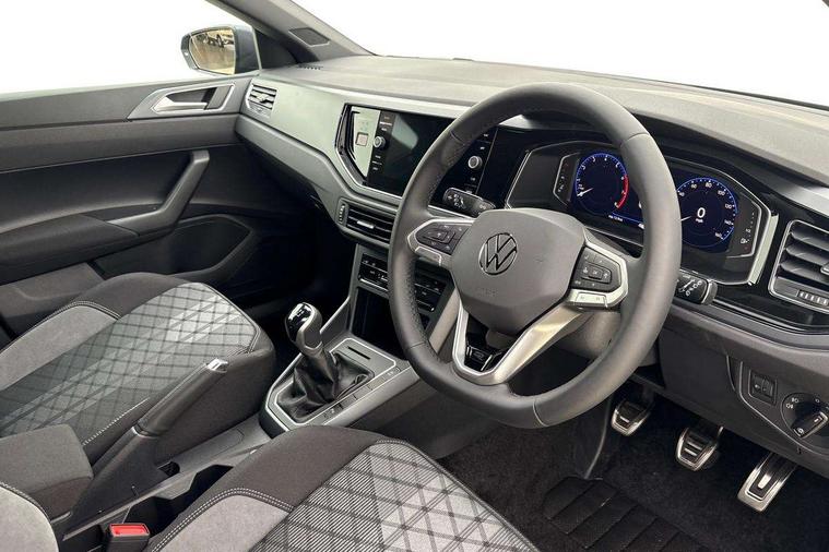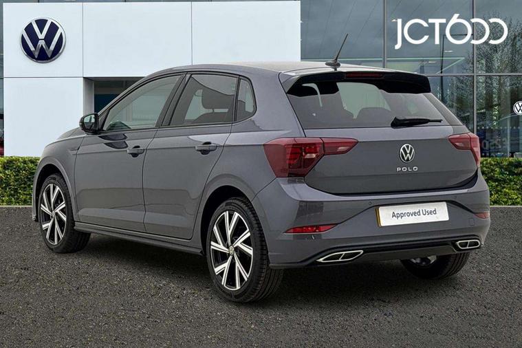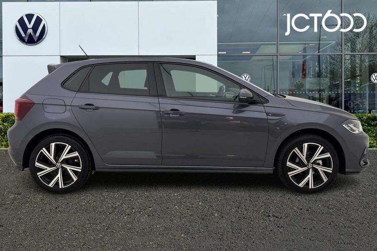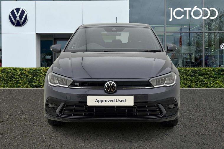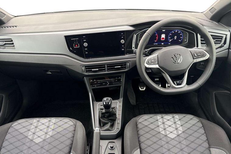 Advanced driver attention and drowsiness monitor, Bluetooth mobile phone interface, Digital Cockpit Pro with 10.25" Display, Dynamic road sign display, Emergency call service, Mobile phone preparation with inductive charging function, Multifunction camera, Power assisted speed sensitive steering, Predictive adaptive cruise control without follow-to-stop and speed limiter, Preparation for We connect and We connect plus, Speedo and rev counter, electronic odometer, trip, service interval display and fuel gauge, Standard rear axle, Travel Assist - Lane keeping system and traffic jam assist, Travel assist including emergency assist, Trip computer, Warning signal and warning light for front and rear seatbelts not fastened, Washer fluid level indicator, Wireless app connect, Front wheel drive, Rear shock absorpion, Start-stop system with battery regeneration (recuperation - energy recovery during braking), DAB Digital radio, Diversity antenna for FM reception, Body colour bumpers, Body colour door handles, Electric front windows, Front scuff plates with R-Line logo, Heat insulating glass windscreen, Power folding adjustable/heated exterior mirrors and front passenger exterior mirror lowering function, Rear electric windows, Rear fog light, Rear side wing doors, Rear windscreen washer and wiper with interval delay, Third brake light, 12V power socket in centre console, 2 USB-C ports in the front, 2 USB-C charging sockets on the center console in the rear, 3 rear head restraints, 60/40 split folding rear seat and rear seat bench not split, Air care climatronic air conditoning system with active combination filter and 2-zone temperature control, Black roof lining, Carpet mats, front and rear, Chrome plated radiator grille inserts, air vent surrounds and light switch surrounds, Door and side trim panel, Driver and front passenger seat height adjustment, Driver/passenger sunvisors with illuminated vanity mirrors, Front centre armrest, Front footwell illumination, Front seat backrest storage pockets, Front sports comfort seats, Handbrake lever handle in leather, Headliner in recycled material, Isofix child seat preparation easy-fit (for two outer rear seats, and front passenger seat) compatible with I-size, Karoso artvelours cloth upholstery, Leather trimmed gear knob, LED interior light with switch off delay and dimmer, 2 reading lights front and rear, Luggage compartment cover, Luggage compartment floor, Luggage compartment lighting, Lumbar adjustment for front seats, Multifunction steering wheel, Single front passenger seat, Stainless steel pedals, Standard pedal cluster, Light and sight pack - Polo R-Line/Black Edition, 3 point height adj front seatbelts + pretensioners, 3x3 point rear seatbelts, ABS, Driver and front passenger airbag with front passenger airbag deactivation, Drivers and front passengers safety optimised head restraints, ESC (Electronic stability control) + EDL (Electronic Differntial lock) and ASR (Traction control), Extended and predictive pedestrian/ cyclist protection, Front curtain and side airbags with center airbag, Hill hold control, Manual child lock in rear doors, Single tone horn, Tyre pressure loss indicator, Alarm with interior protection, Anti-theft alarm system with interior monitoring, backup horn, and towing protection, Anti-theft wheel bolts, Electronic engine immobiliser, Chrome applications on rotary light, mirror adjustment, window regulator switches, outlet with frame in black, Dark grey anodised matt decorative inserts in dash and front door panels, 16" Coventry alloy wheels, Low rolling resistance tyres,