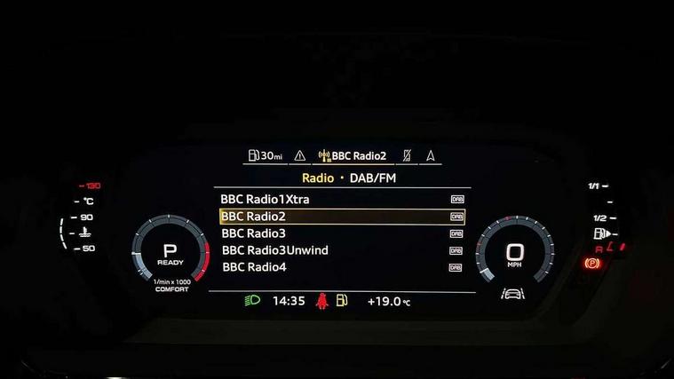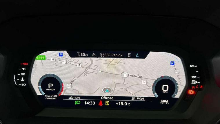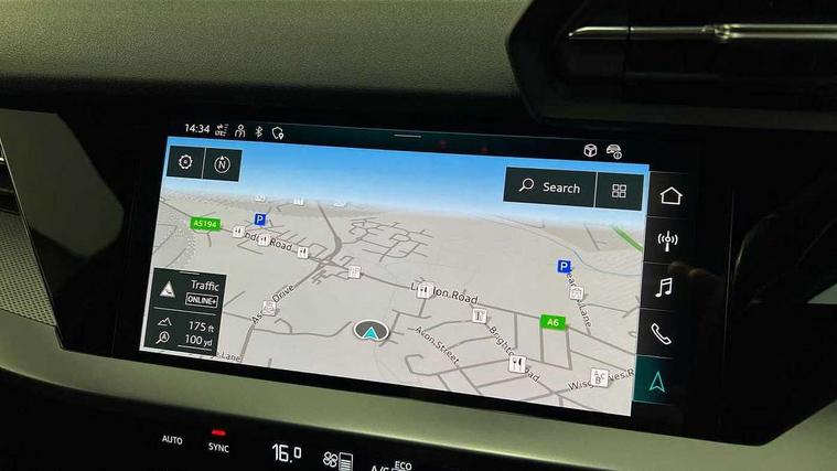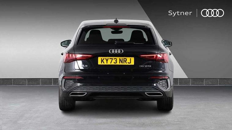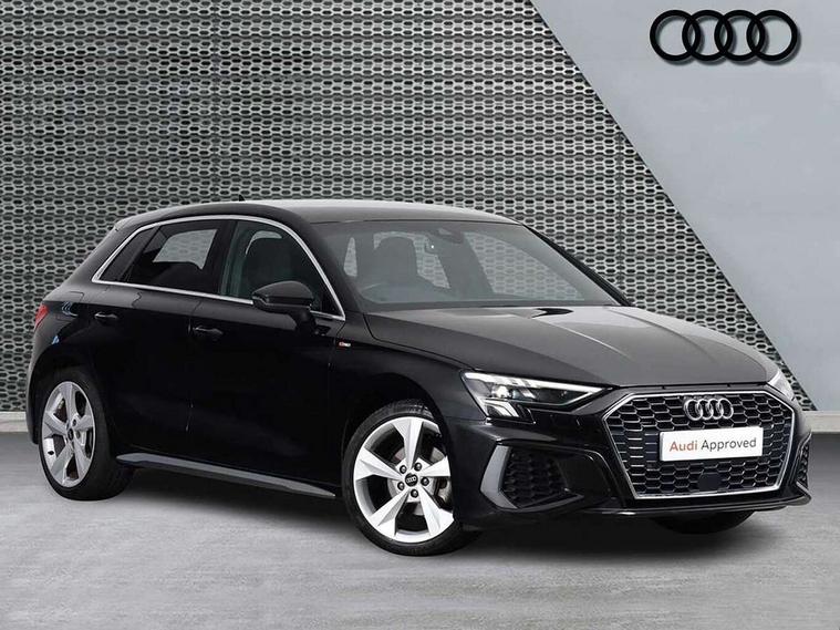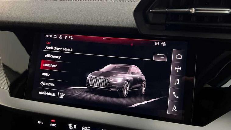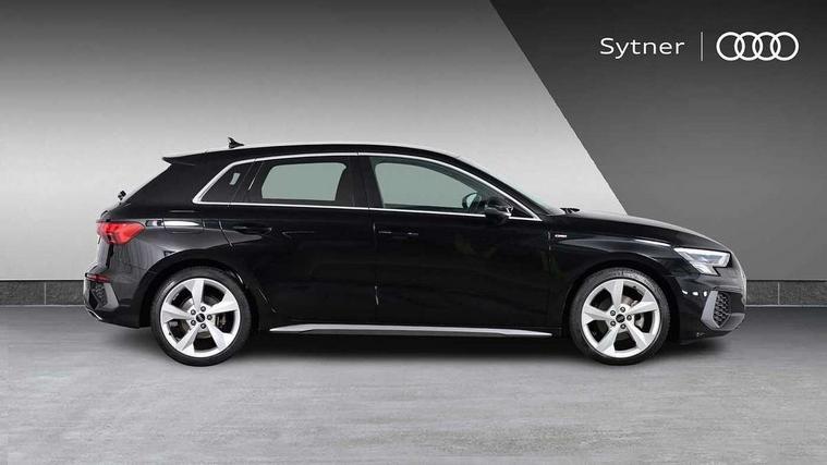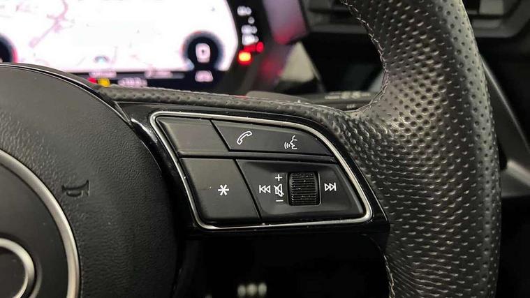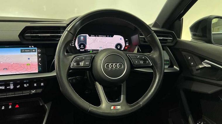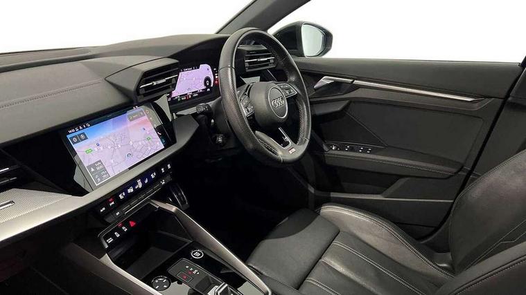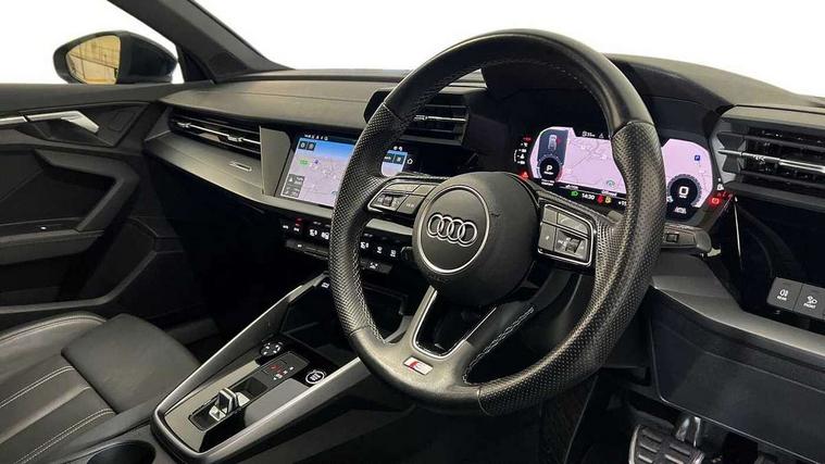 Audi drive select (Auto, Comfort, Dynamic, Efficiency and Individual), Audi smartphone interface, Audi Virtual Cockpit - 10.25" digital and colour instrument cluster, Automatic start/stop system with recuperation, Bluetooth interface, Camera based traffic sign recognition, Collision avoidance assistant, e-Call (emergency call), Electromechanical power speed sensitive steering, Lane departure warning system, MMI Navigation Plus with high resolution 10.1" colour touch screen display, Service indicator, Trip computer, Voice control system with natural language interaction, Sports suspension, 2xUSB-C connection with data and charging functions, 6 passive loudspeakers, DAB Digital radio, 3rd brake light, Acoustic glass windscreen, Aluminium window trim, Auto dimming frameless rear view mirror, Body colour exterior mirrors, Electrically adjustable/heated/folding/dimming door mirrors with kerb view includes integrated LED indications + kerb view function for passenger side, Front electric windows, Illuminated door sills with aluminium inserts at the front with S logo, LED daytime running lights, LED headlights with LED rear lights and dynamic rear indicators, Light and rain sensors, Privacy glass - dark tinted rear window, rear door and side windows, Rear electric windows, Rear side air outlets in grained matt black, Rear side wing doors, Rear wiper, S line bumpers, S roof spoiler, 12V socket and storage compartment in front centre console, 3 seat bench in 2nd row, 3 spoke leather multifunction steering wheel with paddle shift, 4 way electrically adjustable lumbar support for driver and front passenger, 60/40 split folding rear seat bench, Black cloth headlining, Dual zone electronic climate control, Front and rear centre armrest in artificial leather, Front and rear headrests, Front/rear floor mats, Height and reach adjustable steering wheel, Interior lighting - glove compartment light and right hand side, Luggage compartment floor covering, Manual boot compartment lid, Manually adjustable front seats, Seat side bolsters, Single front passenger seat, Stainless steel pedals and front footrest in black, Twin leather upholstery with front sports seats S embossed logo, Aluminium interior elements pack - A3 Sportback, LED interior lighting pack - A3 Sportback, S line styling pack - A3 Sportback, 3x3 point rear seat belts, Driver and front passenger airbag with passenger airbag deactivation, Electronic Stabilisation Control (ESC) including ABS, ASR and EDL, First aid kit with warning triangle and 2 safety vests, Front side airbags with head airbags and interaction airbag, Pre-sense front with pedestrian and cyclist detection, Seatbelt monitoring, Tyre pressure loss indicator, Anti theft alarm, Anti-theft wheel bolts, Electronically operated child locks, Immobiliser, Remote control central locking, Dark spectrum aluminium inlays, accent surfaces in the dashboard and centre console in platinum grey silk effect paint finish,