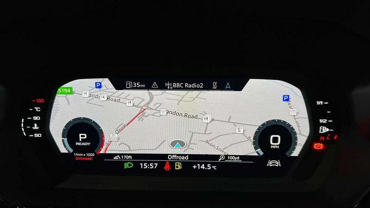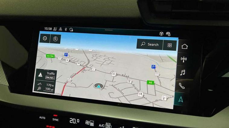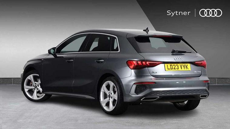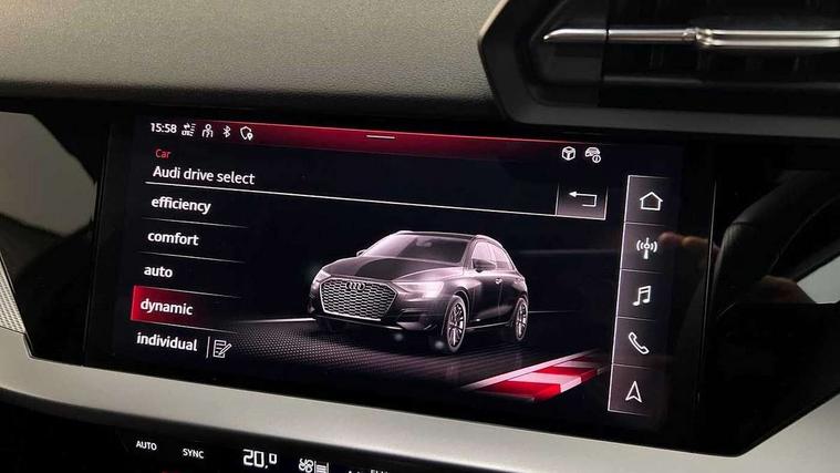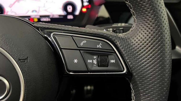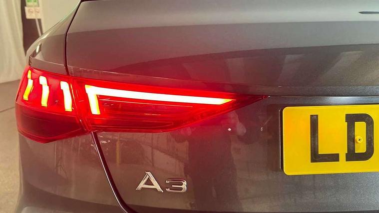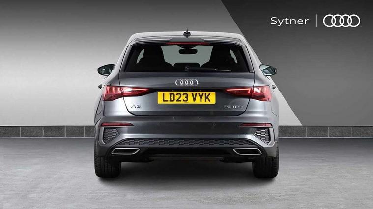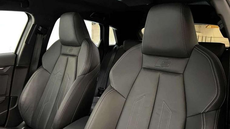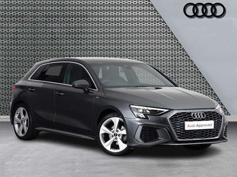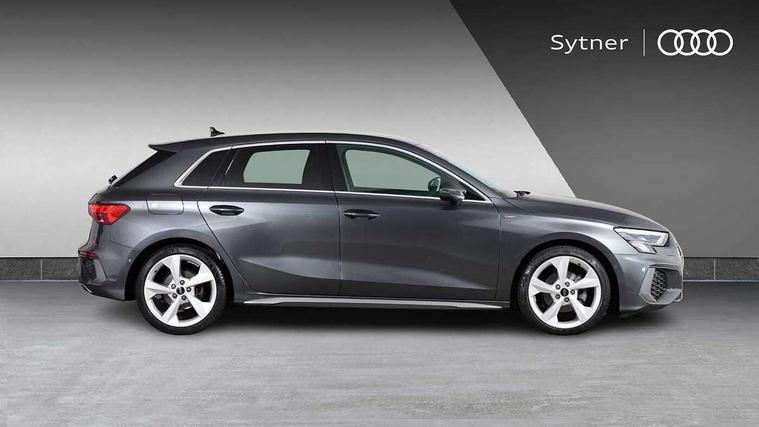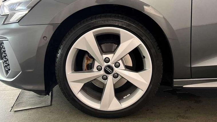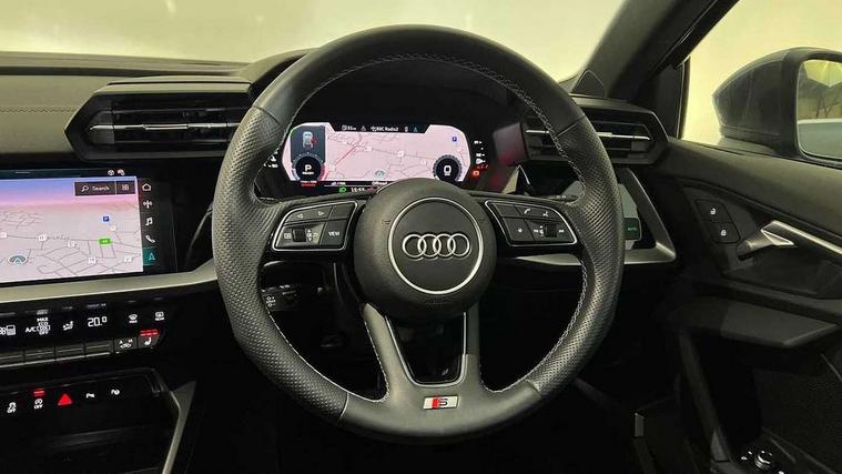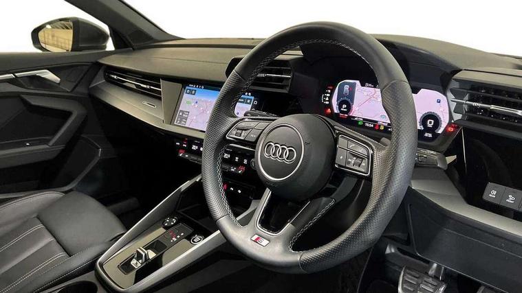 Audi drive select (Auto, Comfort, Dynamic, Efficiency and Individual), Audi smartphone interface, Audi Virtual Cockpit - 10.25" digital and colour instrument cluster, Automatic start/stop system with recuperation, Bluetooth interface, Collision avoidance assistant, e-Call (emergency call), Electromechanical power speed sensitive steering, Lane departure warning system, MMI Navigation Plus with high resolution 10.1" colour touch screen display, Service indicator, Trip computer, Voice control system with natural language interaction, Sports suspension, 2xUSB-C connection with data and charging functions, 6 passive loudspeakers, DAB Digital radio, 3rd brake light, Acoustic glass windscreen, Aluminium window trim, Auto dimming frameless rear view mirror, Body colour exterior mirrors, Electrically adjustable/heated/folding/auto dimming door mirrors with integrated LED indications + kerb view function for passenger side, Front electric windows, Illuminated aluminium inserts front door sills with S logo, LED daytime running lights, LED headlights with LED rear lights and dynamic rear indicators, Light and rain sensors, Privacy glass - dark tinted rear window, rear door and side windows, Rear electric windows, Rear side air outlets in grained matt black, Rear side wing doors, Rear wiper, S line bumpers, S roof spoiler, 12V socket and storage compartment in front centre console, 3 seat bench in 2nd row, 3 spoke leather multifunction steering wheel with paddle shift, 4 way electrically adjustable lumbar support for driver and front passenger, 60/40 split folding rear seat bench, Black cloth headlining, Dual zone electronic climate control, Front and rear centre armrest in leather, Front and rear headrests, Front/rear floor mats, Height and reach adjustable steering wheel, Interior lighting - glove compartment light and right hand side, Luggage compartment floor covering, Manual boot compartment lid, Manually adjustable front seats, Seat side bolsters, Single front passenger seat, Stainless steel pedals and front footrest in black, Twin leather upholstery with front sports seats S embossed logo, Aluminium interior elements pack - A3 Sportback, LED interior lighting pack - A3 Sportback, S line styling pack - A3 Sportback, 3x3 point rear seat belts, Driver and front passenger airbag with passenger airbag deactivation, Electronic Stabilisation Control (ESC) including ABS, ASR and EDL, First aid kit with warning triangle and 2 safety vests, Front side airbags with head airbags and interaction airbag, Pre-sense front with pedestrian and cyclist detection, Seatbelt monitoring, Tyre pressure loss indicator, Anti theft alarm, Anti-theft wheel bolts, Electronically operated child lock, Immobiliser, Remote control central locking, Dark spectrum aluminium inlays, accent surfaces in the dashboard and centre console in platinum grey silk effect paint finish,