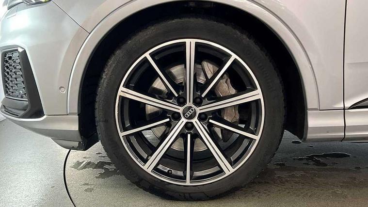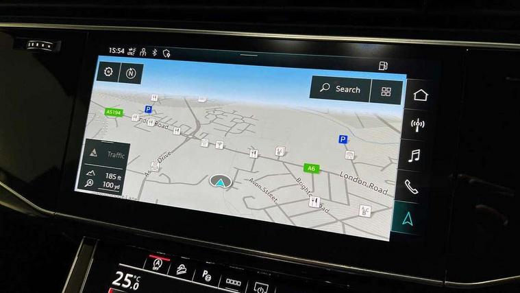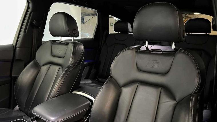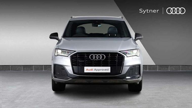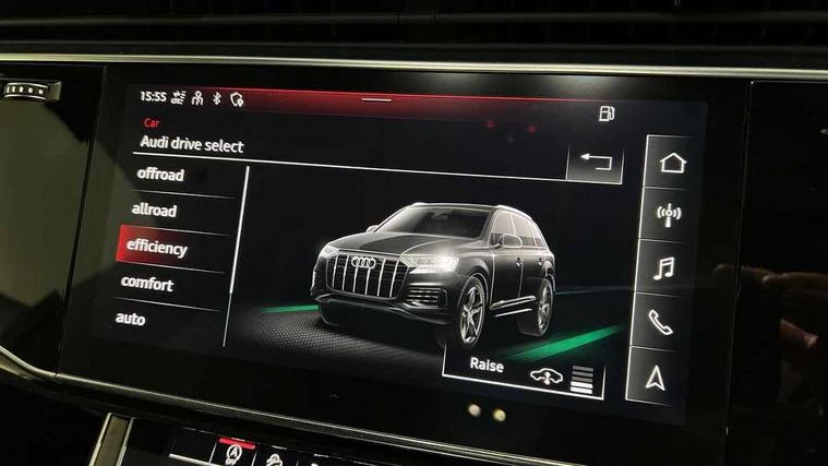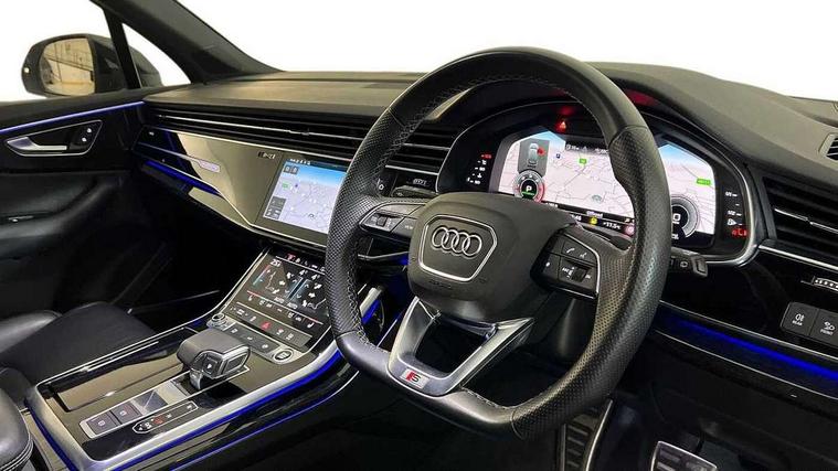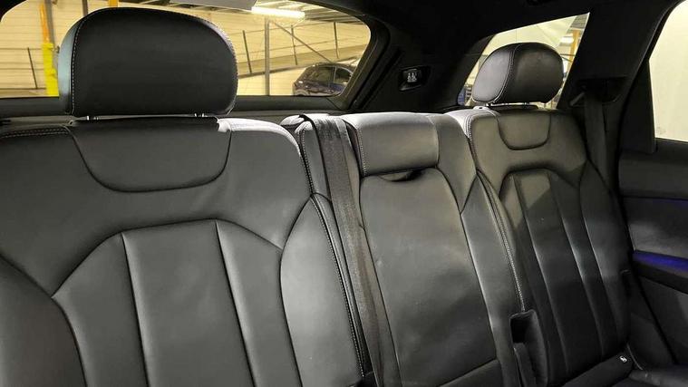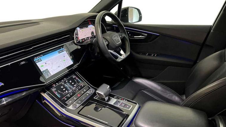 Audi connect safety and service (e-call), Audi connect with Amazon Alexa Integration, Audi drive select (Auto, Comfort, Dynamic, Efficiency, Individual, Off-road and All road), Audi smartphone interface includes wireless Apple carplay/Android Auto, Bluetooth interface, Camera based traffic sign recognition, Electromechanical steering, MMI navigation plus with MMI touch screens includes 10.1" and 8.6" screens with haptic feedback, Natural voice recognition, Parking system plus with 360 degree display (front, rear and side sensors) - acoustic and visual park assist system, Power operated tailgate, Rear view camera, Start/stop system, 48V Mild hybrid technology, Adaptive air sports suspension, Quattro all wheel drive with self locking centre differential, Audi music interface - front 2 USB-C ports with charger and data functions, Audi sound system with 6 channel amplifier, 180 watt amplifying capacity and 10 loudspeakers including subwoofer, DAB digital radio module, 3rd brake light, Auto dimming frameless rear view mirror, Black roof rails, Bumpers in contrast paint scandium grey finish includes door trim and wheel arch trim strips, inlays in door strip contain quattro embossing, Electrically adj heated/folding + automatically dimming exterior mirrors with memory + automatic kerb side function for passenger side exterior mirror, Heat insulating glass in windshield, Integrated LED indications in door mirrors, LED daytime running lights, LED headlights and high beam assist, LED rear tail lights, Privacy glass - dark tinted rear and rear side windows from B-pillar backwards, Rear side wing doors, Rear wiper, 2 seat bench in 3rd row, 3 seat bench in 2nd row, 4 zone deluxe automatic climate control, 7 seat layout with ISOFIX points for the front passenger seat and rear passenger seat, Black cloth headlining, Comfort front centre armrest, Electric adjustable front seat with 4 way lumbar support, driver memory functionality, Folding rear seats, Front head restraints, Front/rear floor mats, Heated front seats, Illuminated door sill trims with S logo, LED interior ambient lighting, Luggage compartment cover, Luggage compartment sill protection in stainless steel, Rear head restraints, Single front passenger seat, Stainless steel pedals, Sunvisors with illuminated vanity mirrors, Tool kit, Titanium black styling pack - Q7/SQ7, 3 point seatbelts on all rear seats, Audi pre sense front, Child locks on rear doors, Driver and front passenger, front side and curtain airbags, Electromechanical parking brake, Electronic Stabilisation Control (ESC) including ABS, ASR and EDL, Extended pedestrian protection measures, Hill hold assist, Seatbelt monitoring, Tyre pressure loss indicator, Warning triangle and first aid kit, Anti theft alarm, Anti-theft wheel bolts and wheel loosening detection, Keyless Go, Remote central locking, Polished oak trim with grey finished, Tyre repair kit,