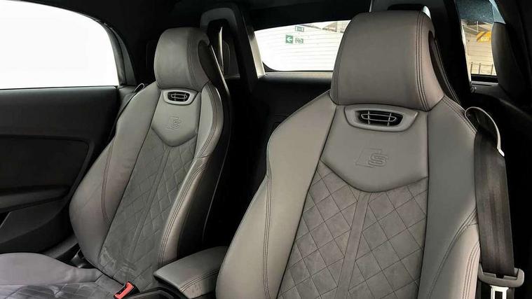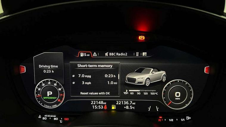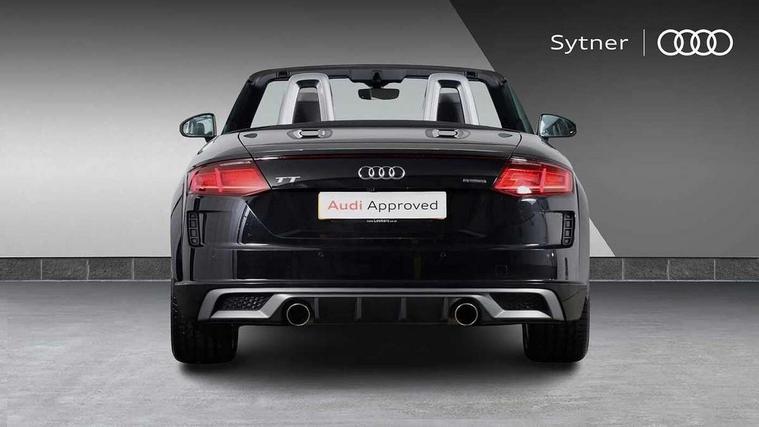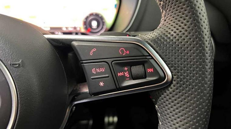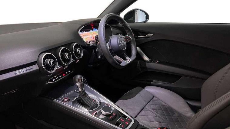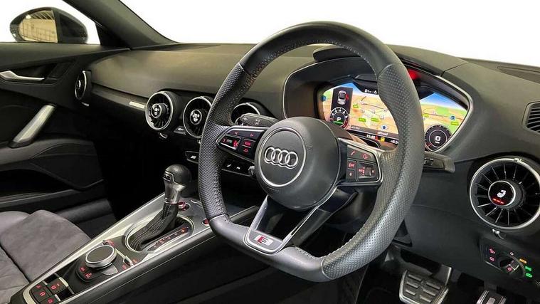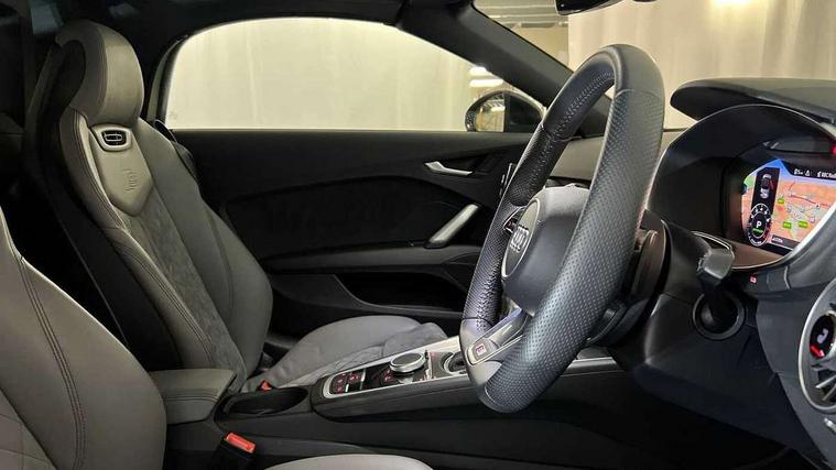 Audi active lane assist, Audi drive select with 4 Pre configured modes, Cruise control + speed limiter, MMI touch panel, Mobile phone preparation with bluetooth interface, Progressive power assisted steering, Rear parking sensors, Seat belt microphone, Service interval indicator, Start/Stop system with energy recuperation, TP memo, 8 Speakers, AM/FM radio, Audi music interface, Bluetooth audio streaming, DAB Digital radio, MMI Radio with CD player and SD/XC card slot, Auto dimming rear view mirror, Auto headlight range control, Body colour bumpers, Dynamic rear indicators, Electric front windows, Front fog lights, Fully automatic acoustic hood, Green tinted heat insulating glass, Headlight wash system, High gloss black radiator grille, LED daytime running lights, Light and rain sensors, Retractable rear boot spoiler, S line badges on front wings, S Line body styling, S Line front and rear bumpers, S line rear diffuser with platinum grey insert, S line sill plates, Sunband for windscreen, 12V socket, 3 spoke flat bottomed high multi-function leather sport steering wheel with gearshift paddles, 4 way electric lumbar support for driver and front passenger, Black headlining, Door sill trims with S line logo, Extended aluminium look with stainless steel pedals, Front centre armrest, Front super sports seats, Heated front seats, Height adjustable driver's seat, Height adjustable front head restraints, Height/reach adjust steering wheel, ISOFIX child seat mounting for front passenger seat with airbag deactivation, Perforated leather gearknob, S Line badge on steering wheel, Non smoking pack - TT/TT RS, 3 point front seat belts, ABS, ASR traction control, Brake energy regeneration, Curtain airbags, Driver and front passenger airbag with front passenger airbag deactivation, EDL traction control, Electromechanical parking brake, ESP, First aid kit, Front side airbags, Head airbags, Hill hold assist, Roll bar in glossy black, Seatbelt warning, Tyre pressure warning, Warning triangle, Anti theft alarm, Anti theft wheel bolts, Immobiliser, Keyless Go, Remote central locking, Matt brushed aluminium inlays, Tool kit, Tyre repair kit,
