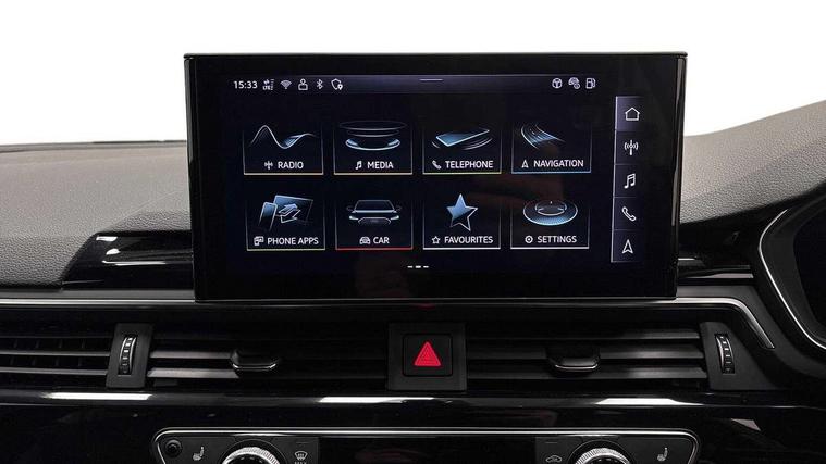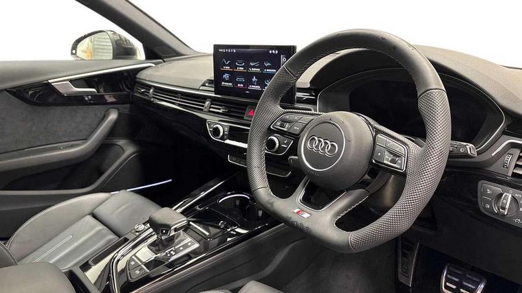 Audi connect safety and service (e-call), Audi drive select, Audi smartphone interface, Audi virtual cockpit, Automatic start-stop system with coasting functionality and efficiency programme, Bluetooth interface, Camera based traffic sign recognition, Electromechanical power steering, Email, calendar and text messages displayed via MMI, Front and rear parking sensors, Lane departure warning, MMI Navigation plus with MMI touch includes 10.1" high resolution colour MMI display, 3D map, Power operated tailgate, Rear view camera, Voice control system, 54 litre fuel tank, Sports suspension lowered by 23mm, 2 USB charging ports, 8 passive loudspeakers, DAB digital radio reception, Audi beam uses LEDs to project the audi logo onto the ground as you exit your A4, Auto dimming rear view mirror, Black Audi rings and black badging (with removed engine badging), Body colour door handles, Body colour front spoiler lip, Body colour side sill trim, Electric adjustable/heated/folding door mirrors with auto dimming, Exhaust tailpipes in dark chrome, Grained matt black side air inlets with matt aluminium silver inlay, High beam assistant, High gloss black B pillar trims and triangular rear door trim, LED headlights with LED rear lights + dynamic rear indicators + headlight adjustment and high beam, turning light + LED daytime running lights, LED third brake light, Privacy glass, Rain and light sensors, Rear diffuser in matt black with trim strip in matt aluminium silver, Rear side wing doors, Rear wiper, RS4 rear spoiler in body colour, S Line roof edge spoiler, Sport front and rear bumpers with side skirts, Variable intermittent front wash/wipe, Windscreen with acoustic glazing, 4 way electric lumbar support for driver and front passenger, 40/20/40 split folding 3 rear seat bench in 3 parts with rear centre armrest, Black carpets, Black cloth headlining, Black perforated leather gearknob, Contrast stitching on seats, steering wheel and gear lever gaiter, Deluxe 3 zone electronic climate control, Electric load area cover, Front and rear head restraints, Front centre armrest, Heated front seats, Illuminated door sill trims with S logo, ISOFIX child seat mounting and top tether, Manual seat adjustment, Single front passenger seat, Stainless steel pedals and foot rest, Black styling pack - A4 Avant, LED Interior light pack - A4/S4, 3 rear seatbelts, 6 airbags - Driver, front passenger, curtain and side windows, Attention and drowsiness assist, Electronic Stabilisation Control (ESC) including ABS, ASR and EDL, Hill hold assist, Multi collision brake assist, Pop-up bonnet for pedestrian protection, Pre sense city, Rear door child safety locks, Seatbelt monitoring, Warning triangle and first aid kit, Anti theft alarm, Anti theft wheel bolts, Central locking, Keyless Go, Piano black finish inlay, Tool kit, Tyre repair kit,