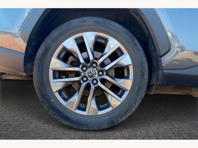 7" TFT multi information display, Analog tachometer, Apple car play and Android auto, Blind spot monitoring with rear cross traffic alert, Bluetooth system, Cyclist Detection, Drive mode selector, eCall emergency call system, ECO-driving indicator, Electric power steering, EV audible alert, Front parking sensors, Full range intelligent adaptive cruise control, Hybrid system indicator, Lane departure warning system, Lane trace assist, Lights on warning, Low screen washer fluid warning, Memory on adjustable speed limiter, MirrorLink, My T Connected services, Night Time Pedestrian Detection, Power boot opening and closing, Push button start, Rear parking camera, Rear parking sensors, Remote boot door release in cabin, Remote boot door release in key, Road sign assist - RSA, Touch 2 Go navigation system including 3D maps and voice control, Traffic sign recognition, Trip computer, Voice control system, Vehicle Stability Control (VSC), 6 speakers, 8" Multimedia display touch screen, Auxiliary socket for external MP3 player, DAB audio, Toyota touch media system, USB connection, Adaptive automatic high beam, Automatic headlamp levelling, Automatic headlights, Automatic wipers, Automatically retractable door mirrors, Black roof rails, Body colour door handles, Body colour door mirrors, Body colour rear spoiler, Body colour roof, Body coloured bumpers, Body coloured Shark-fin antenna, Door mirror puddle lights, Dual exhaust pipes, Electric adjustable door mirrors, Electrochromatic rear view mirror, Emergency brake-light signal (EBS), Follow me home headlights, Front fog lights, Front wiper de-icer, Front wipers with variable intermittent facility, Headlight cleaners, Heated door mirrors, LED daytime running lights, LED High mounted stop lamp, LED rear combination lights, Meshed shape upper front grille, Power front windows, Power rear windows, Privacy glass, Projector LED headlights, Rear screen wiper - intermittent, Rear side wing doors, Rear windscreen defogger, Rear wing door, Silver front under-run, Silver rear under-run, Trailer sway control, Turning signal integrated indicators in door mirrors, 12 volt front socket, 3 rear headrests, 3 seat bench in 2nd row, 60/40 split fold rear seat back, Boot light, Clean air filter, Driver and front passenger personal light, Driver and front passenger Whiplash Injury Lessening seats, Driver and passenger sunvisors with illuminated vanity mirrors, Driver seat memory function, Dual sided deck board in boot, Dual zone automatic air conditioning, Floor mats, Folding rear centre armrest, Front and rear bottle holders, Front centre armrest, Front footwell lights, Front headrests, Front passenger seat, Front seat and rear pockets, Front/rear roof mounted assist grips, Grey roof lining, Heated driver and front passenger seats, Heated steering wheel, Illuminated entry system, Isofix child seat preparation, Leather gear shift with chrome surround, Leather upholstery, Light blue ambient lighting on front cupholders and open tray, Luggage area tonneau cover, Manual telescopic and tilt 3-spoke leather steering wheel with Chrome insert, Manually reclining and sliding front passenger seat, Multimedia switches on steering wheel, Pollen filter, Power height-adjustable sliding reclining and lumbar support for driver seat, Rear coat hooks, Rear door armrests, Rear passenger air vents, Rear view display in display audio screen with dynamic guide lines, Reclining rear seats, Satin chrome interior door handles, Sunglasses holder, Telephone and voice recognition switches on steering wheel, 3x3 point rear seatbelts, ABS/EBD, Acoustic vehicle alerting system, Adjustable front driver and passenger seat belt extender, Brake assist function, Brake hold function, Child proof door locks, Collision mitigation braking system, Driver/Front Passenger airbags, Driver/front passenger side airbags, Drivers knee airbag, Electronic parking brake, Electronic Stability Programme (ESP), Front and rear curtain airbags, Front and rear seatbelt reminder, Front passenger airbag detector, Hill start assist, Passenger airbag cut-off device, Pedestrian detection, Pre collision system, Seatbelt pretensioners with load limiters, Toyota safety sense, Traction control, Tyre pressure warning, Glass-breaking alarm sensors, Immobiliser, Intrusion alarm, Light - on and Key in reminder, Motion sensor alarm, Remote central locking, Smart entry + Smart start, Speed sensitive auto door locking, Tilt detection sensors, Piano black centre console with silver insert, Soft-touch black lower dashboard, Soft-touch black upper dashboard with silver insert, 19" 10 spoke silver alloy wheels, Full size spare wheel,