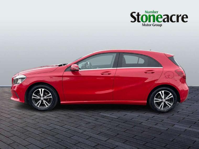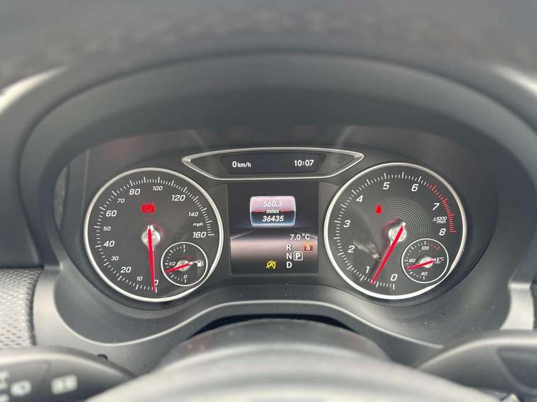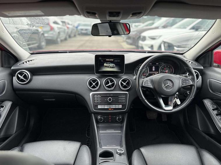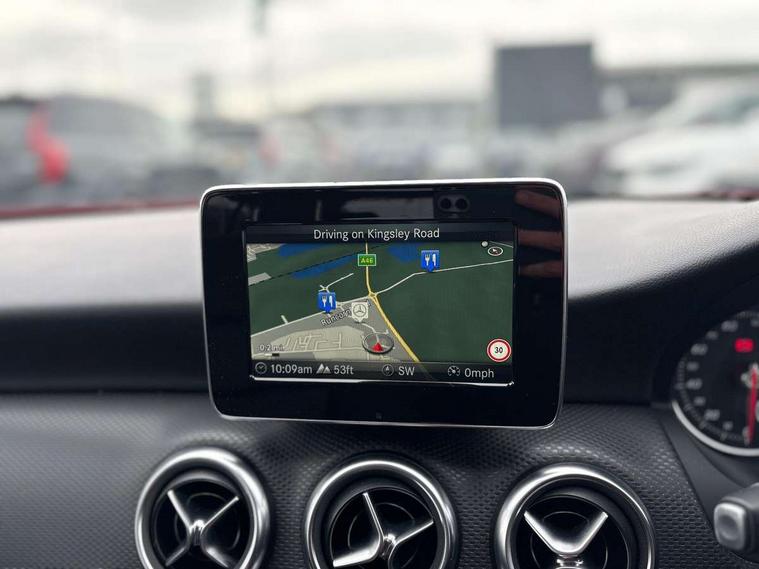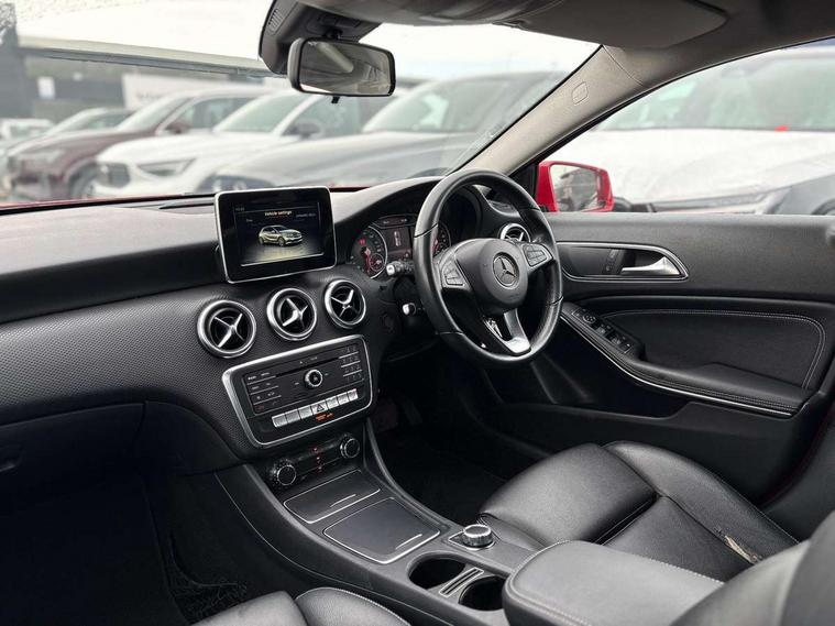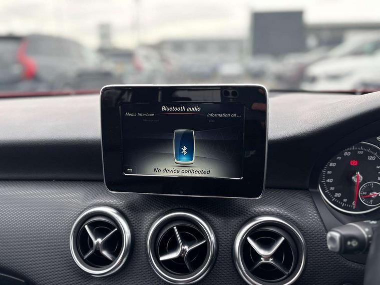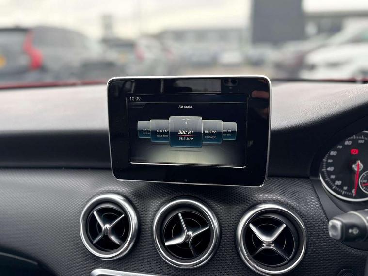 7" tablet style colour display, Attention assist, Bluetooth interface for hands free telephone, Bulb failure indicator, Collision prevention assist plus, External temperature gauge, Garmin Map pilot navigation system with SD Card, Low fluid warning light, Park assist pilot with front and rear park assist, Reversing camera, Service indicator (ASSYST PLUS), Smartphone integration with Apple CarPlay, Speed sensitive parameter assisted steering, Trip computer, Voice control system, Comfort suspension, 6 speakers, Media interface, Mercedes Audio 20 radio/single CD + telephone keypad, USB port, Adaptive brake lights, Body colour bumpers, Body colour door handles, Body colour side skirt, Body coloured door mirrors, Chrome beltline trim, Daytime running lights, Diamond radiator grille in black with one louvre in body color + chrome insert, Electric adjustable heated door mirrors, Electric front windows, Electric rear windows, Headlamp assist, Heated rear window with timer, Rear wiper, 1/3 to 2/3 split folding rear seats, 12V socket, 3 spoke leather multifunction sports steering wheel, Adjustable head restraints, Air conditioning, Artico man-made leather upholstery, Auto Mercedes-Benz child seat recognition sensor, Front centre armrest with storage compartment, Front door sills with Mercedes Benz lettering, Front head restraints, Gearshift paddles on steering wheel, Grey headlining, Heated front seats, Height adjustable front seats, Height/reach adjustable steering column, Illuminated glovebox, Isofix rear child seat preparation, Load securing rings in luggage compartment, Luggage compartment cover, Luggage net under rear parcel shelf, Parcel net in front passenger footwell, Rear head restraints, Storage compartment under load area floor, Twin front cupholders, Seat comfort pack - A Class, Stowage Pack - A Class, 3 rear 3 point seatbelts, ABS with Brake Assist, Active bonnet, Adaptive brake system, Child proof door locks, Crash responsive emergency lighting, Drivers knee airbag, Dual stage driver/passenger airbags, Electronic parking brake, ESP with ASR, Front and rear seatbelt reminder, Front head airbags, Front passenger seat occupancy sensor, Front side airbags, Hill start assist, Tyre pressure monitoring system, Warning triangle and first aid kit, Window airbags, Alarm system/interior protection/immobiliser, Keyless ignition, Remote central locking, Chrome air vent surrounds, Honeycomb effect trim, 16" 5 twin spoke alloy wheels, Tirefit sealant with electric air pump,