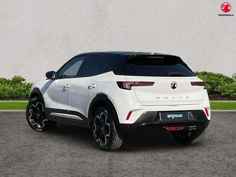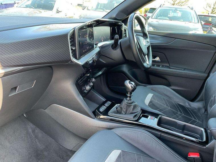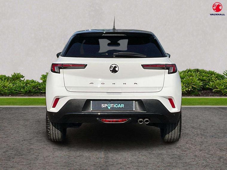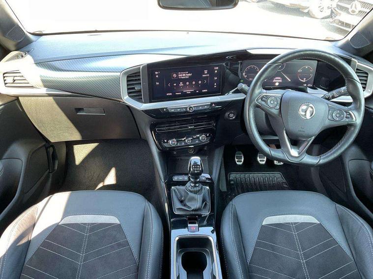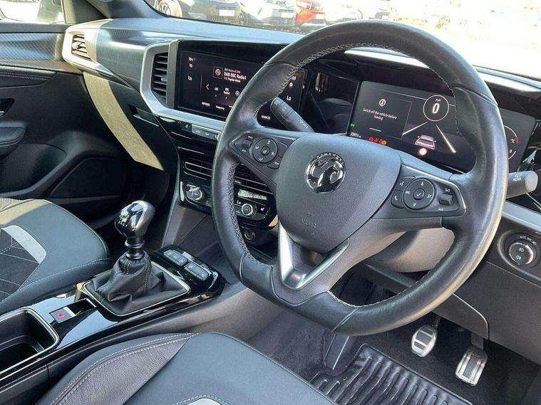 12" digital instrument cluster, Adaptive cruise control with speed limiter, Digital instrumentation with digital speedometer, rev counter, fuel and water temperature gauge, Driver drowsiness alert system, Driver information display with multi function trip computer, audio info, digital clock and outside air temperature with ice warning function, Engine start/stop button, EV information display, Extended traffic sign recognition, Front and rear parking distance sensors, Front camera and radar system, Gearshift up/down indication light, Lane keep assist system (LAS) with Lane departure warning system (LDWS), Lights on audible warning, Panoramic rear view camera, Power assisted speed sensitive steering, RDS with traffic programme, Side blind spot alert and flank guard, Smartphone integration compatible with Apple CarPlay and Android Auto, Sports switch with engine sound enhancement, Start/stop system, Vauxhall connect with e-Call, Wireless charging for smartphone, 6 speed manual transmission, 6 speakers, AM/FM stereo radio with 36 station presets, DAB Digital radio, Flexible Roof Mounted Radio Aerial, Front USB connection, Mobile phone portal - bluetooth connect, vehicle microphone, handsfree calls, SMS read out and reply, phone book access, Multimedia Navi Pro with 10" colour touchscreen, Steering wheel mounted controls, Two rear USB sockets, Adaptive brake lights, Auto high beam assist, Automatic headlamp levelling, Automatic lighting control with tunnel detection, Automatically dimming anti dazzle rear view mirror, Black door mirror housings, Black front and rear bumper inserts, Black Griffin logo and vizor frame, Black upper window moulding, Body colour door handles, Body colour front and rear bumpers, Dark tinted rear side windows + tailgate window, Electric adjustable/heated/folding door mirrors + puddle lights, Electrically operated front and rear windows with safety auto reverse and one touch up/down facility, Hazard warning lights, Heated rear window+rear wash/wipe, Integrated black tailgate spoiler, IntelliLux Matrix LED headlights with adaptive forward lighting, LED 3rd brake light, LED daytime running lights, LED front fog lamps, LED side repeat indicators, LED tail lights, Rear foglight, Rear side wing doors, Reversing light, Solar heat absorbing windscreen and windows, Two speed rain-sensitive windscreen wipers with variable intermittent wipe, Windscreen and side window demist vents, 12V Accessory socket, 3 seat bench in 2nd row, 3 spoke flat bottomed leather effect steering wheel with satin chrome effect bezel, 4 speed fan with illuminated controls, 4 Way driver seat with lumbar and massage function, 6 way manual adjustable driver fore/aft, up/down with reclining seatback, 6 way manual adjustable front passenger fore/aft, up/down with reclining seatback, 60/40 split folding rear seat, Air recirculation system, Alcantara/leather upholstery, Black headliner, Cabin particulate filter - removes dust, airborne particles and pollen, Centre console with two cup holders at front and one in rear, Chrome effect interior door handles, Door pockets with two litre capacity, Driver and passenger sun visors with vanity mirror, Electronic climate control (ECC), Four adjustable facia vents, Four load restraint lashing eyes, Front centre armrest with storage, Front head restraints, Front map reading lights, Front seat back storage pockets, Fully carpeted load area, Heated front seats, Heated steering wheel, Interior courtesy light, Interior tailgate handle, Luggage compartment cover, Luggage compartment lighting, Movable boot floor, Reach + rake adjustable steering column, Single front passenger seat, Three height adjustable rear seat head restraints, Twin gas assisted tailgate struts, Black Pack with badge - Mokka, 2x Isofix child seat fitting on outer rear seats, 3x3 point rear seat belts, Anti-lock braking system (ABS), Child proof locks on rear doors, Cornering brake control, Deactivation switch for front passenger front and side impact airbags, Drag torque control, Driver and front passenger airbags, front seat side impact airbags, full size curtain airbags, Electronic brake force distribution, Electronic Stability Programme (ESP), Emergency brake assist, Enhanced automatic emergency braking with pedestrian detection, Forward collision alert at all speed, Hill start assist, Inertia reel lap and diagonal seatbelts for all seats, Seatbelt unfastened audible warning and warning light, Straight line stability control, Traction control, Tyre pressure monitoring system, Electronically protected audio equipment, Engine deadlock immobiliser, Freewheeling door locks, Key left in ignition audible warning, Keyless entry and start, Locking wheel nuts, Remote control central locking, Remote control ultrasonic security alarm system, Visible vehicle identification number, Atlantis black trim inserts of front doors, Black facia with silver trim insert, Instrument panel bar in polar silver, Light grey trim inserts on front doors, 18" bi colour alloy wheels,